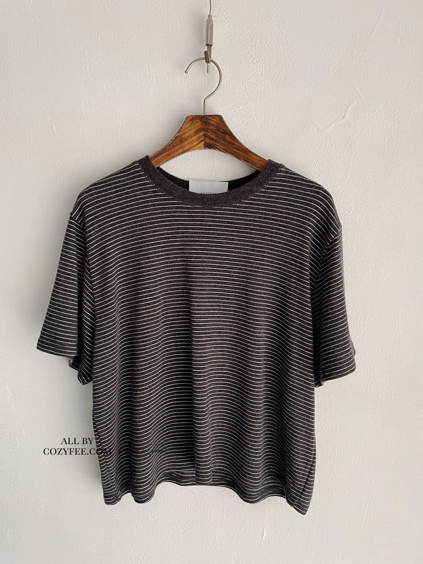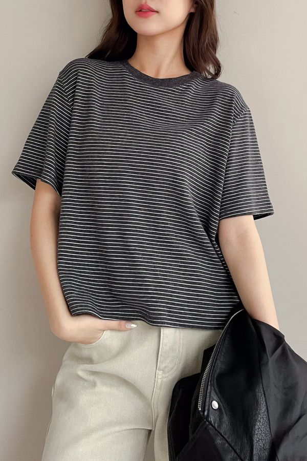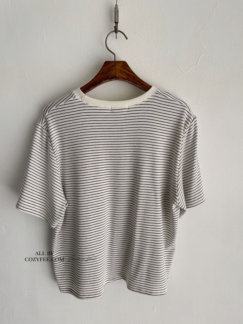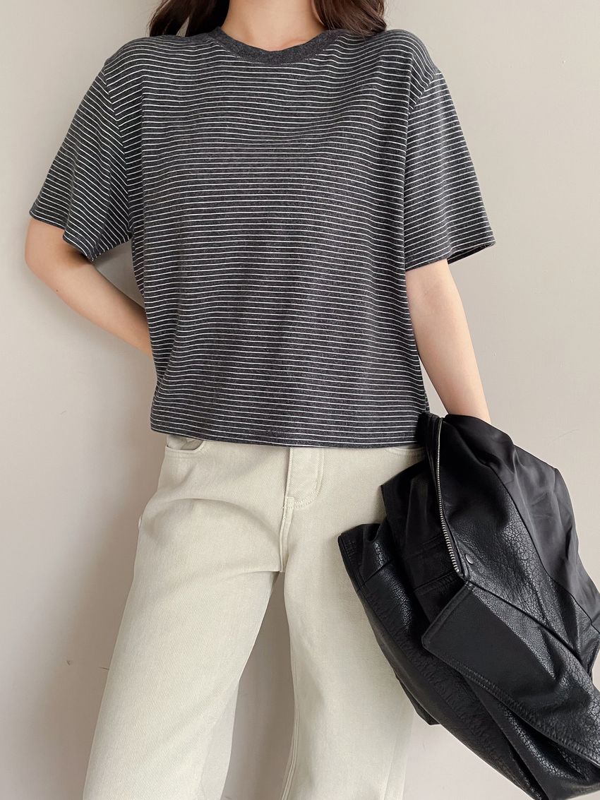 > 細線條圓領短T