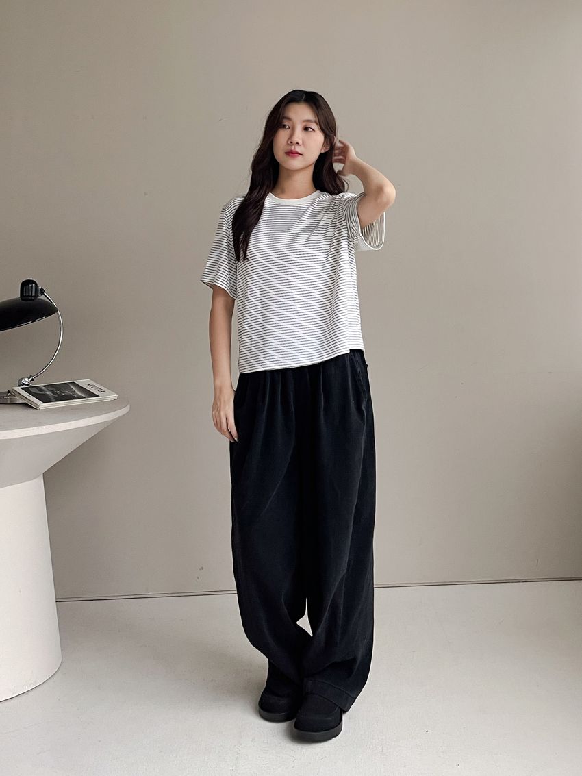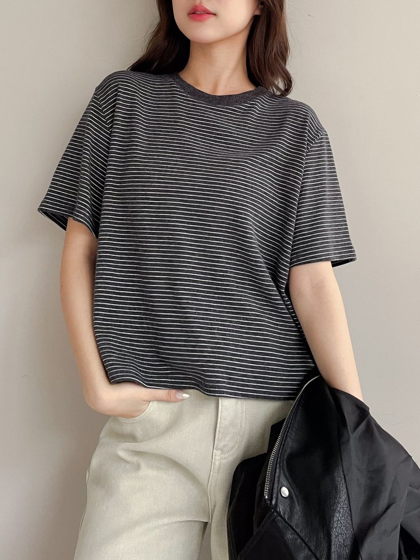 細線條圓領短T