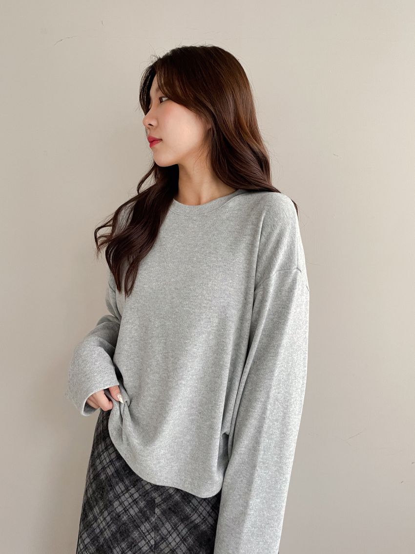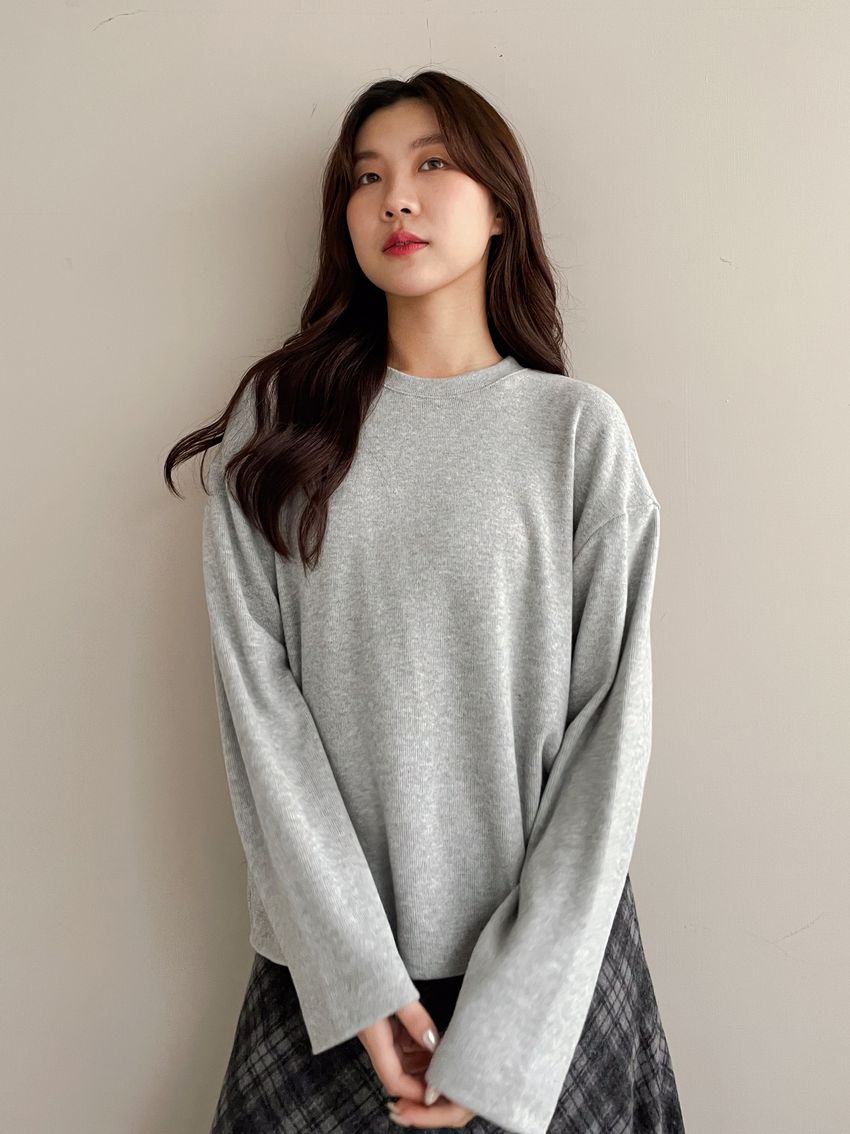 Connie推薦款!柔軟細絨坑紋圓領長T