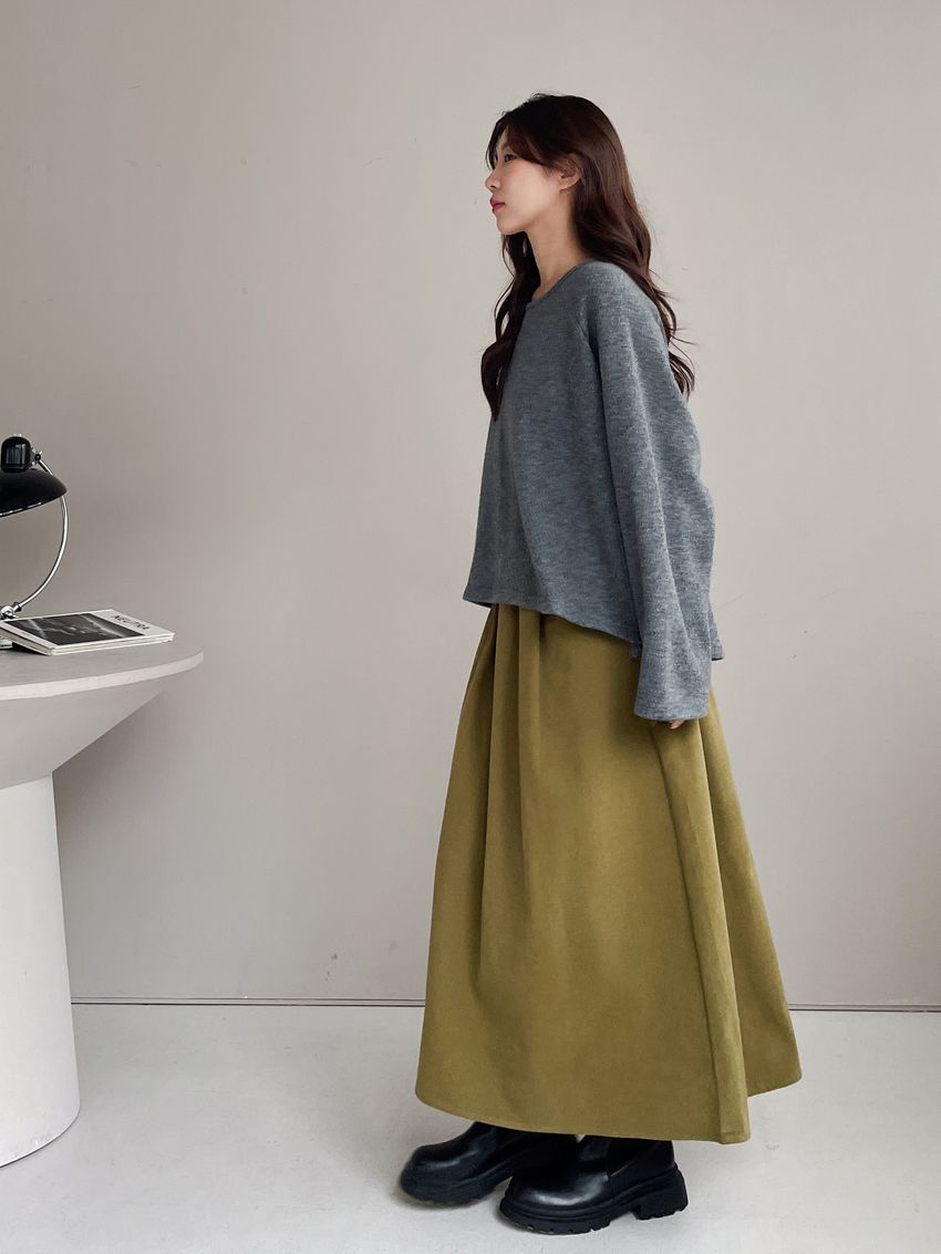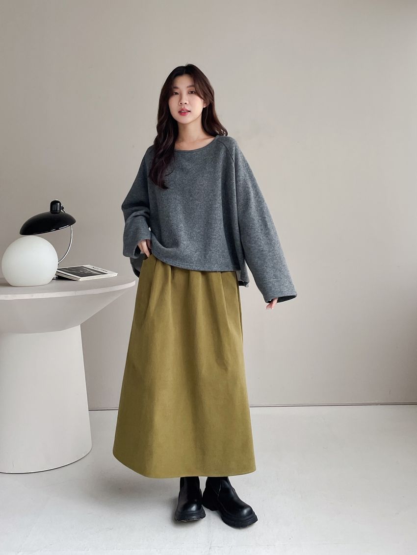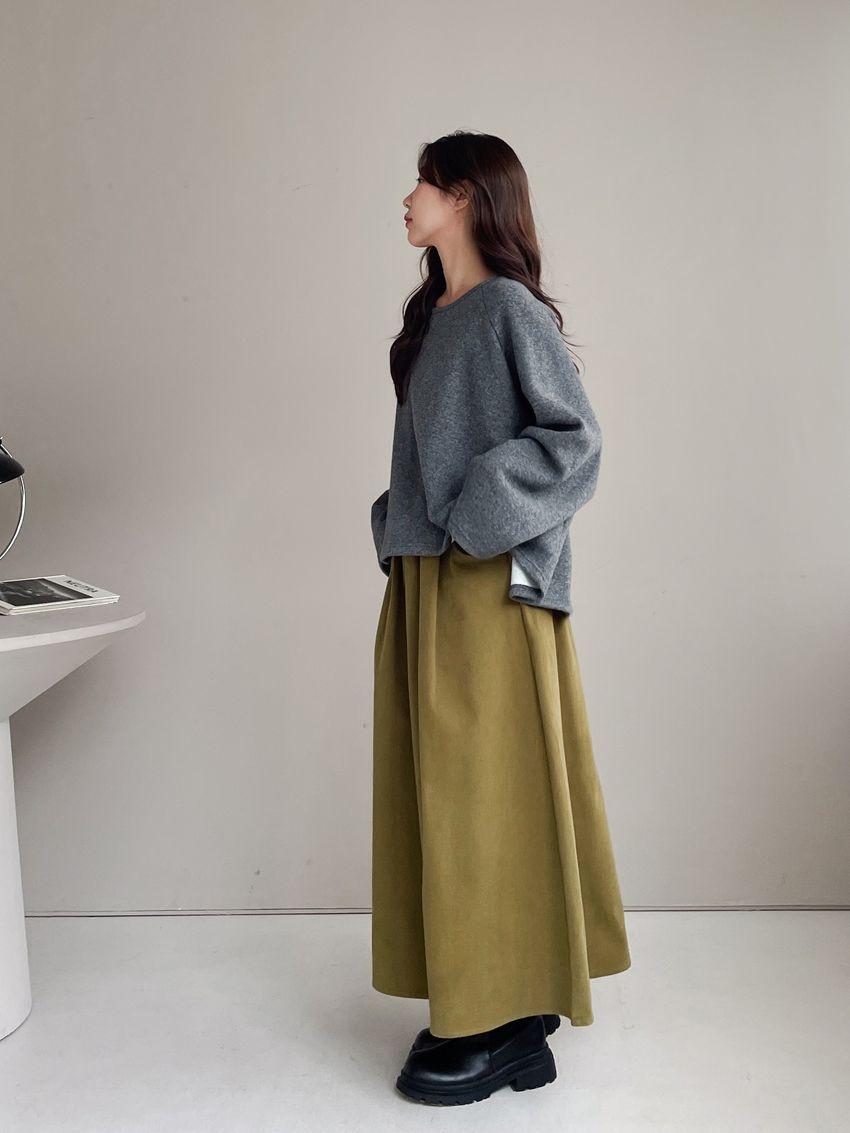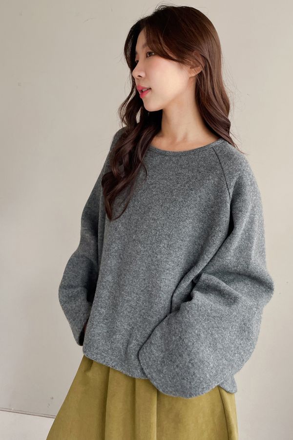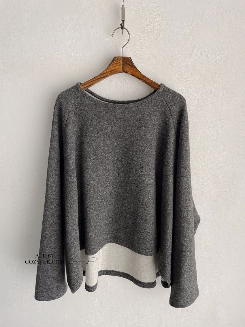 > Connie推薦款!圓弧傘狀混色毛呢T