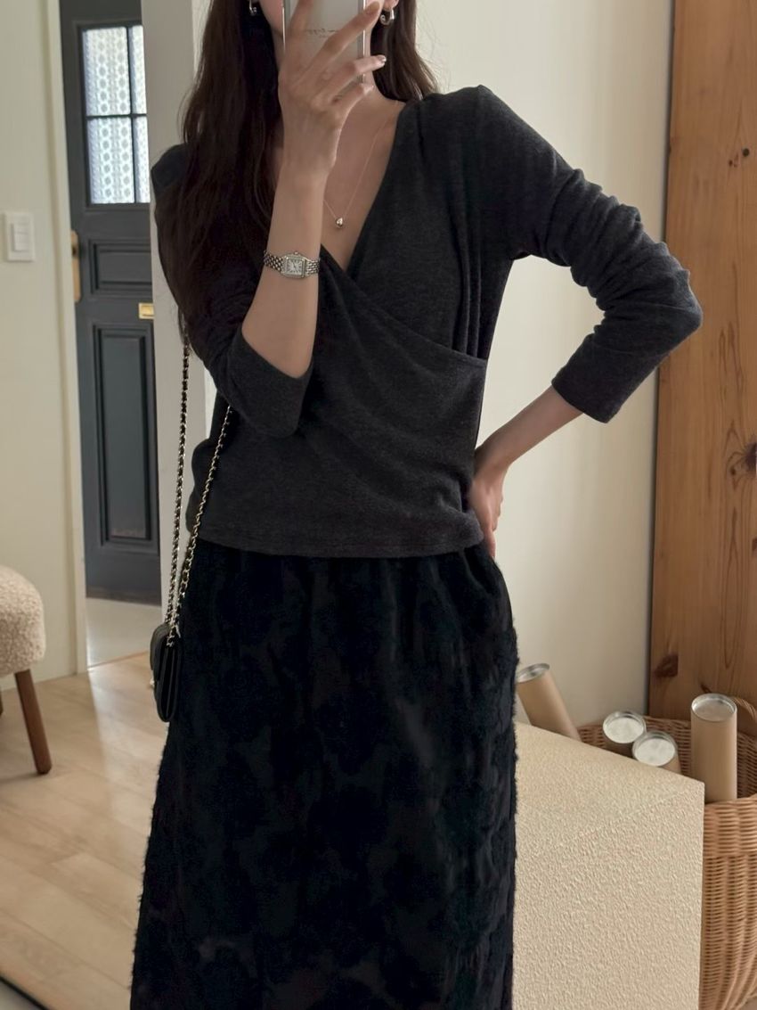 氣質交錯V領針織素T