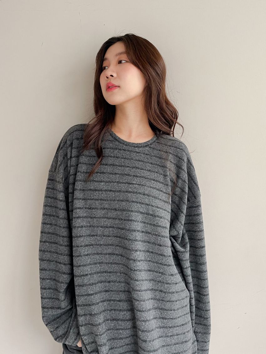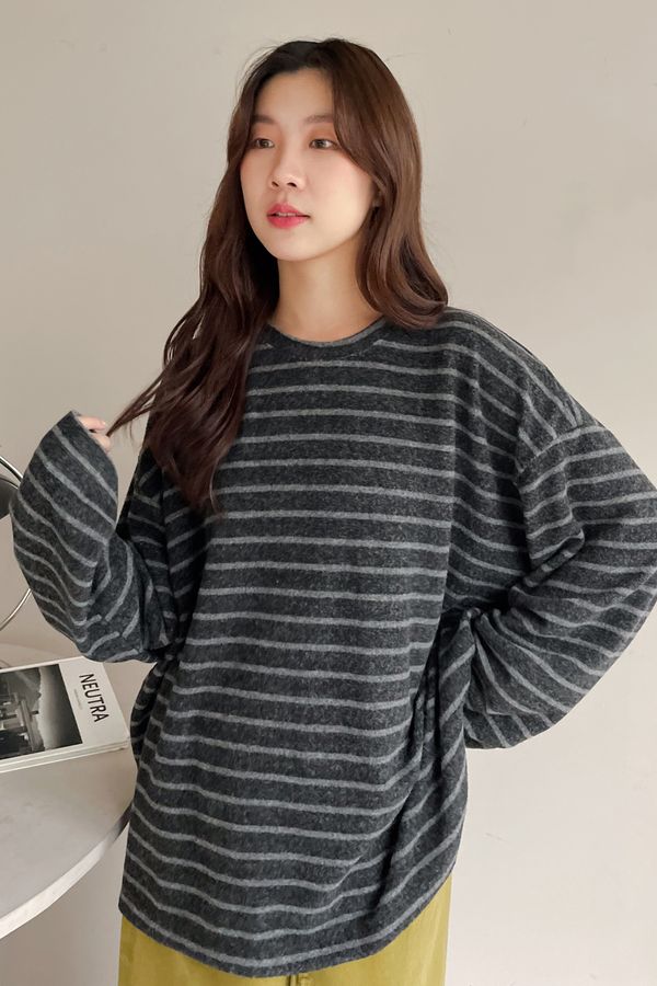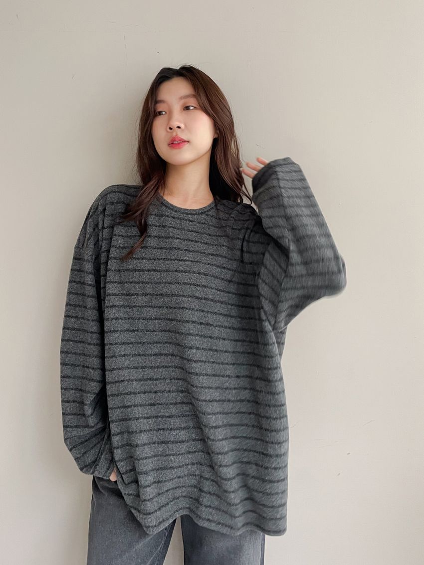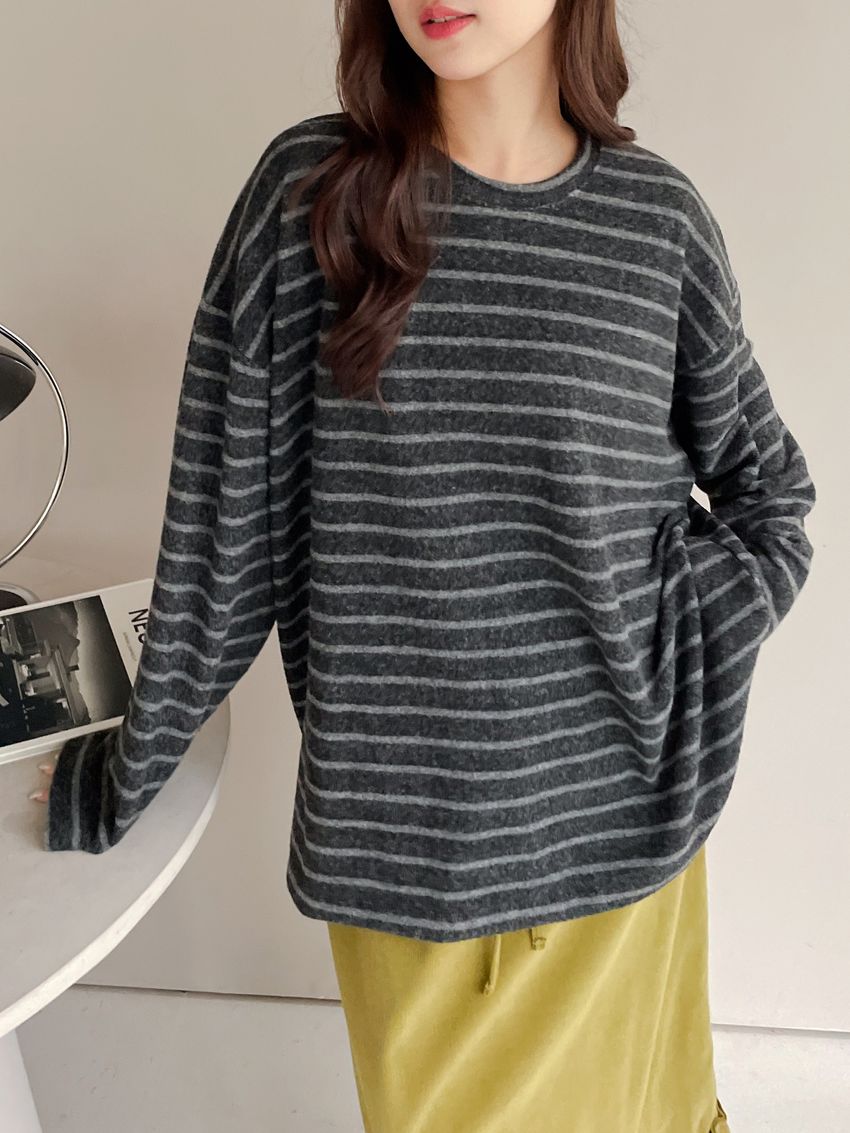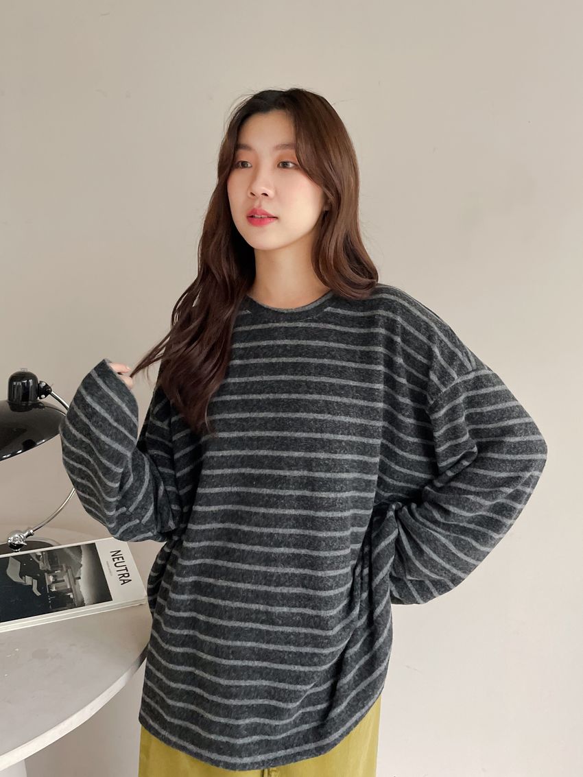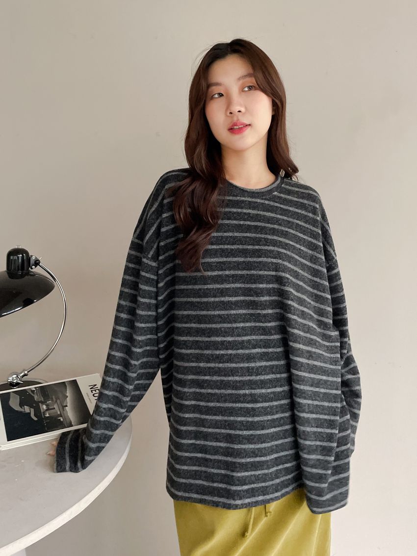 Connie推薦款!條紋軟綿溫暖磨毛T