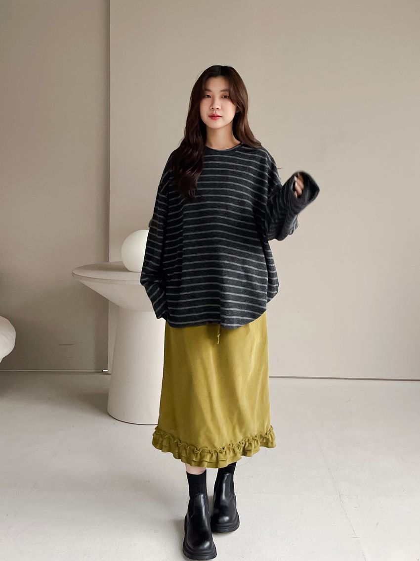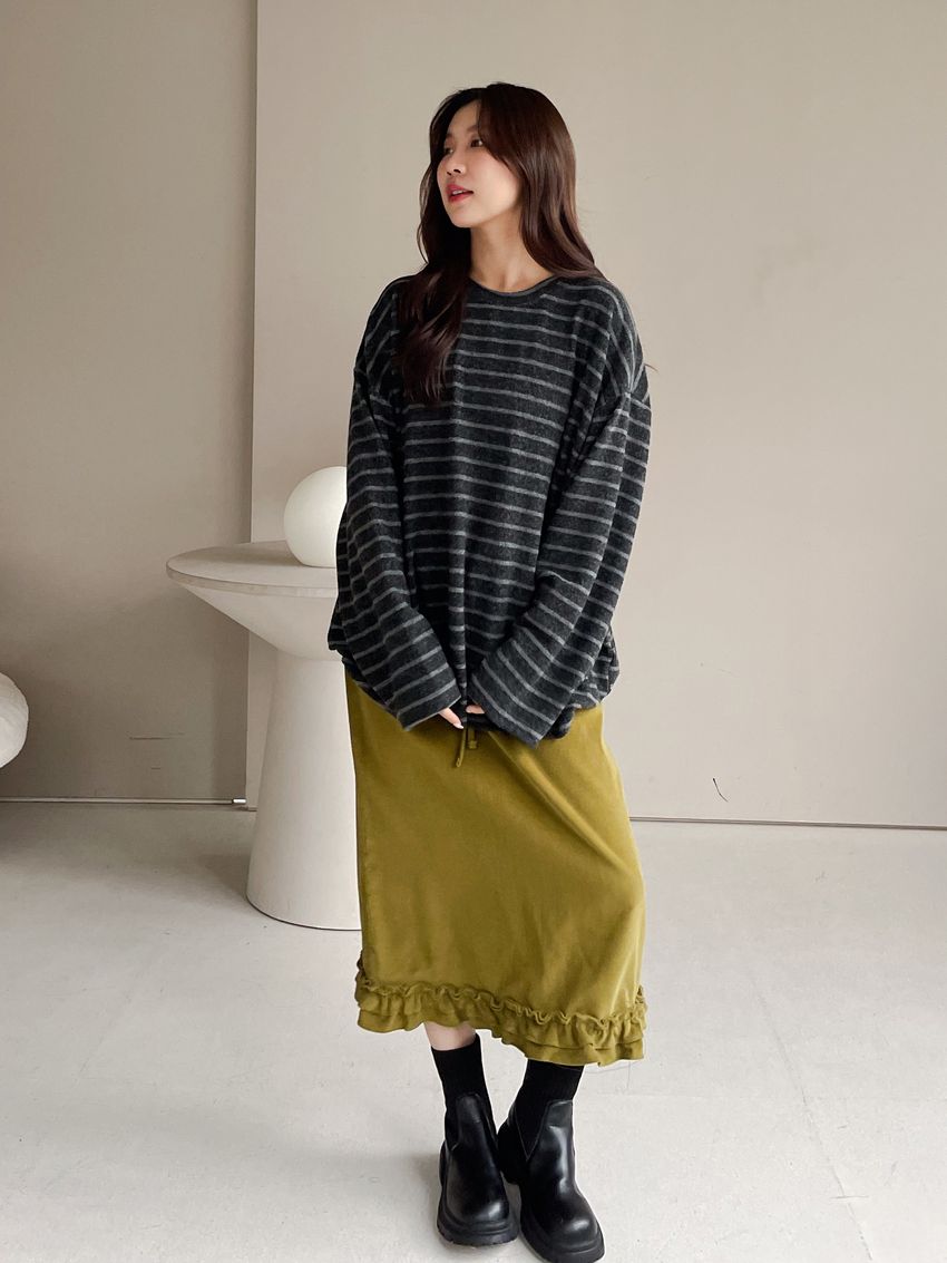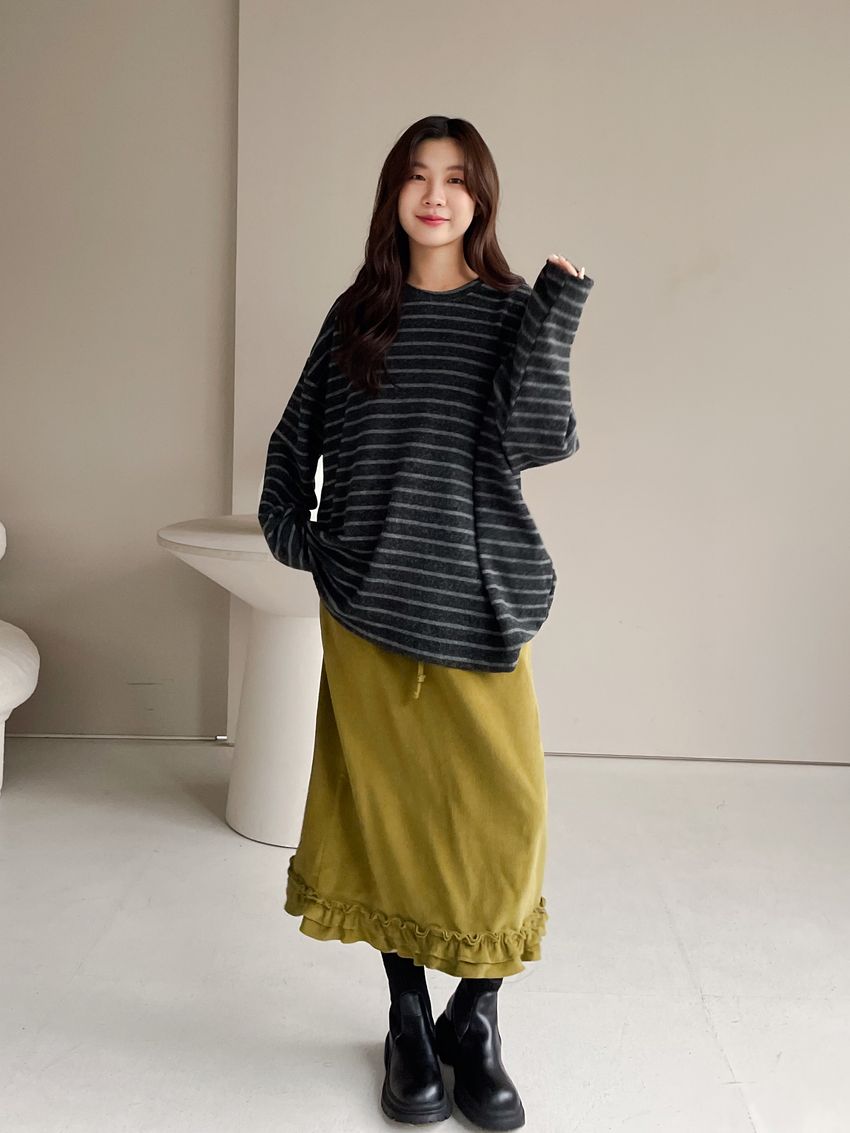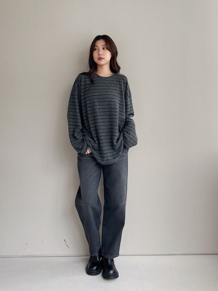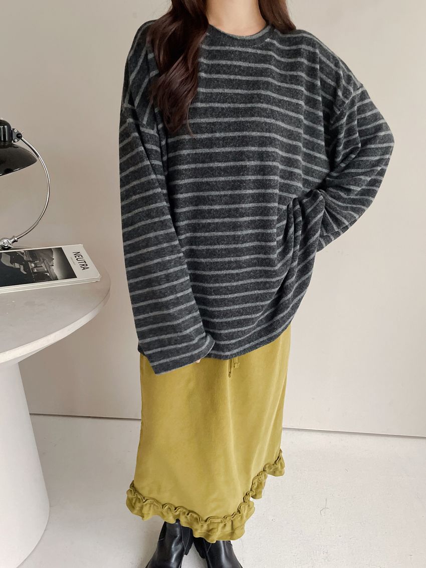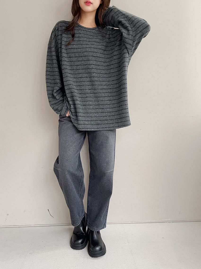 Connie推薦款!條紋軟綿溫暖磨毛T