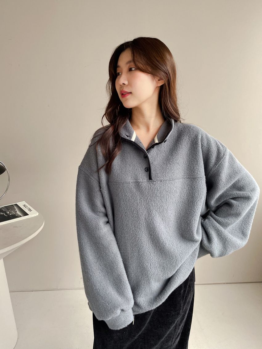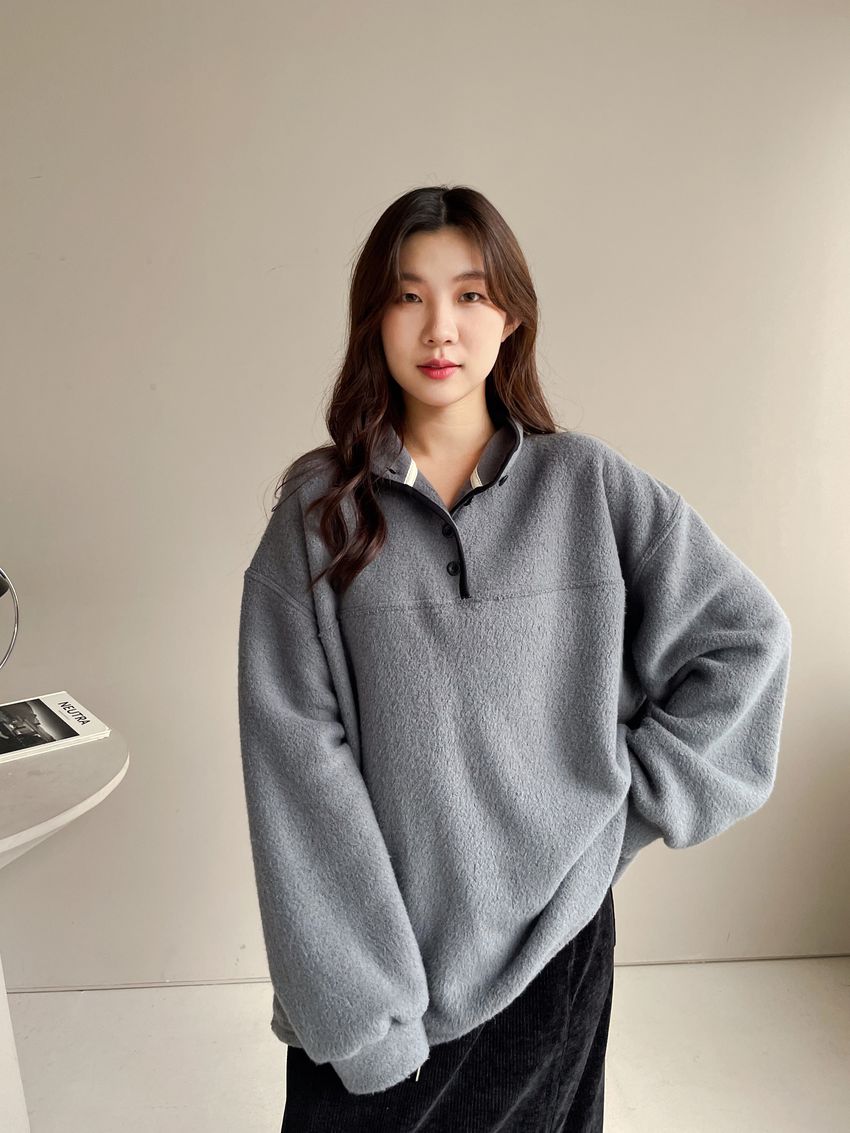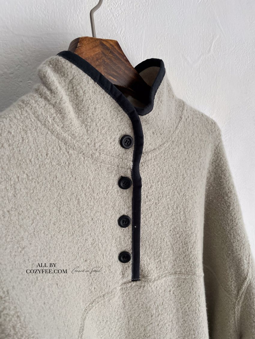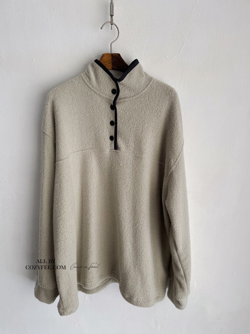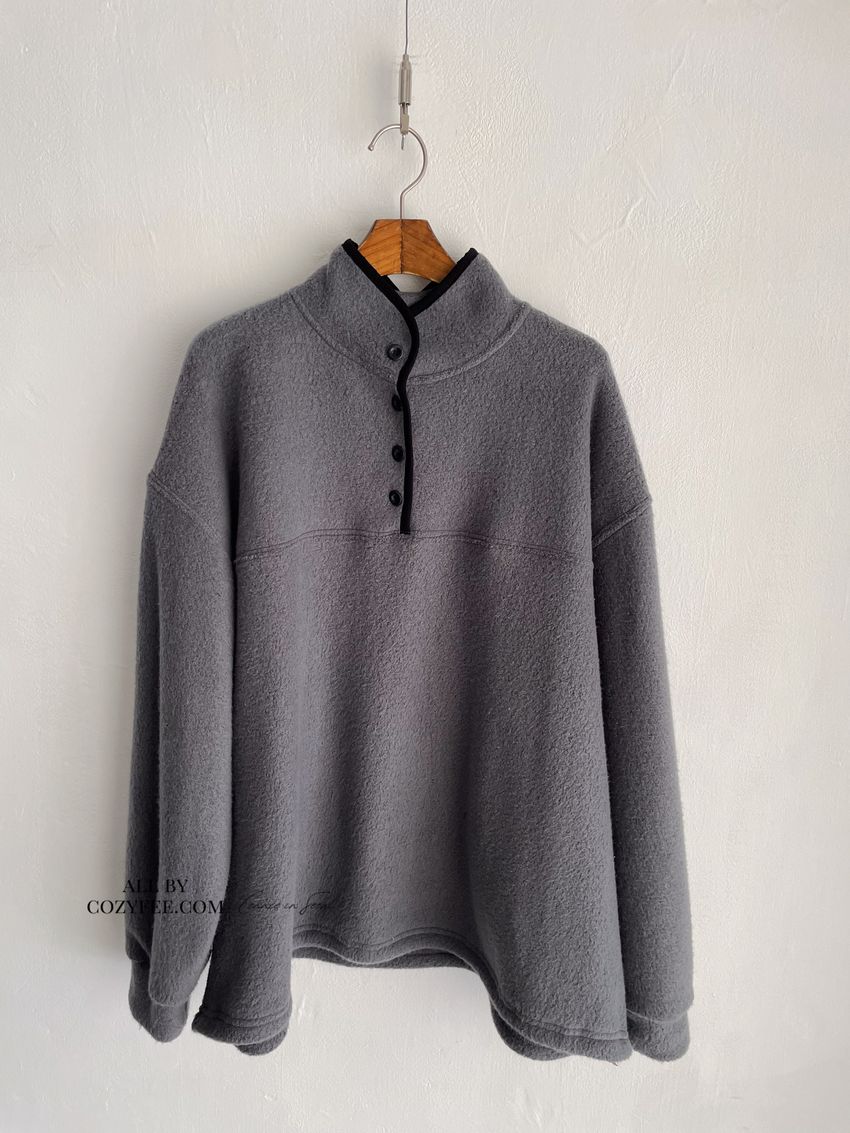 黑滾領四釦毛巾布刷毛大學T