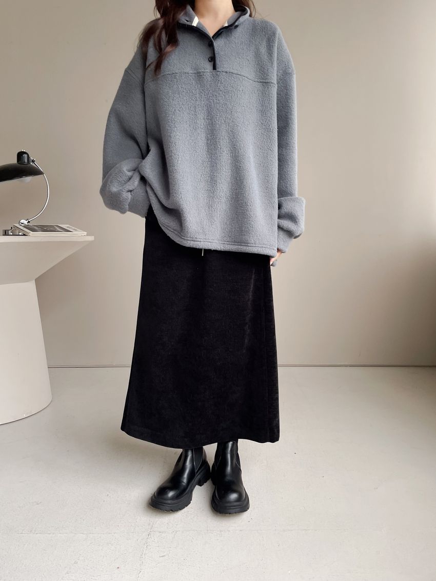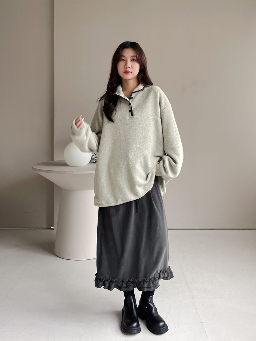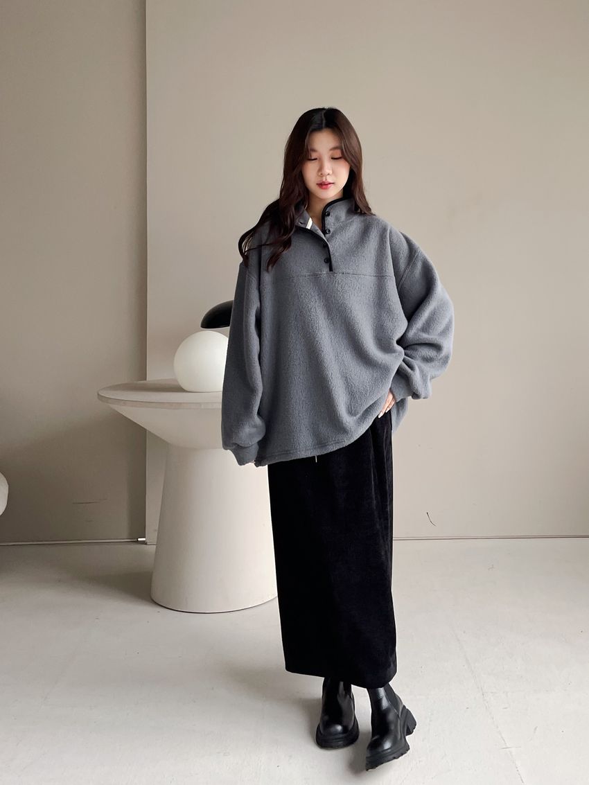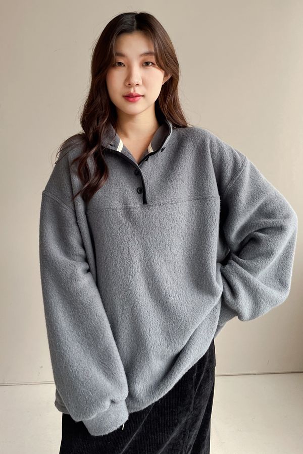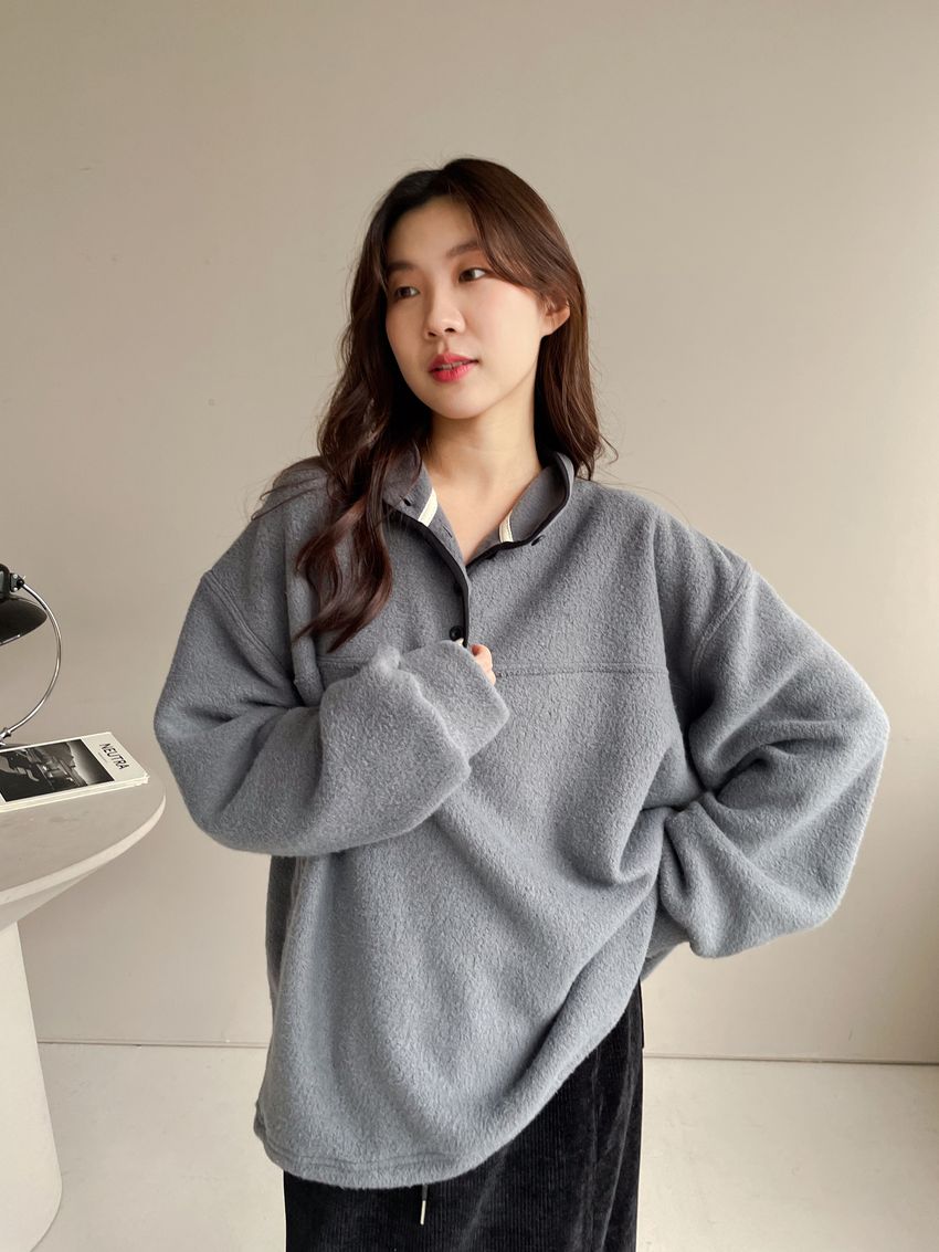 黑滾領四釦毛巾布刷毛大學T