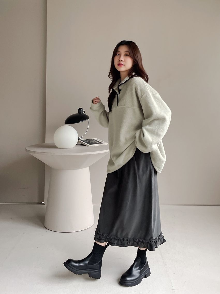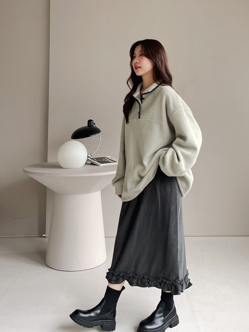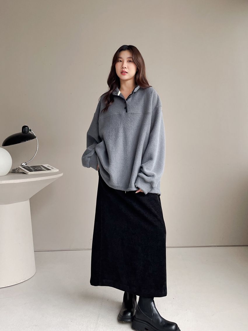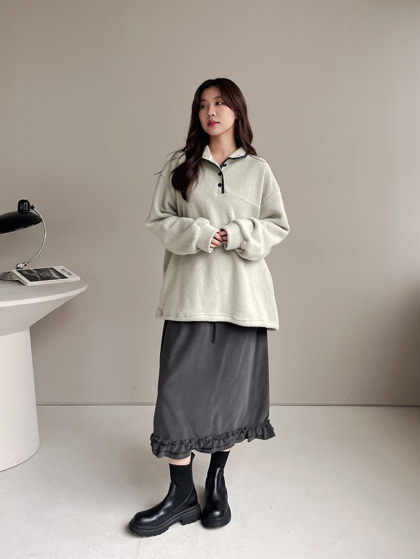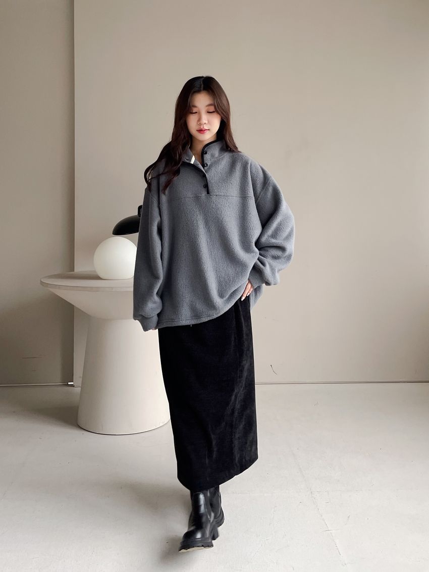 黑滾領四釦毛巾布刷毛大學T