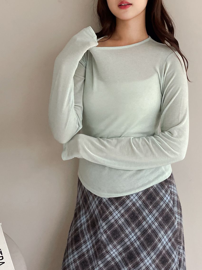後縫輕薄天絲素色T