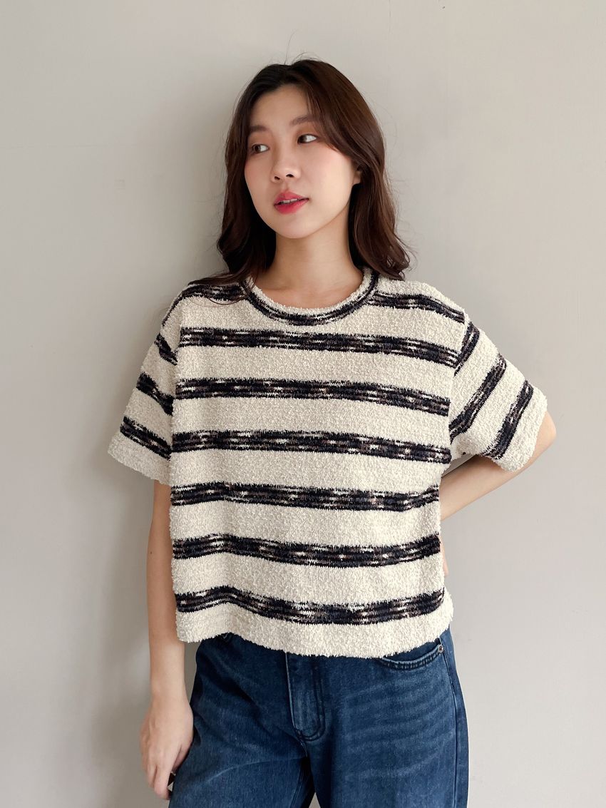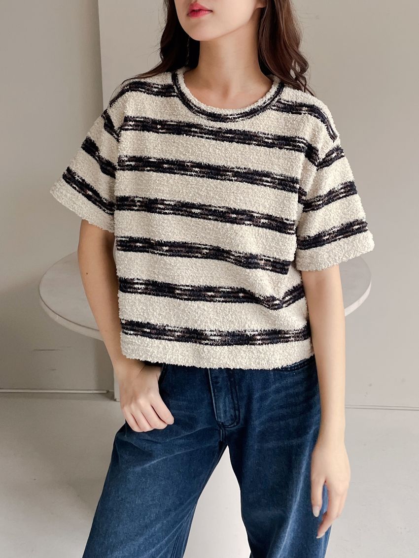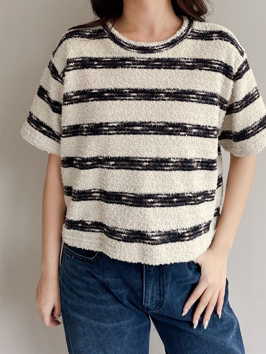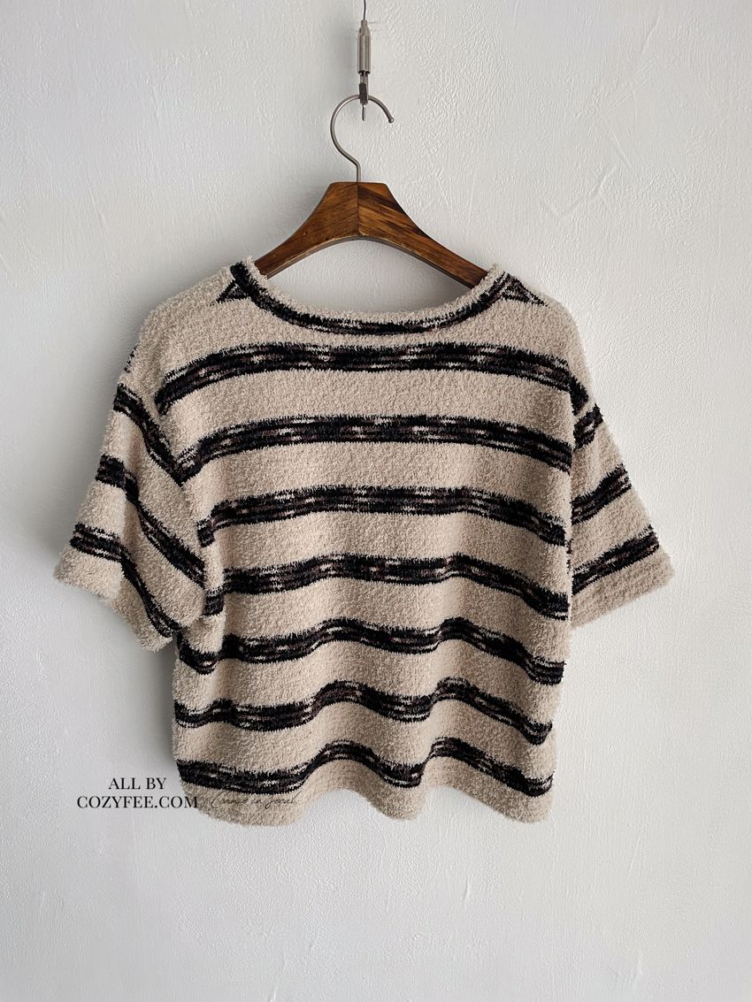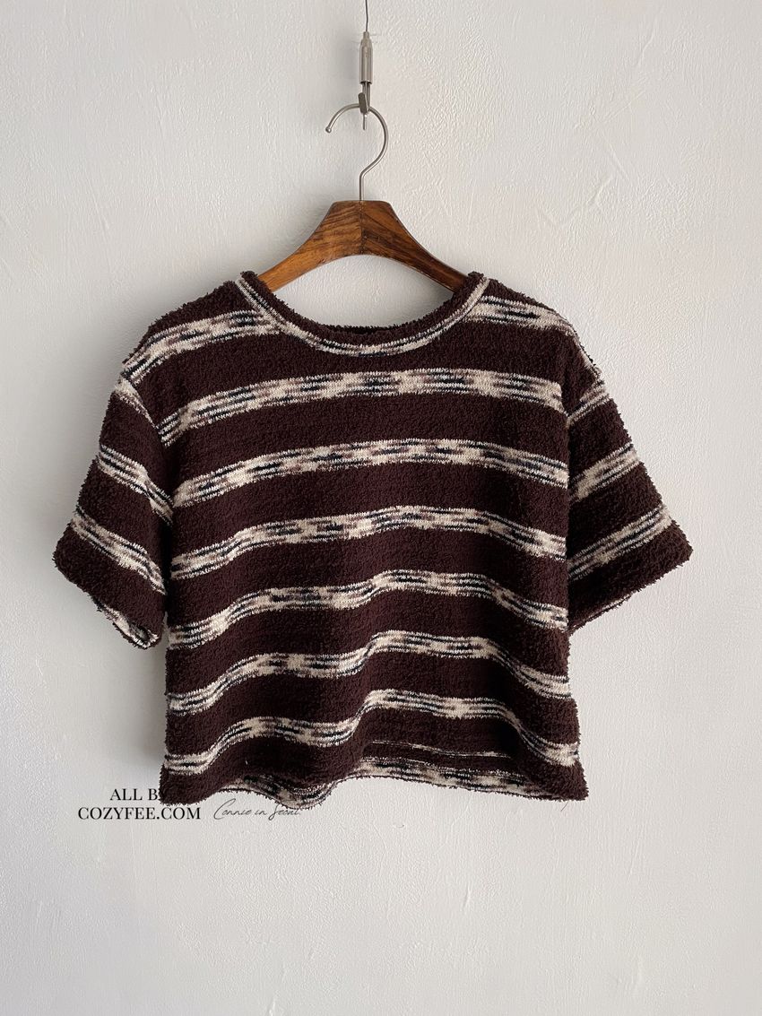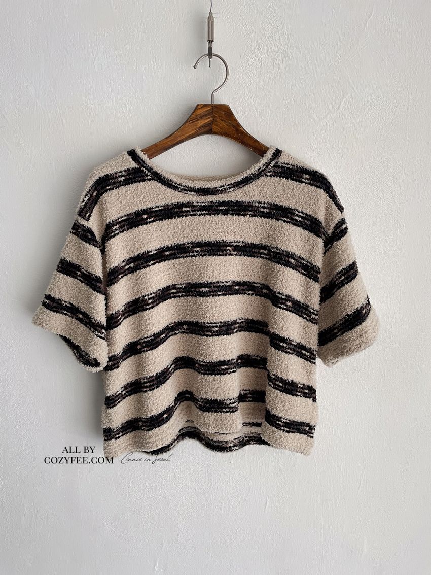 > 鬆軟熊寶條紋短T