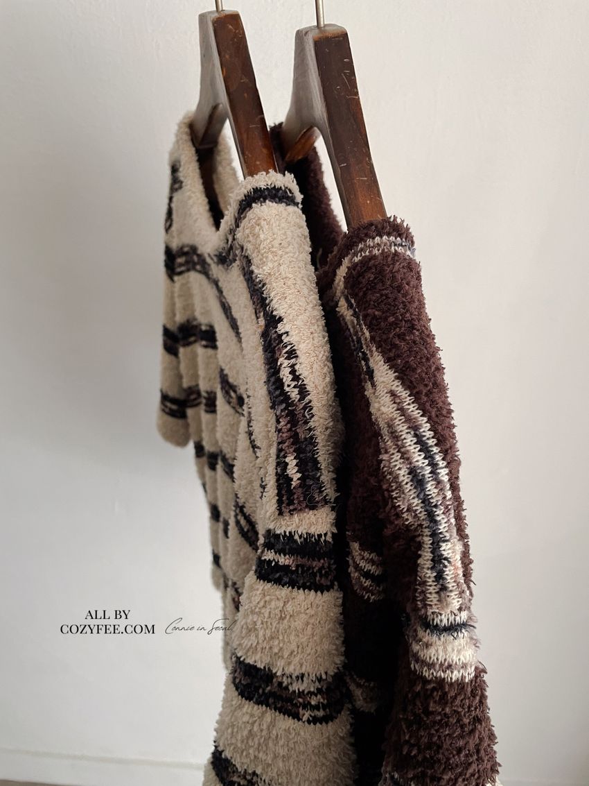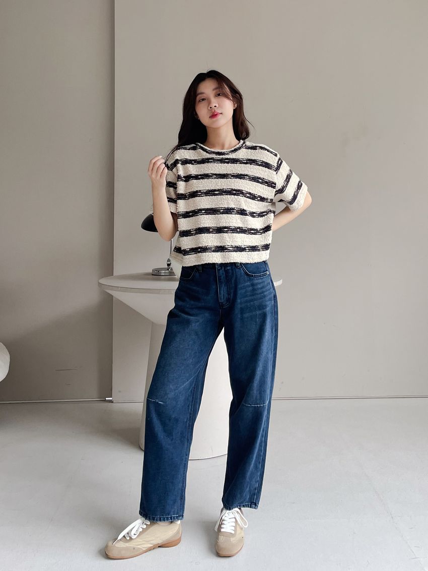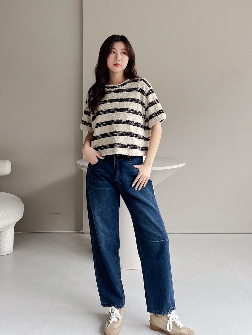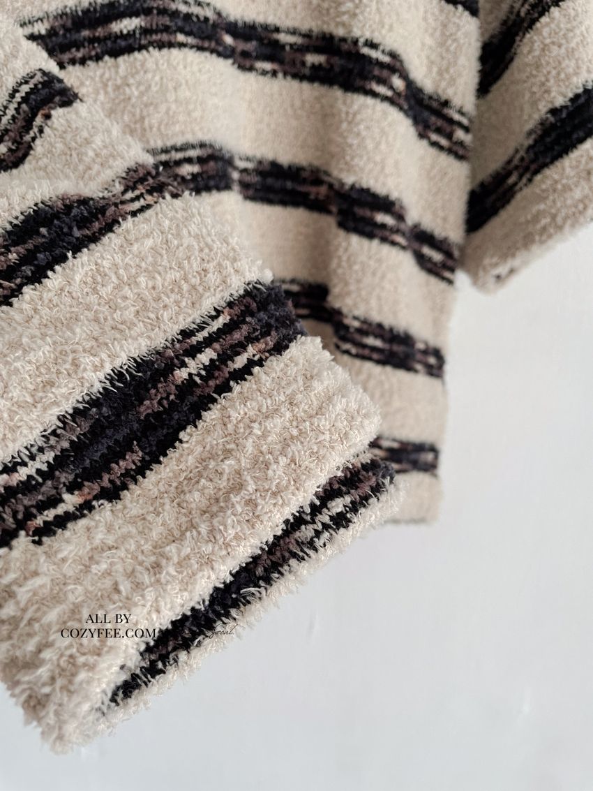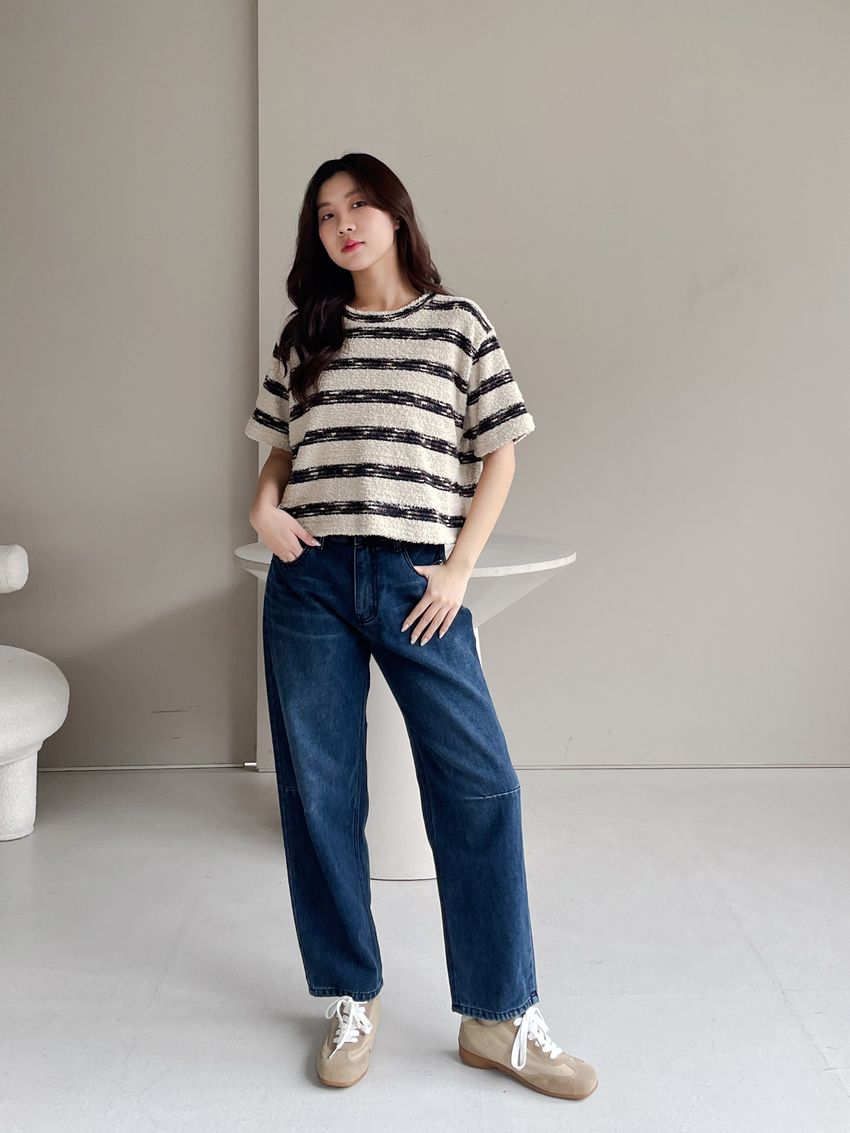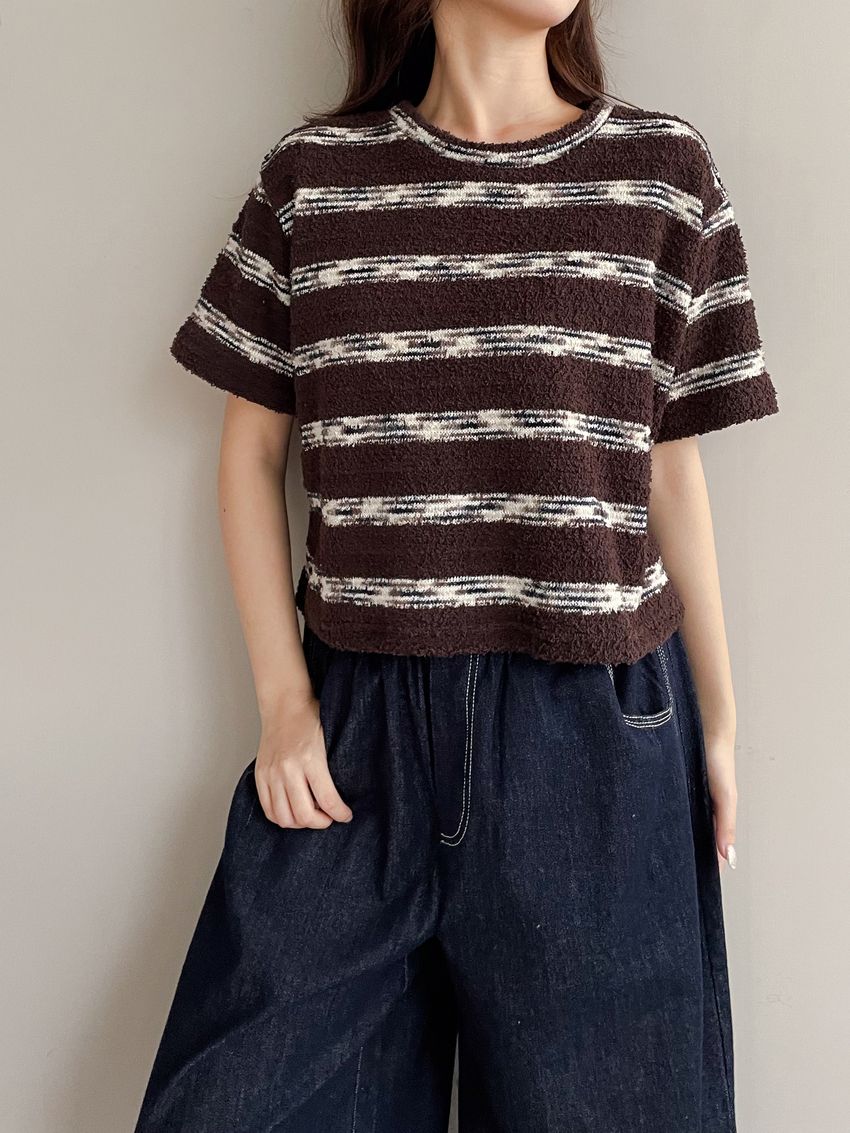 > 鬆軟熊寶條紋短T
