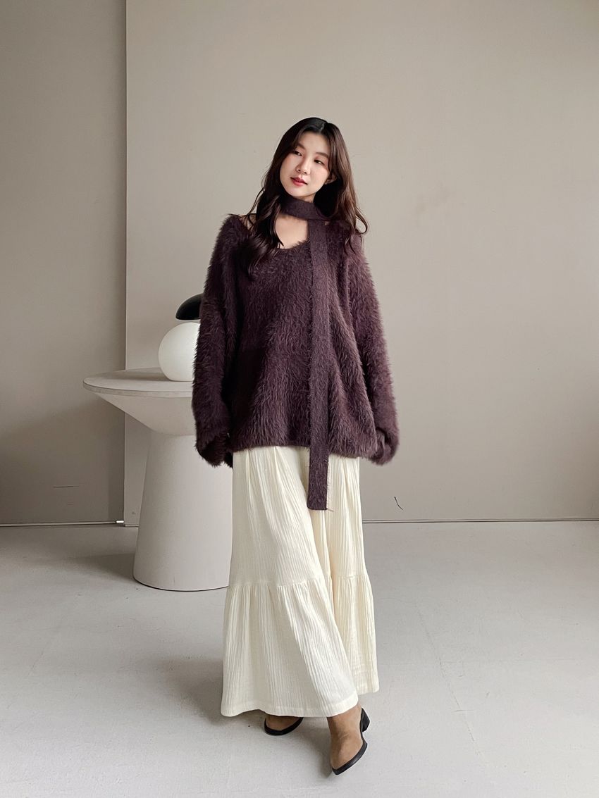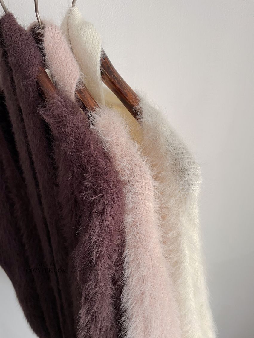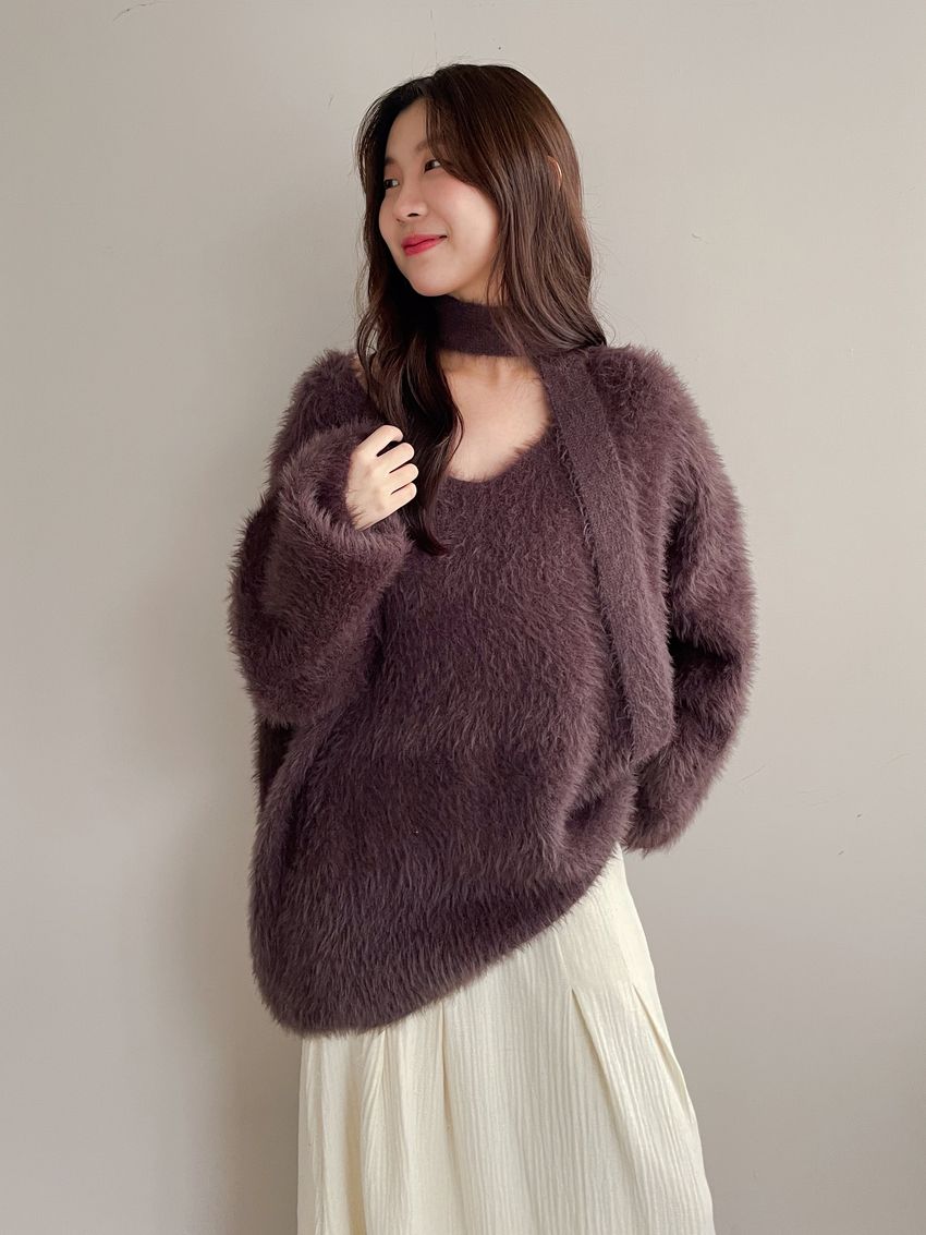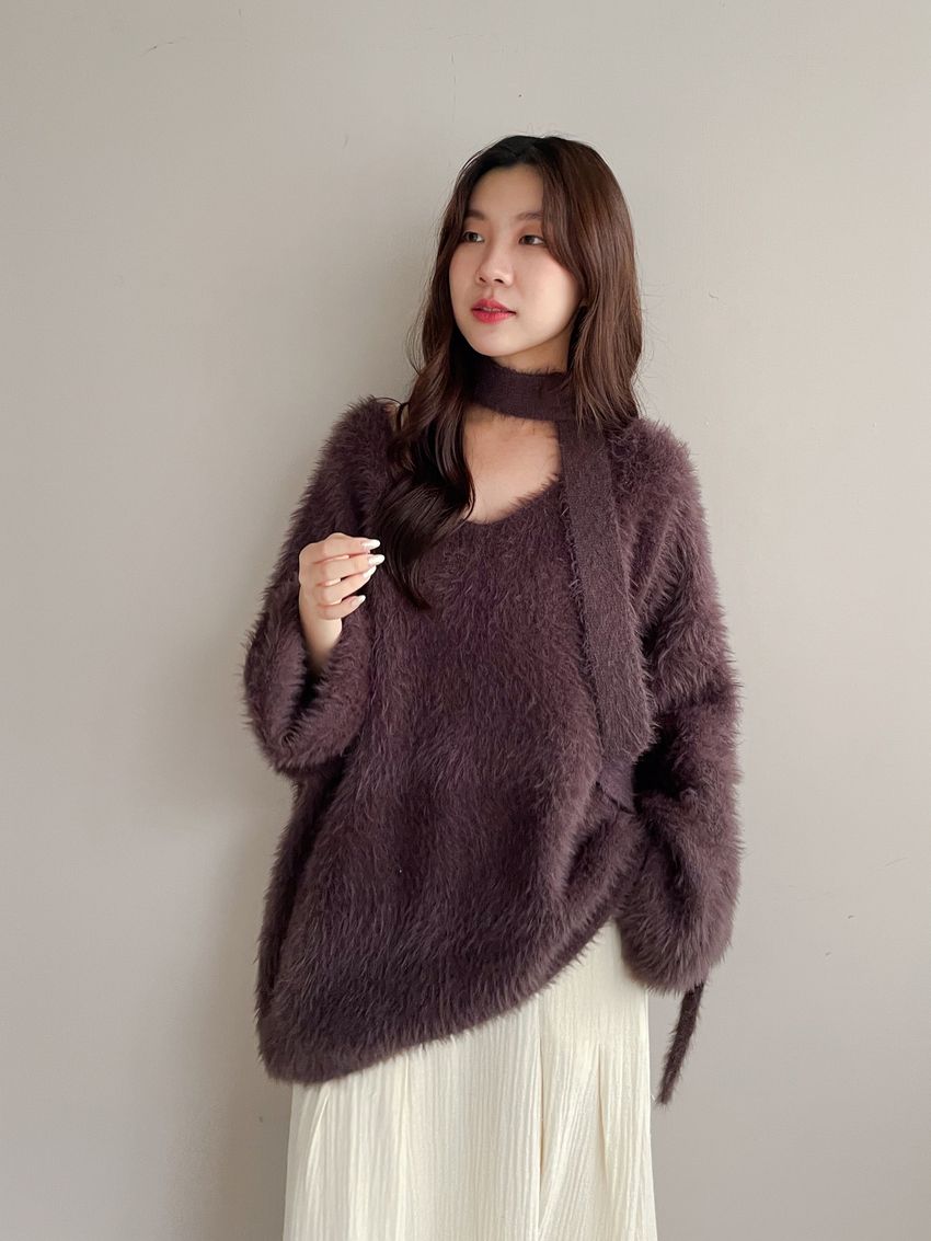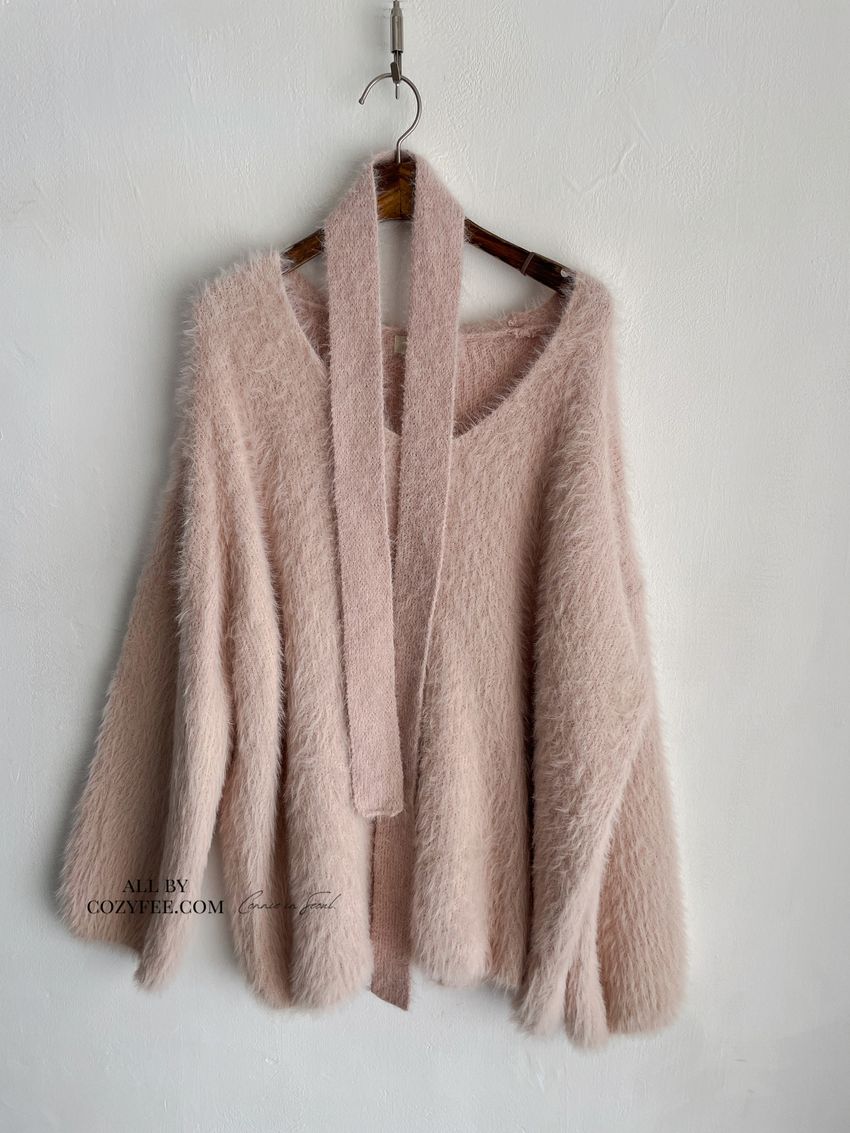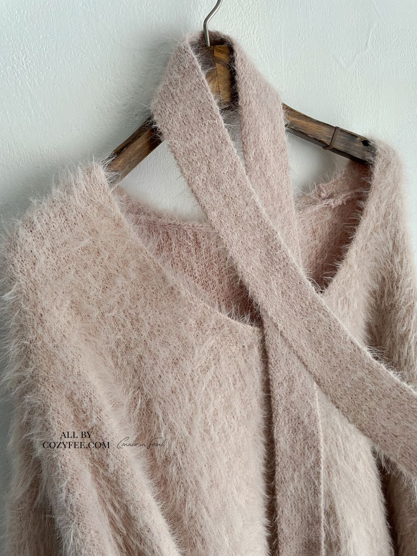 > Connie推薦款!輕奢V領毛海毛衣(附綁帶)