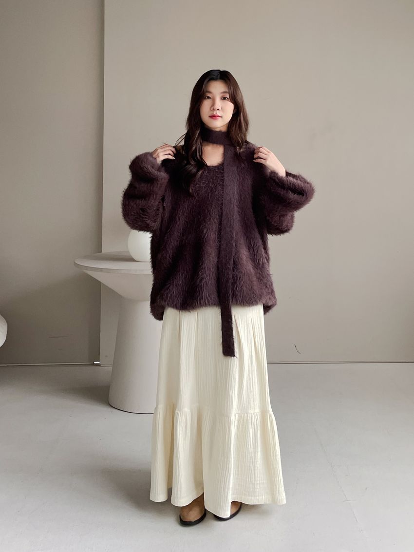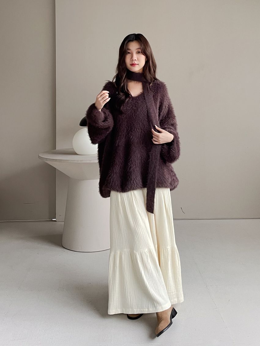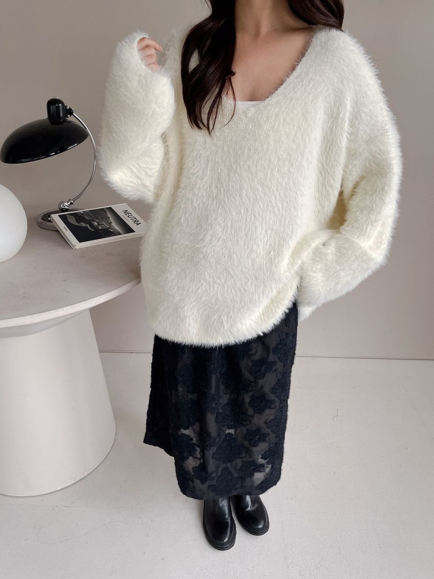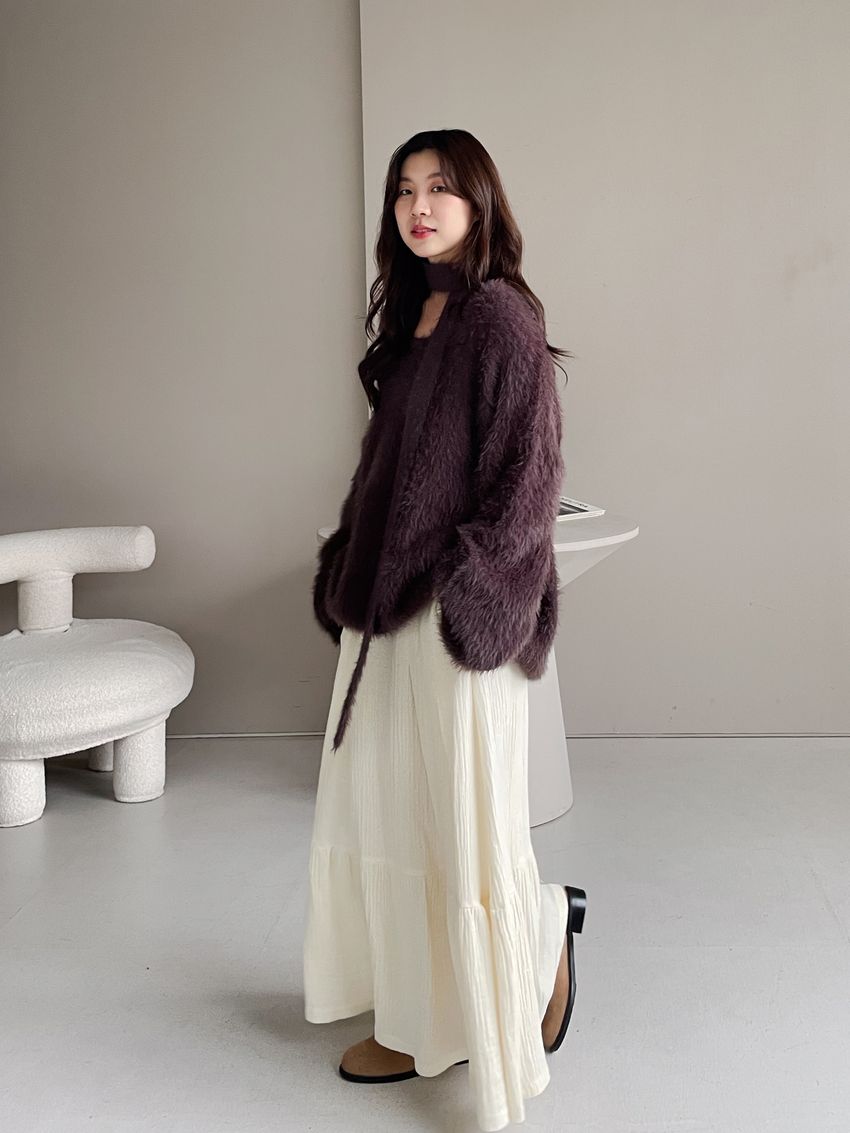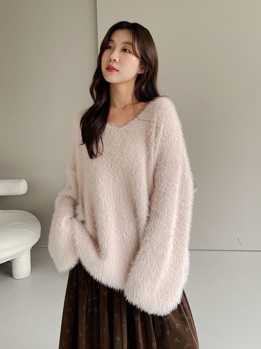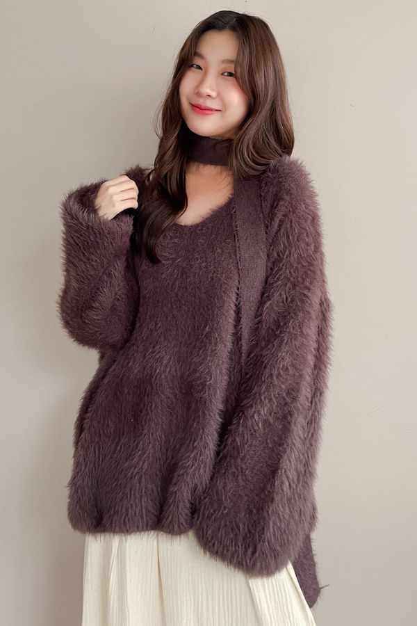 > Connie推薦款!輕奢V領毛海毛衣(附綁帶)