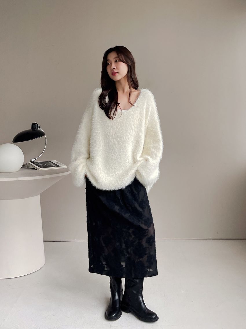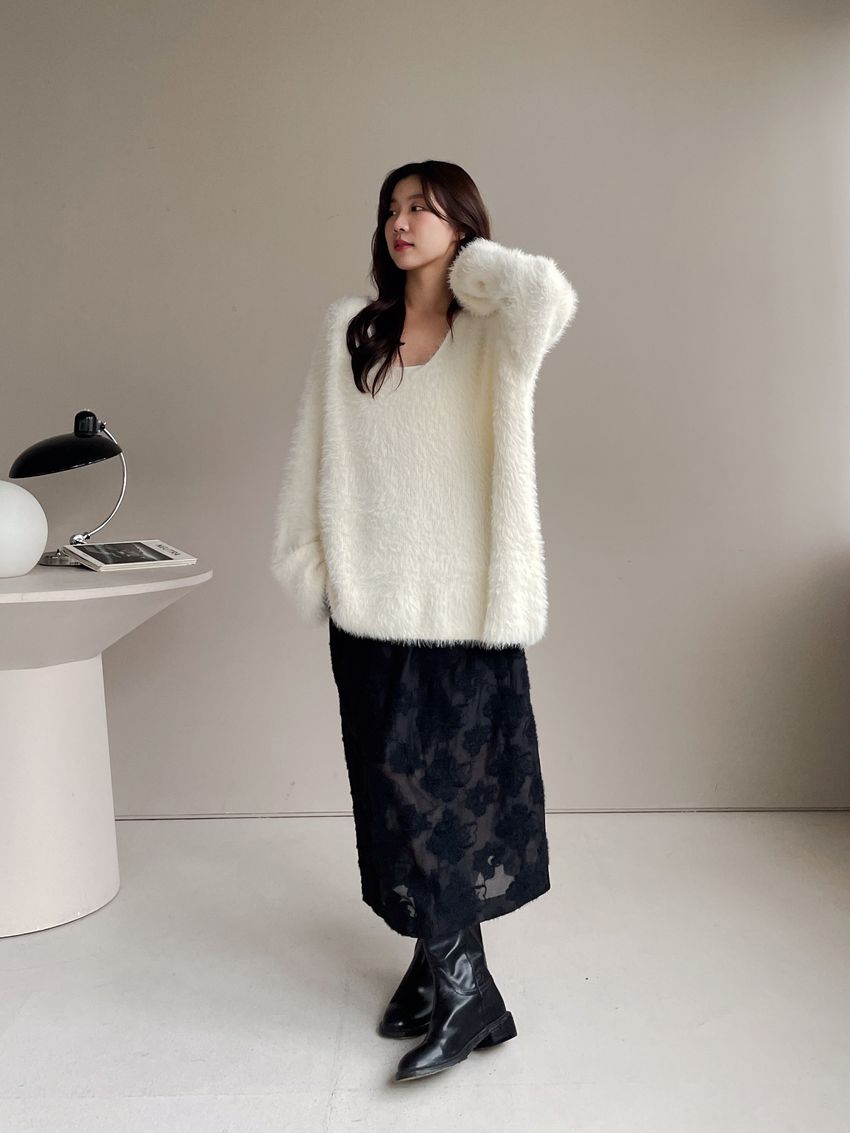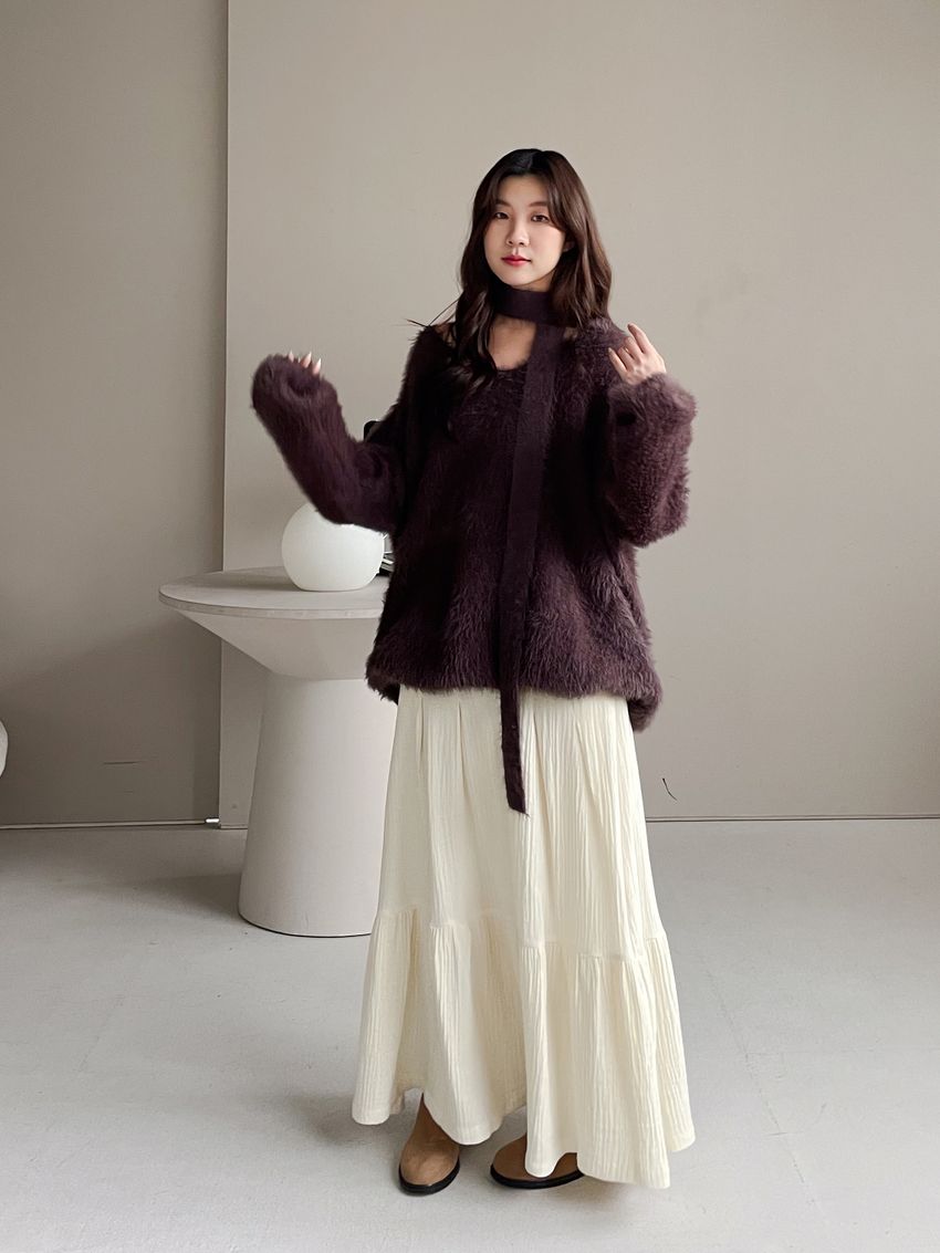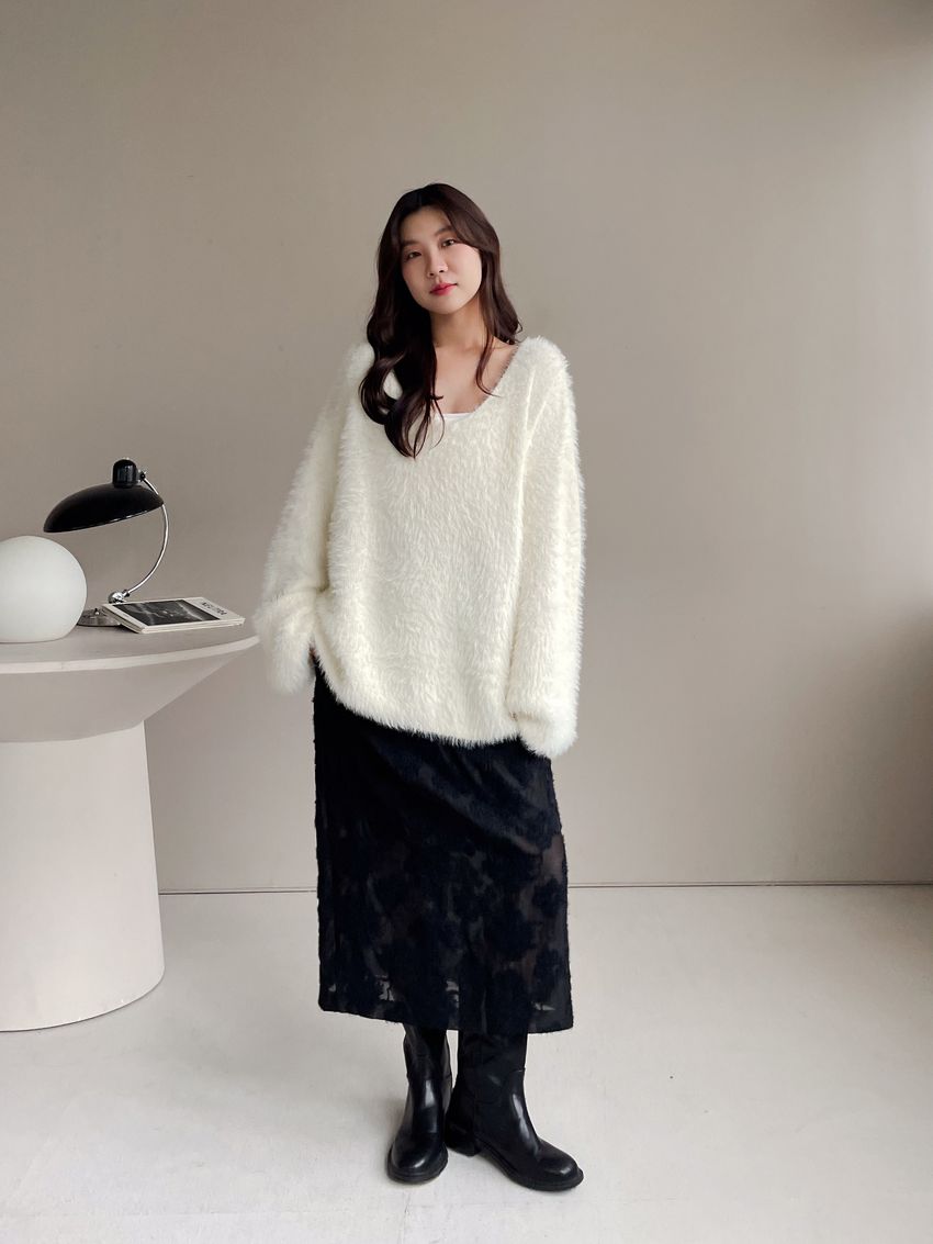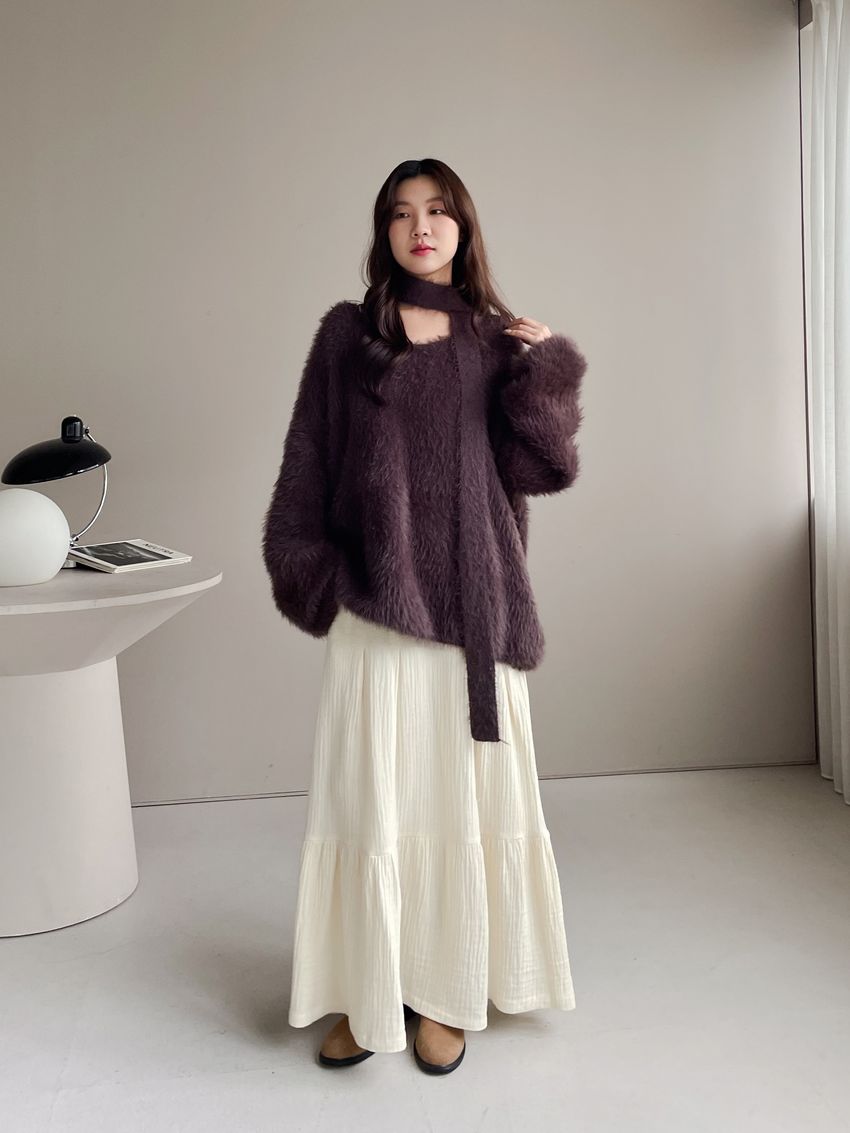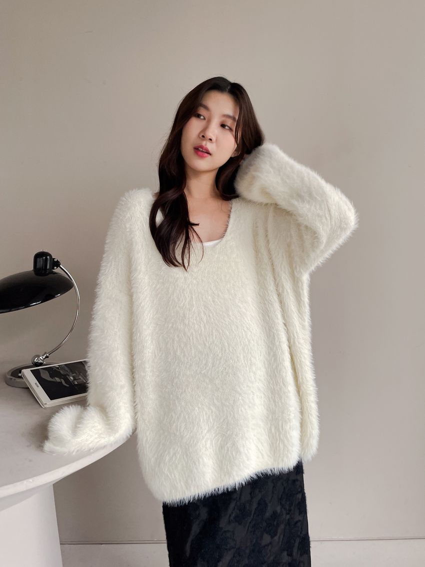 > Connie推薦款!輕奢V領毛海毛衣(附綁帶)
