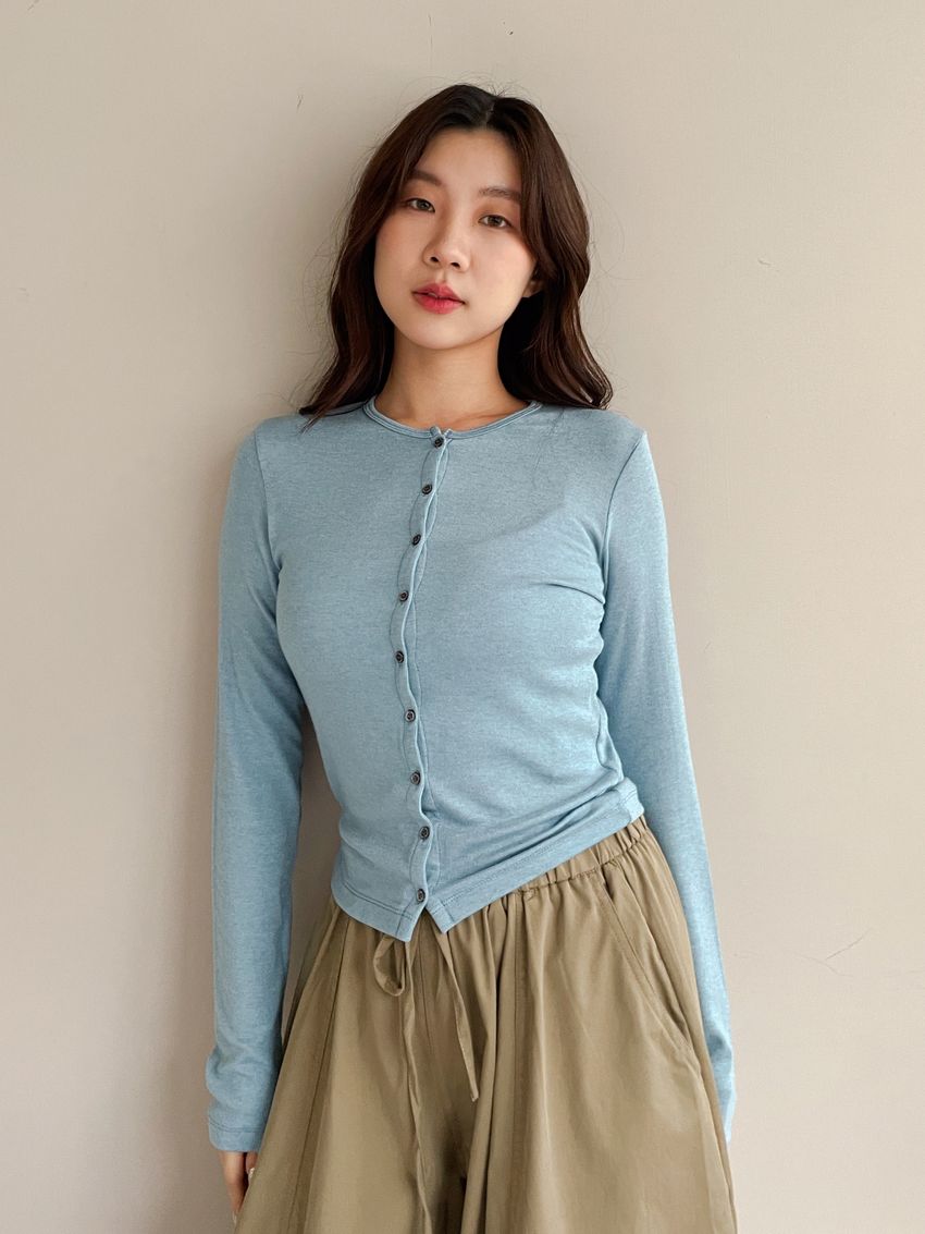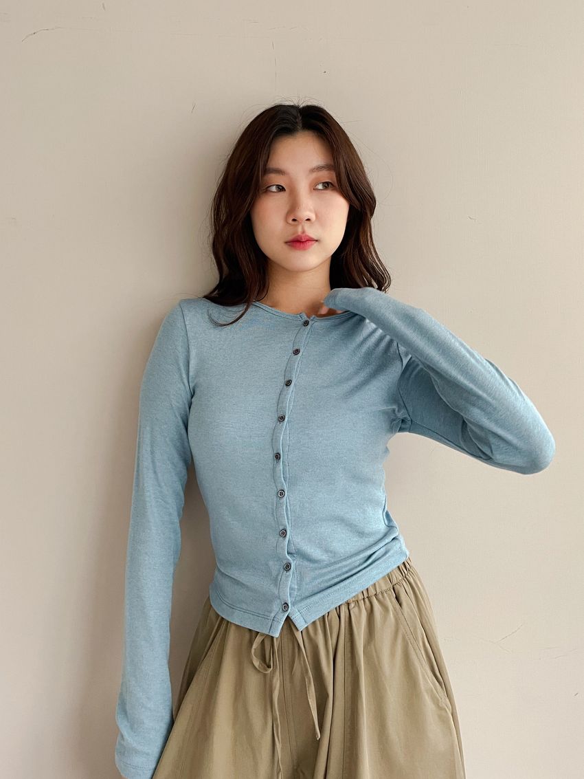 > 排釦天絲針織棉小外套