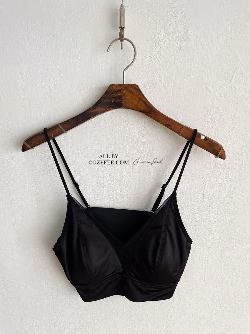 法式緞感網紗V領Bra Top(內含墊)(特)