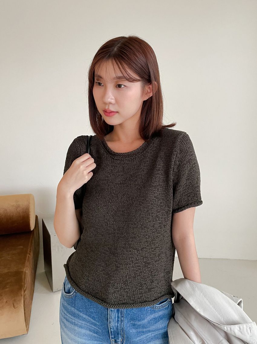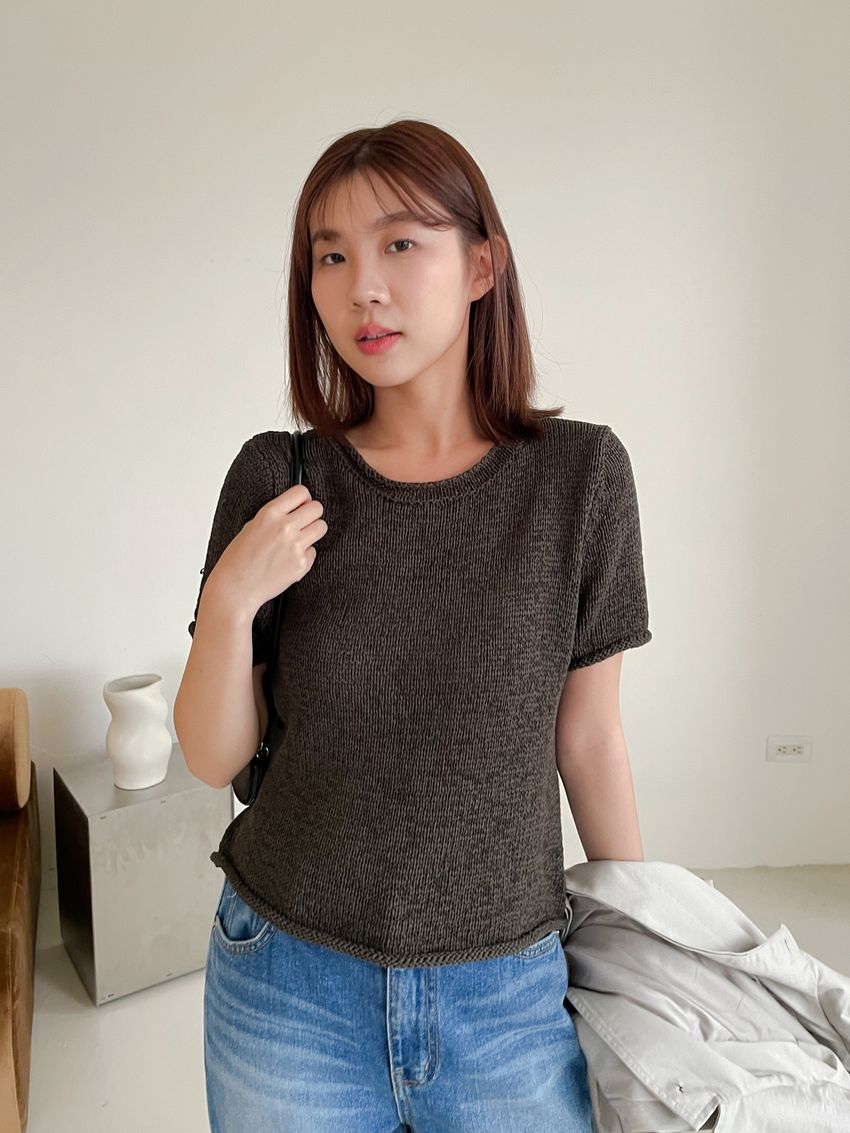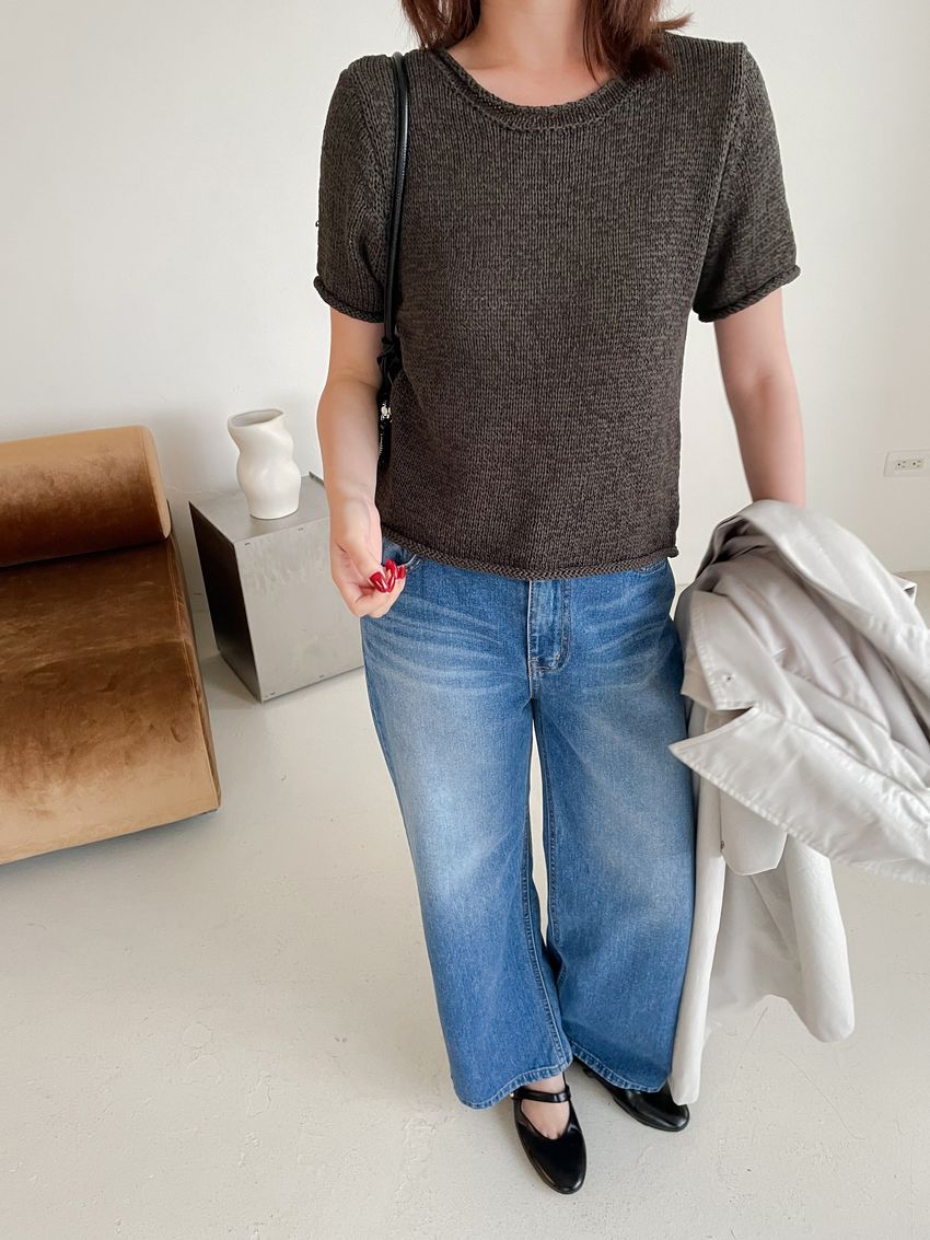 粗勾織短版針織衫