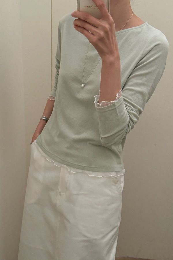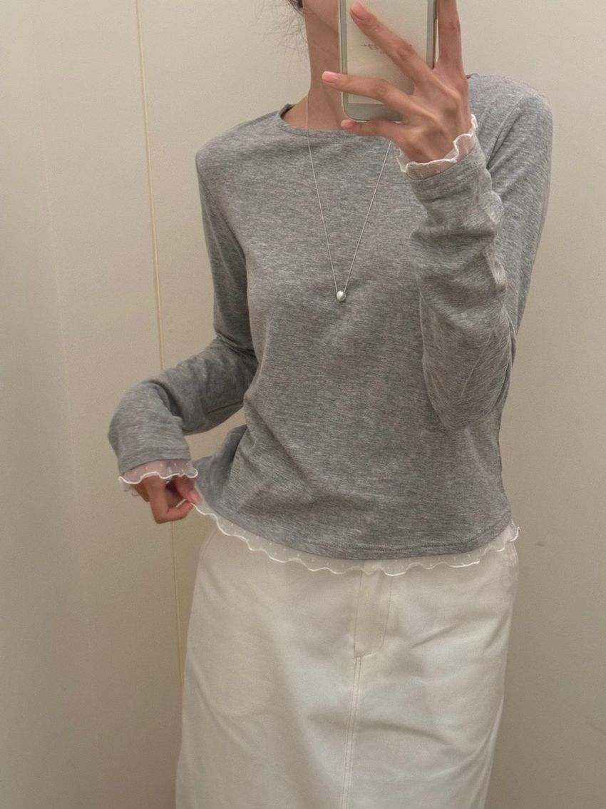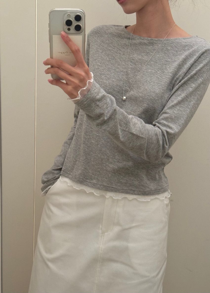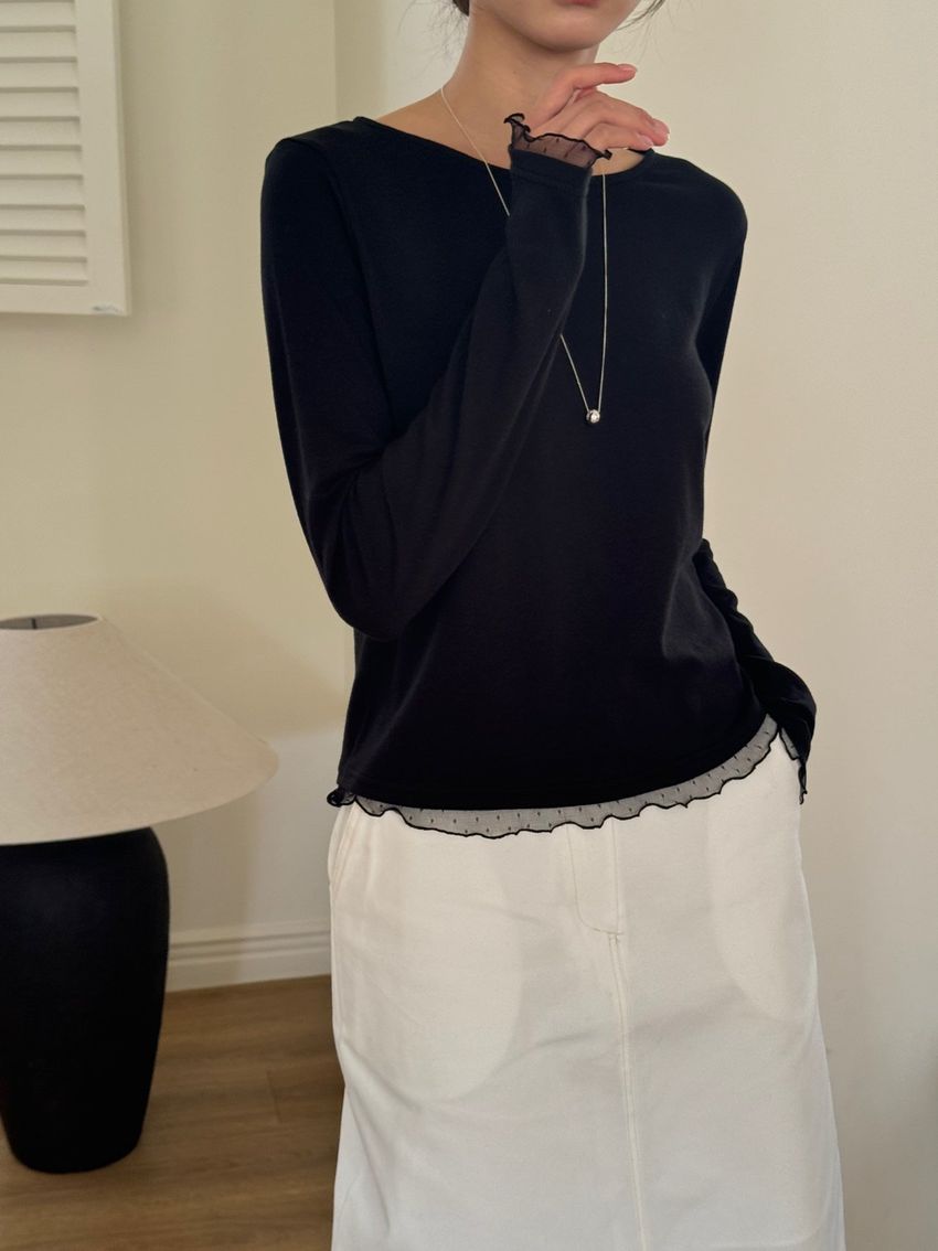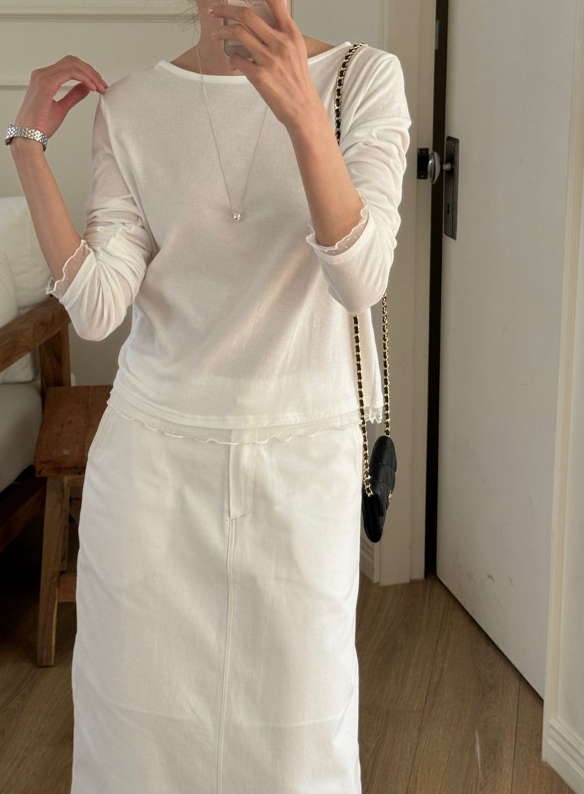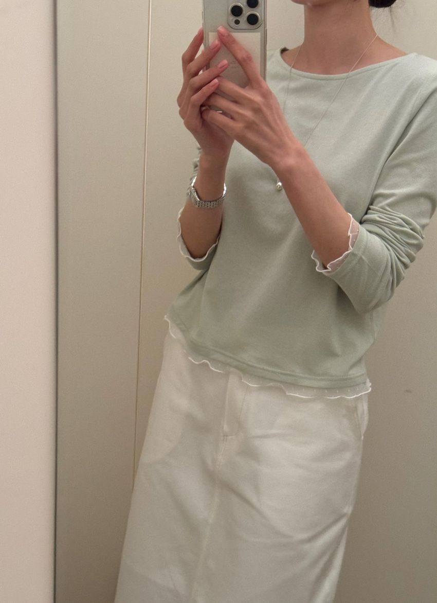 點紗滾邊薄軟長T