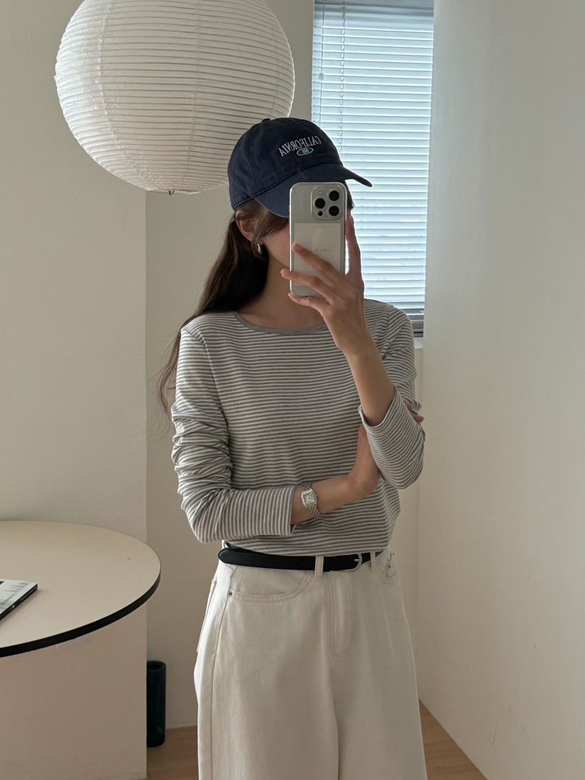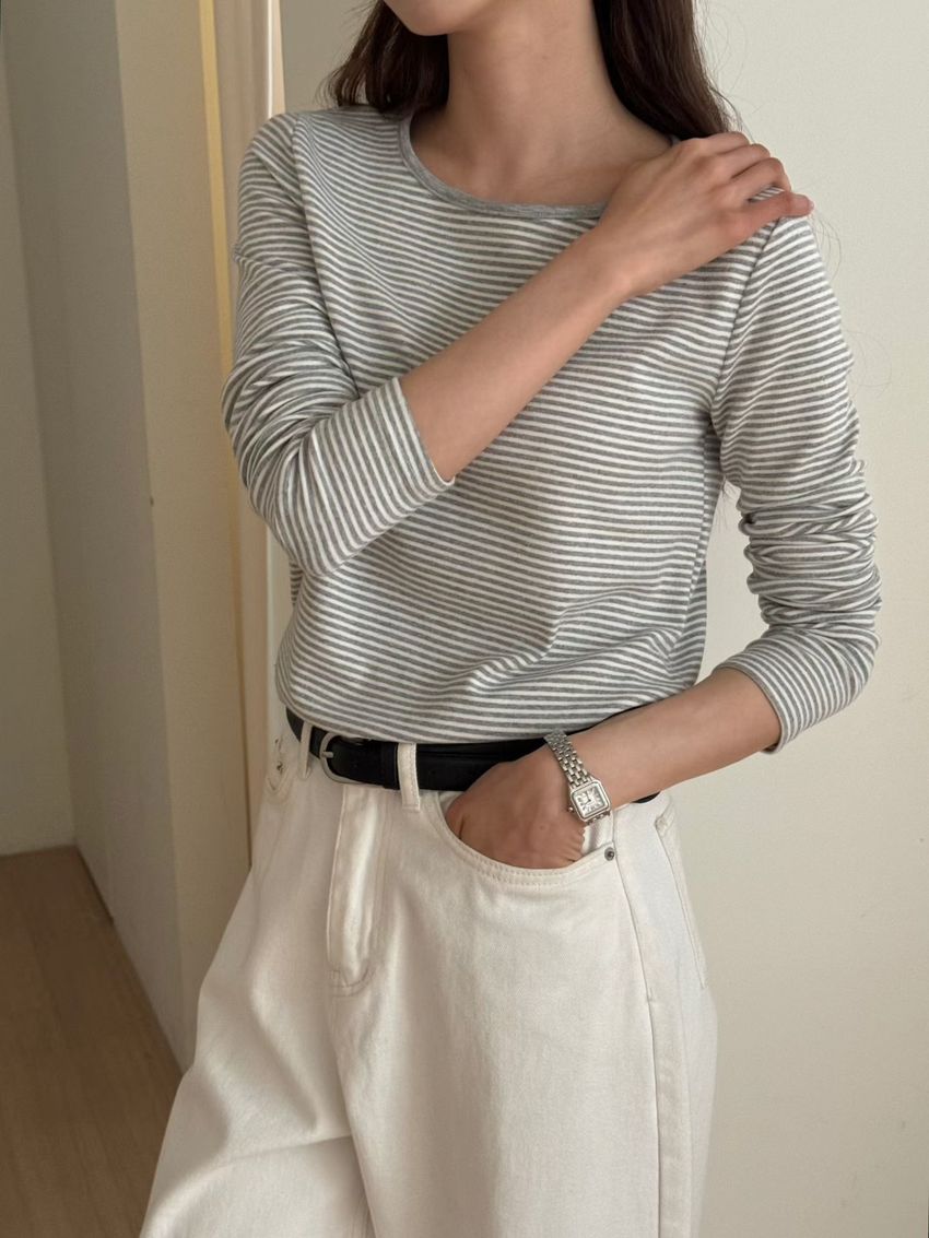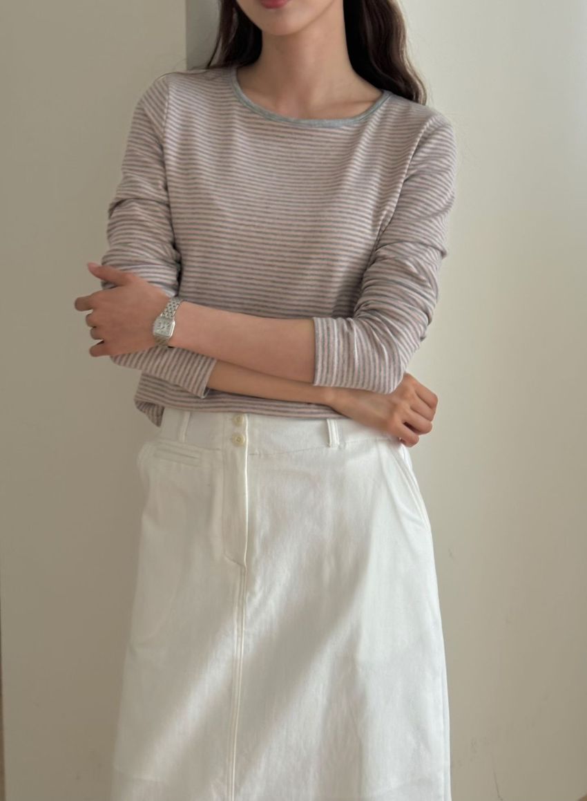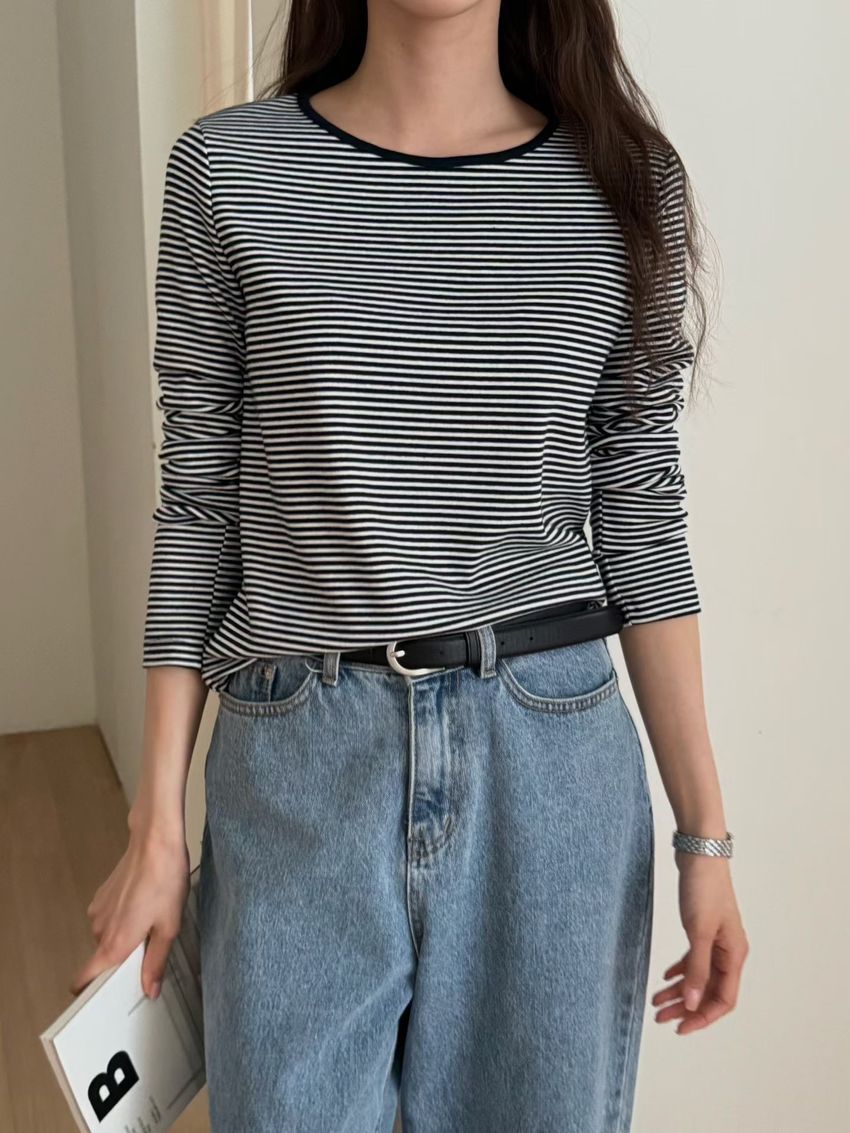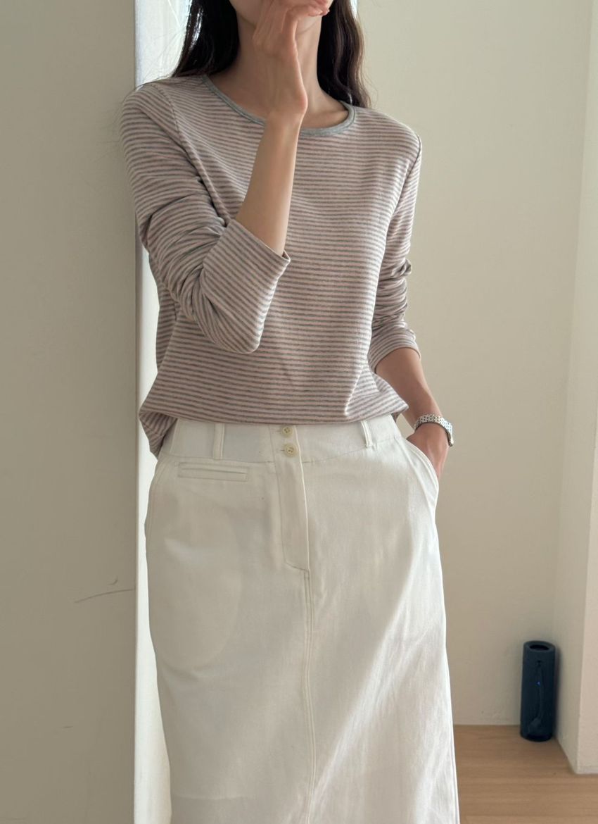 > 無印細條紋柔軟長T