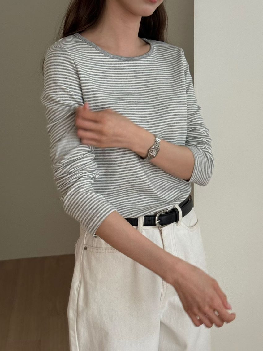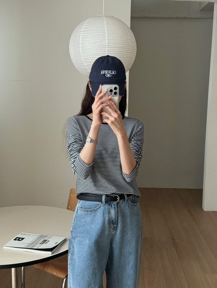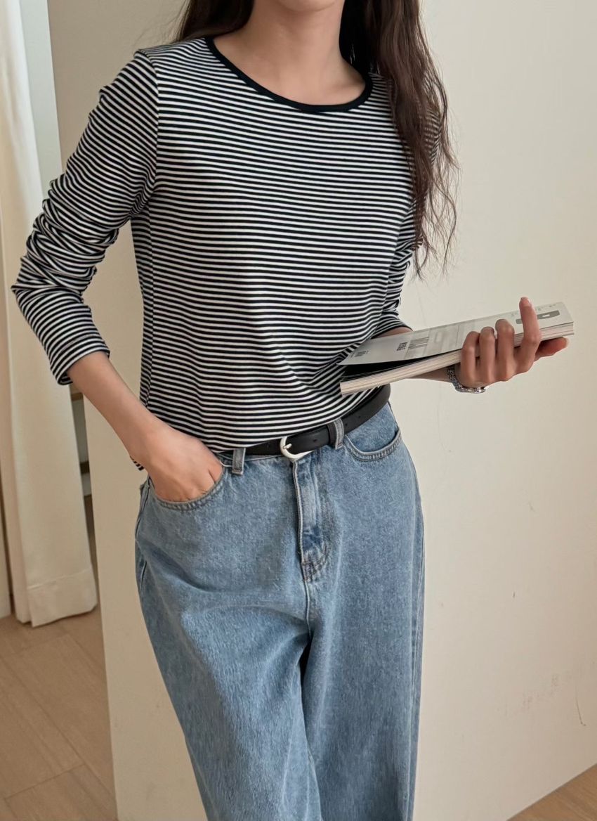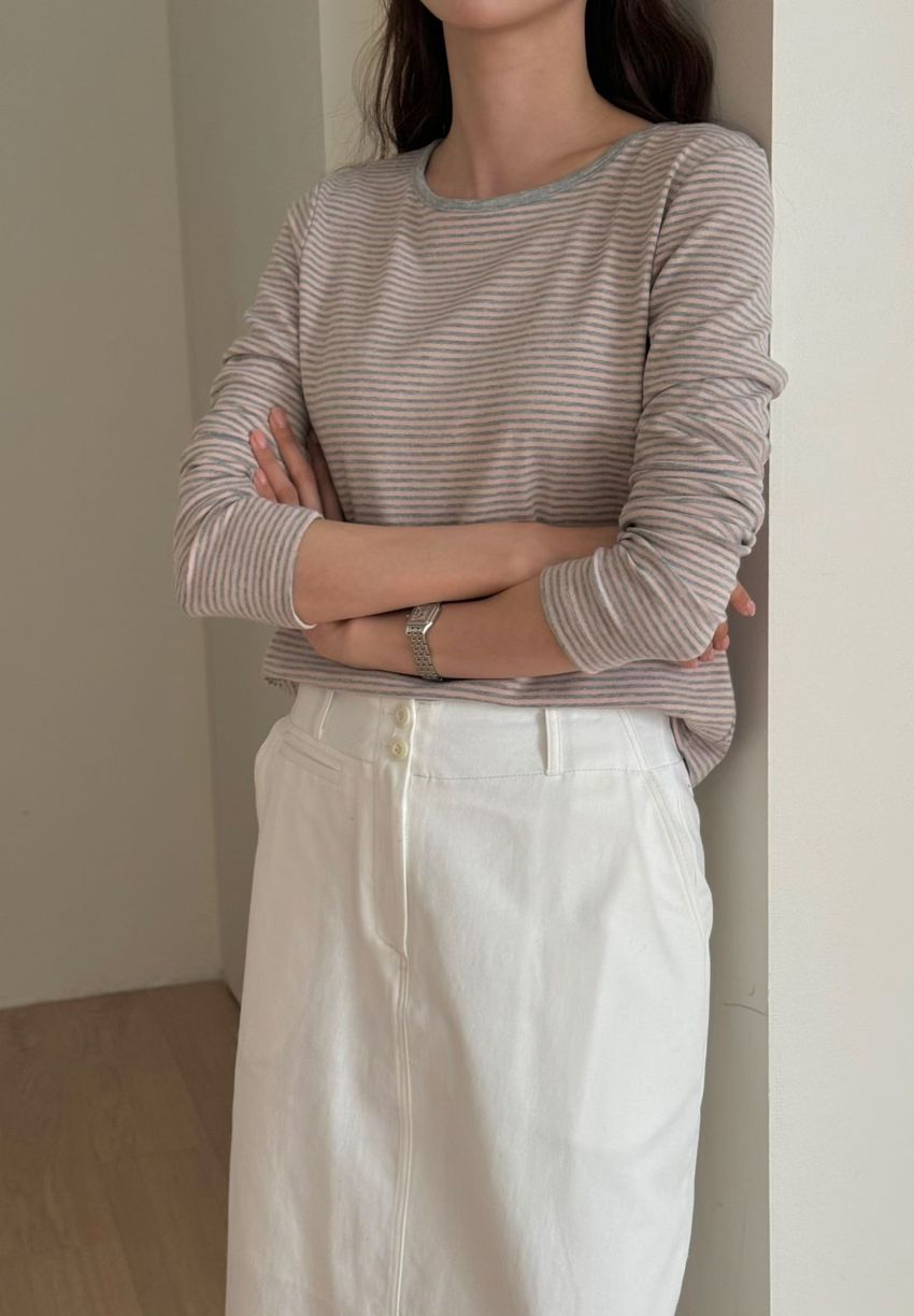 > 無印細條紋柔軟長T