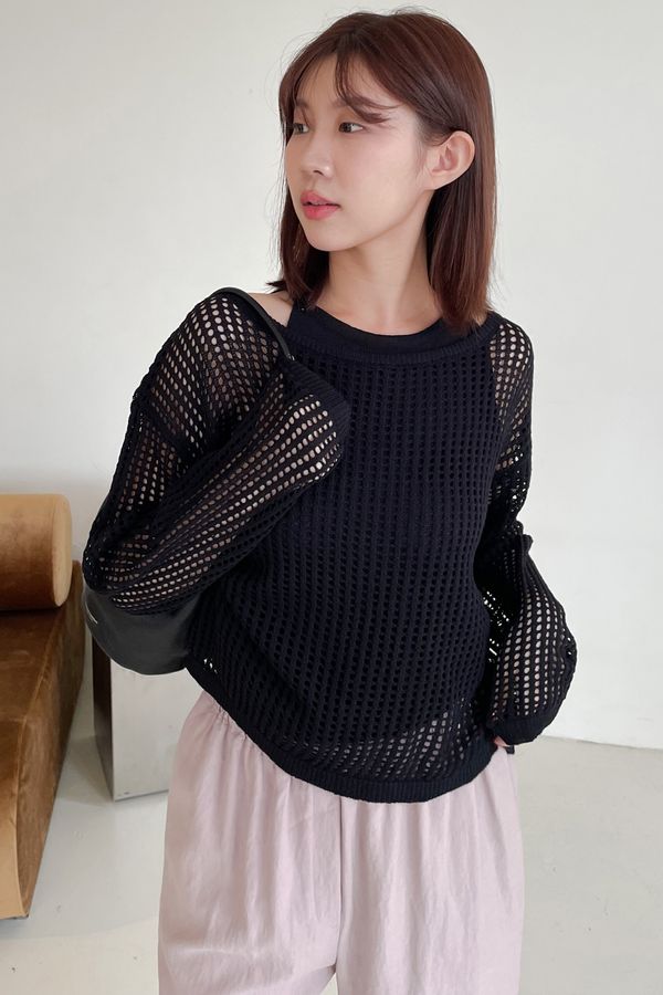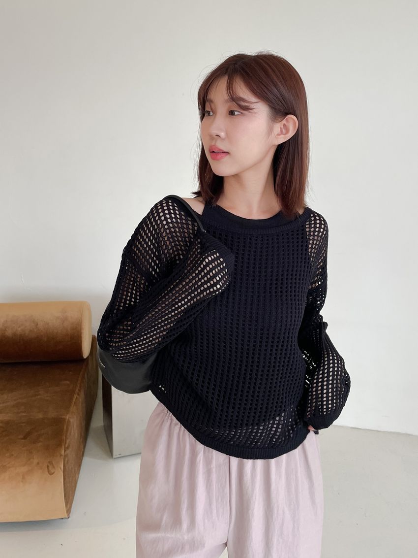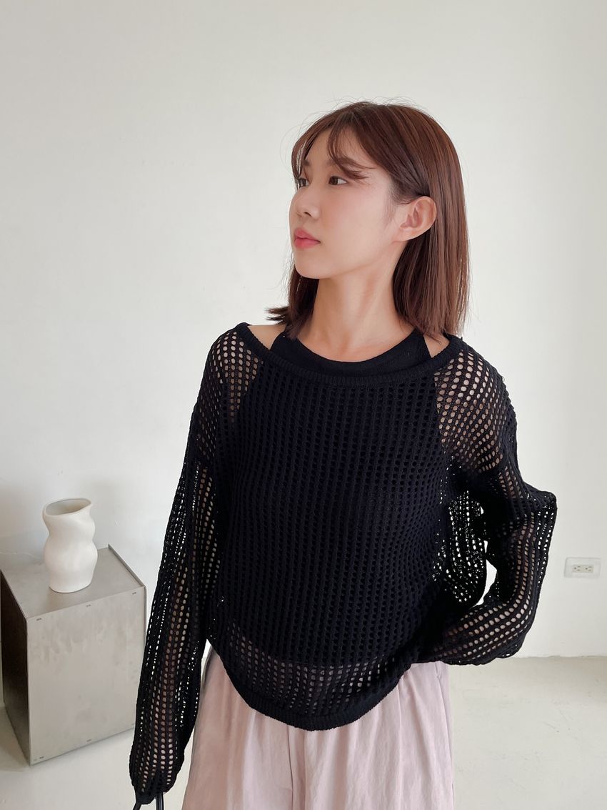 > 兩件式洞洞勾織針織罩衫