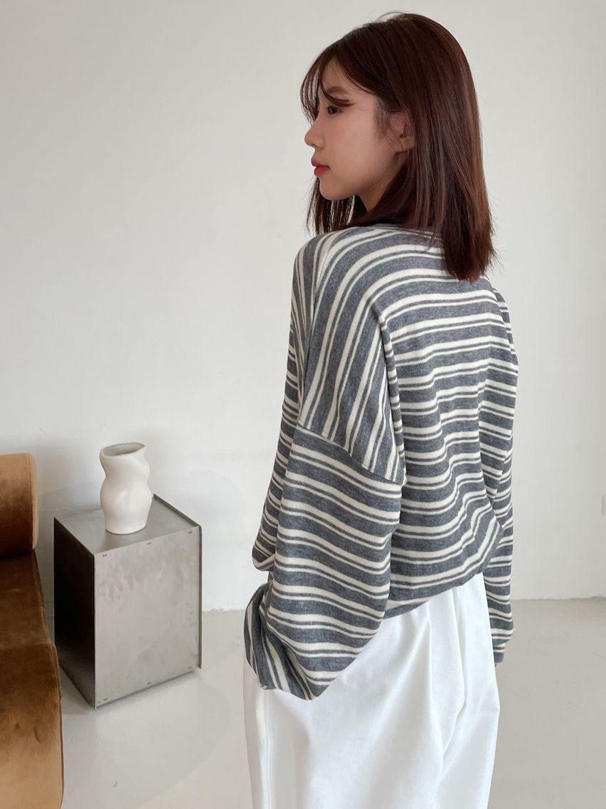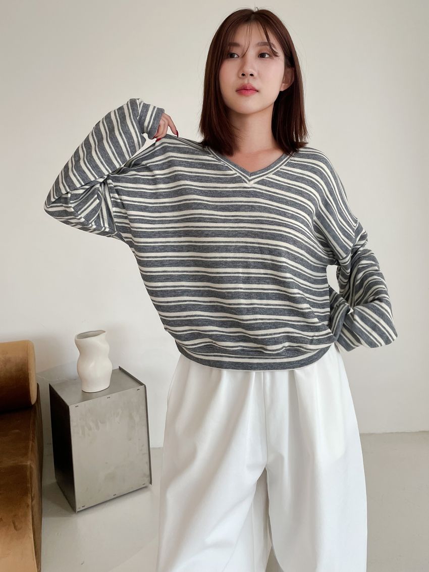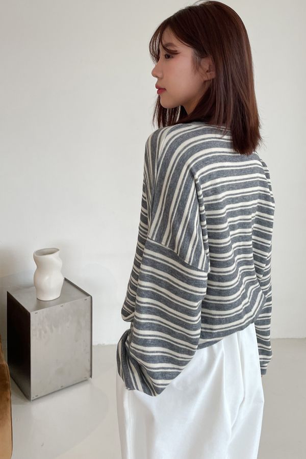 > Connie推薦款!桃型V領條紋針織大學T