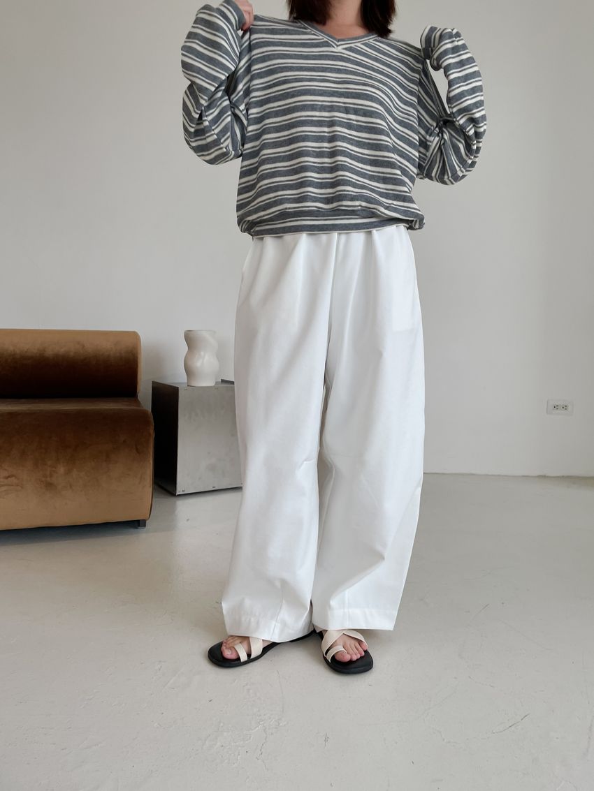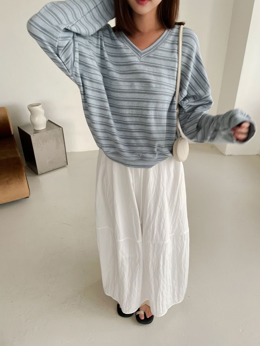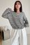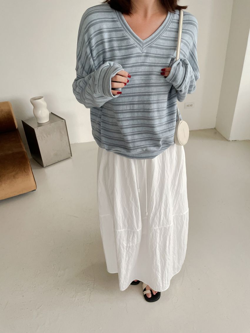 Connie推薦款!桃型V領條紋針織大學T