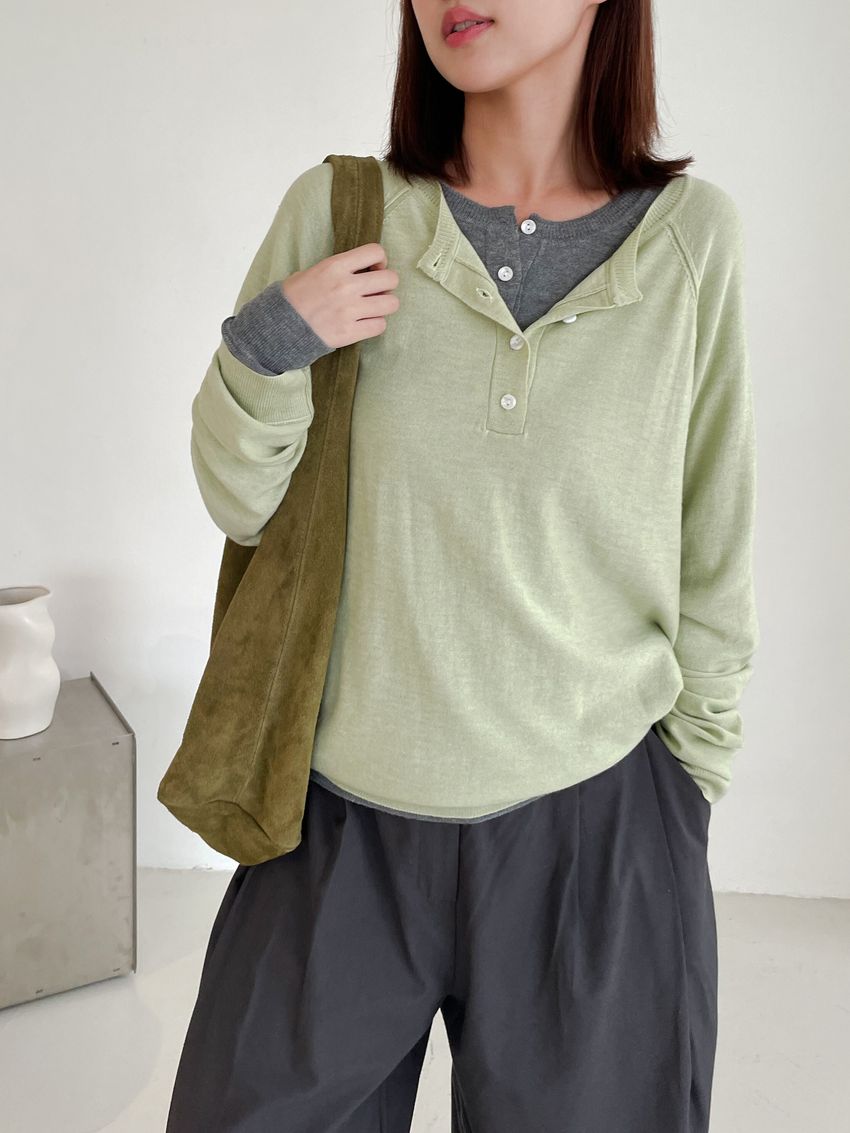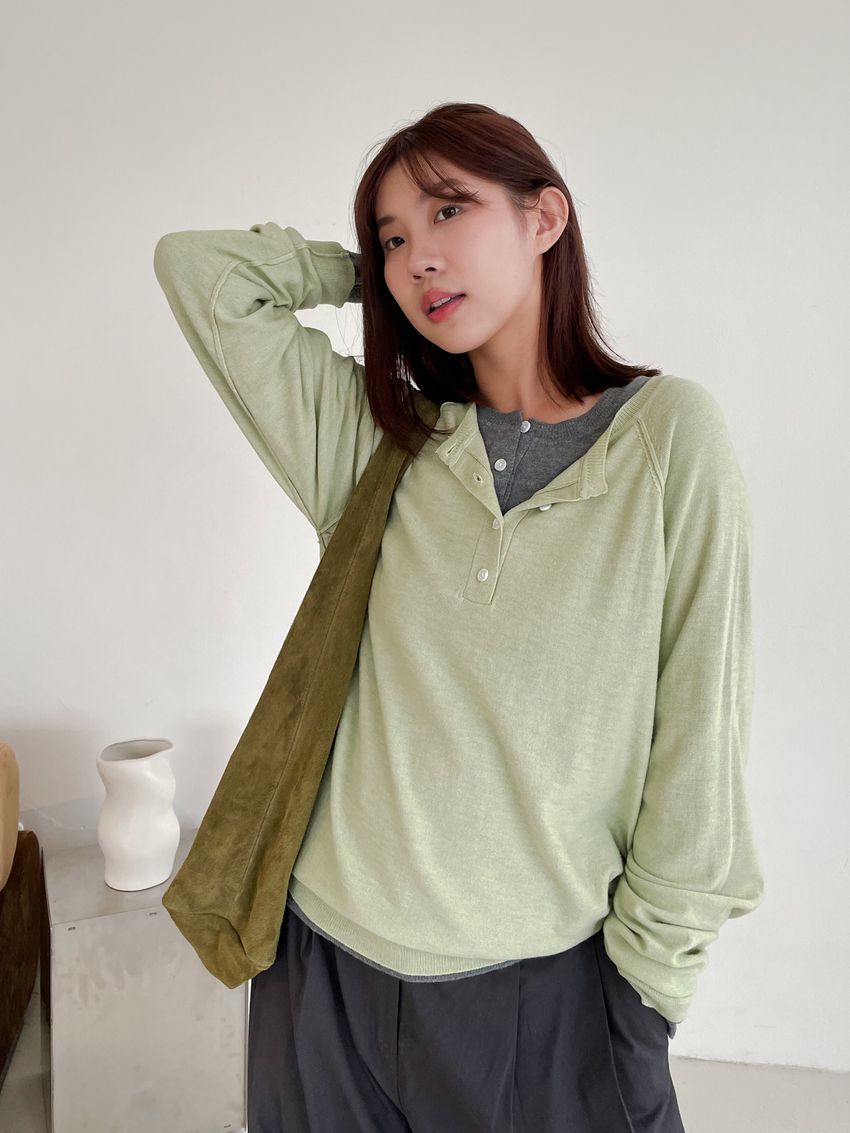Connie推薦款!亨利領釦羊毛針織衫