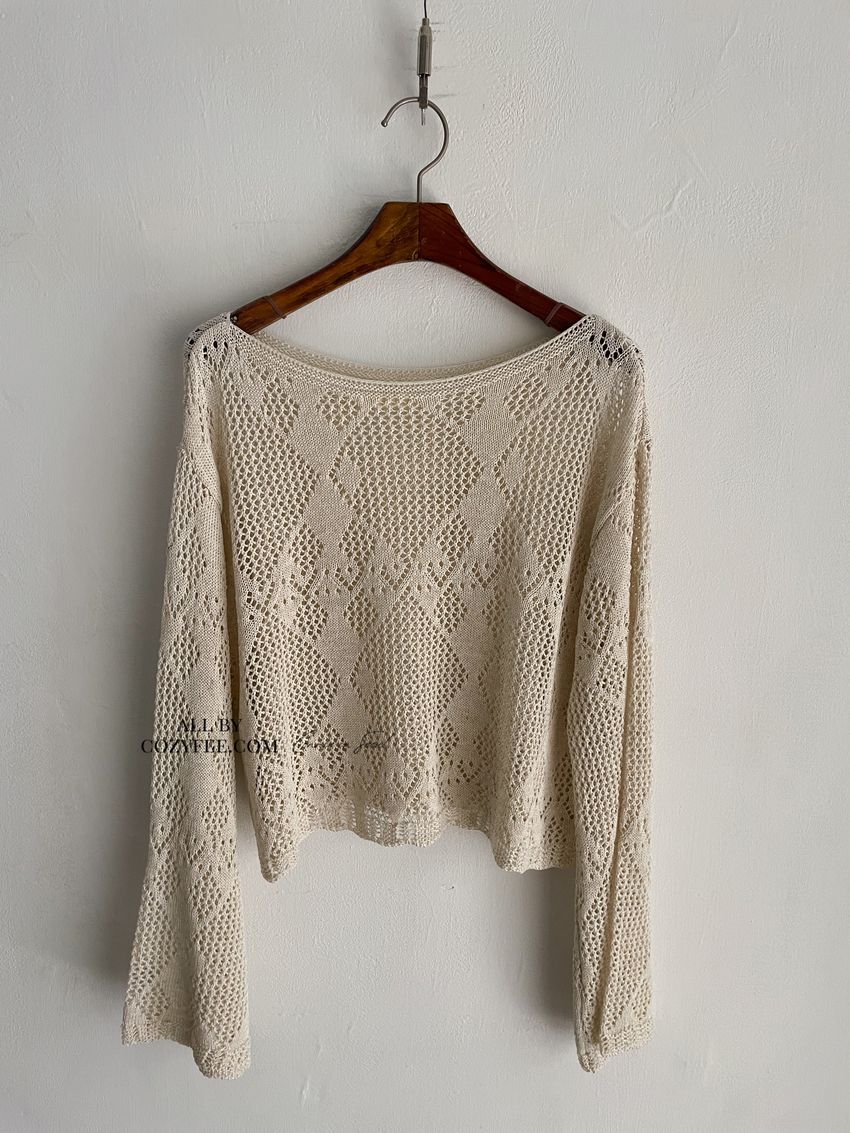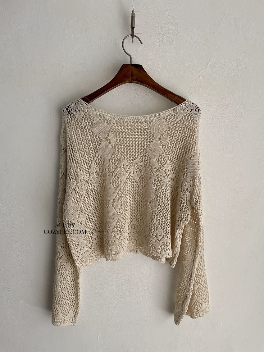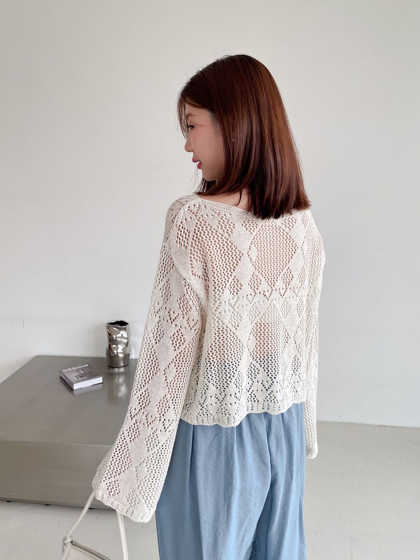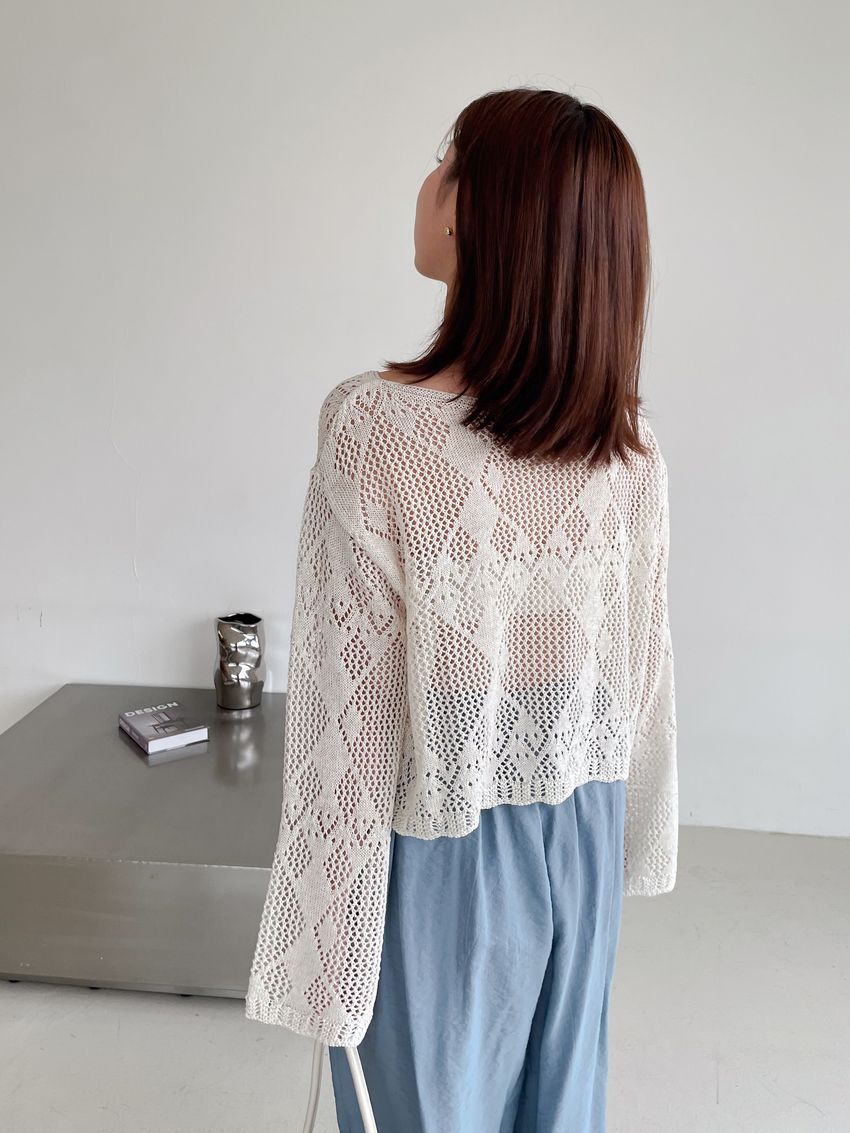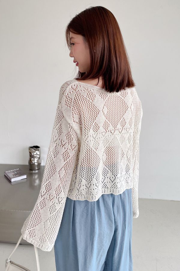 菱形鉤織透膚短罩衫(直播款)