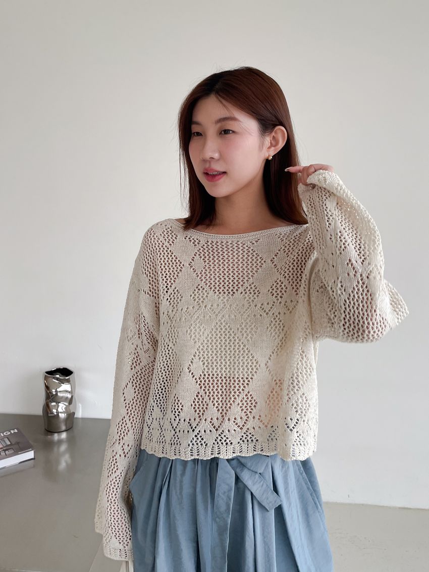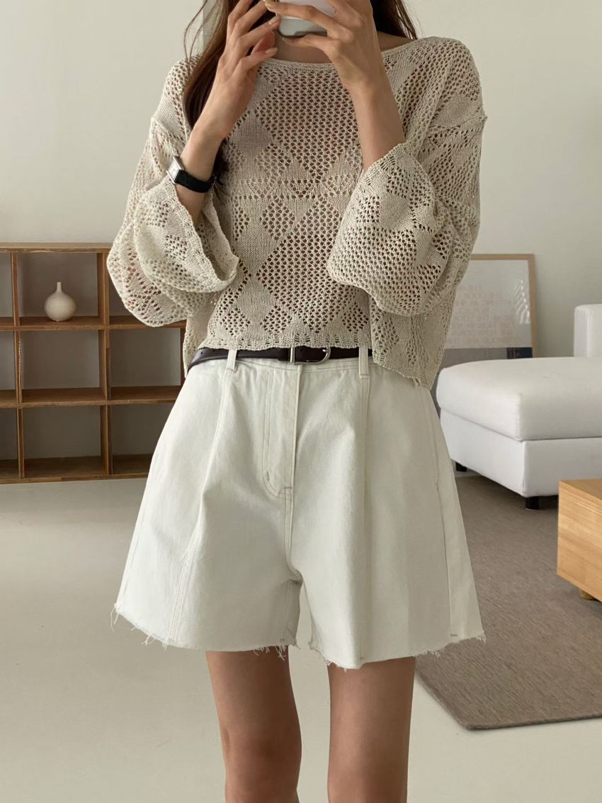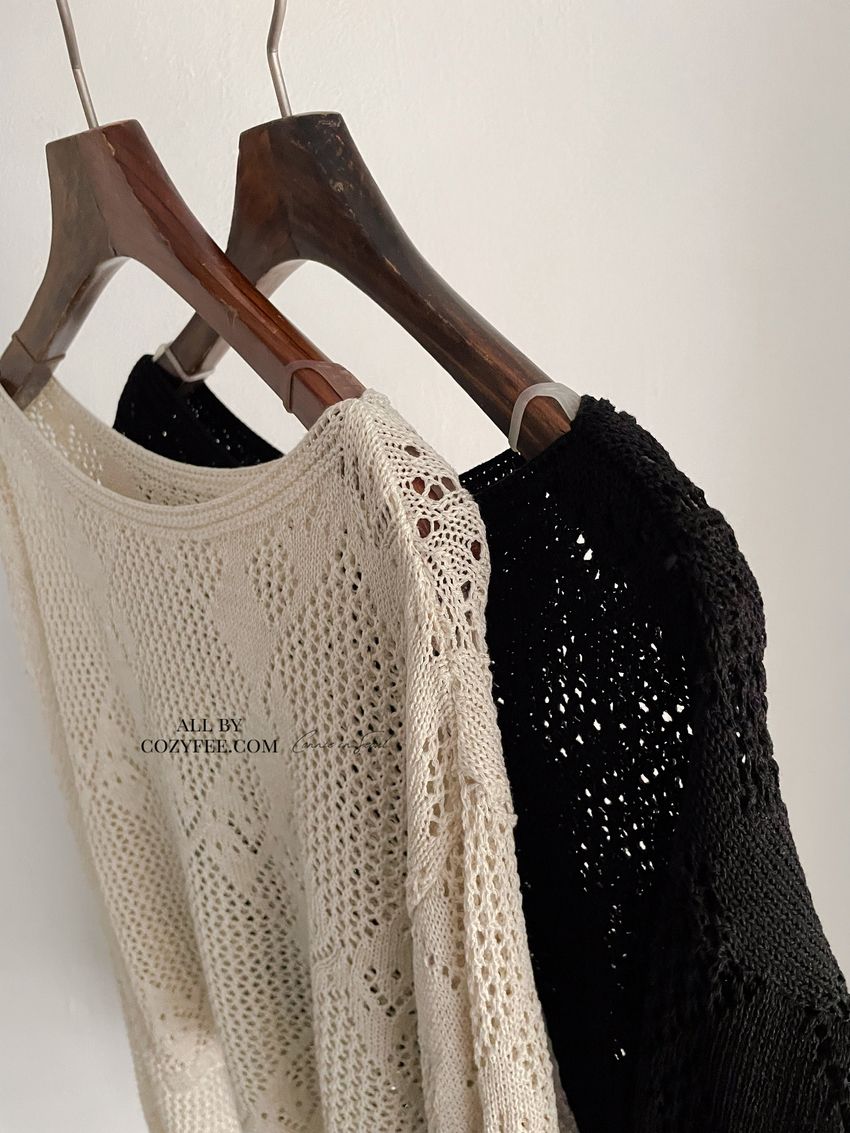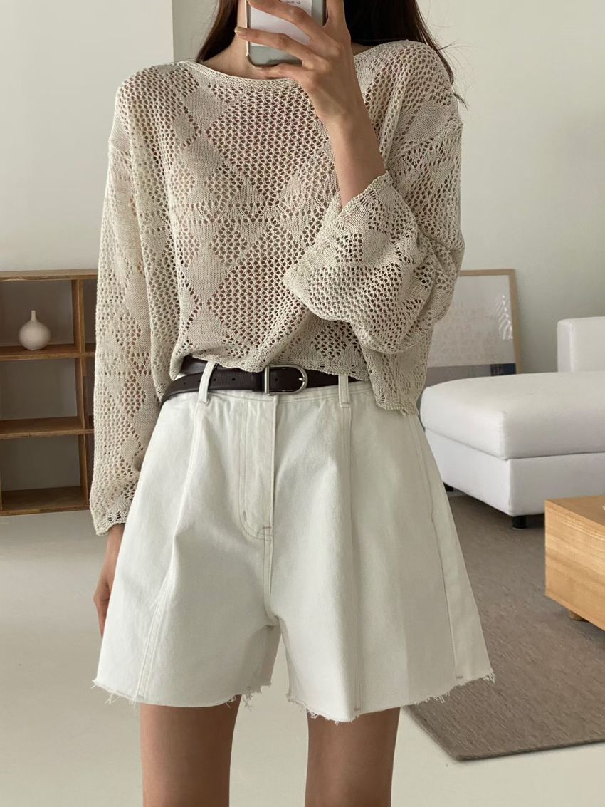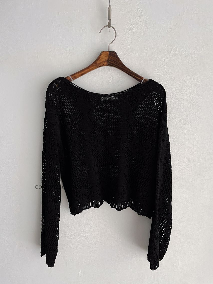 菱形鉤織透膚短罩衫(直播款)
