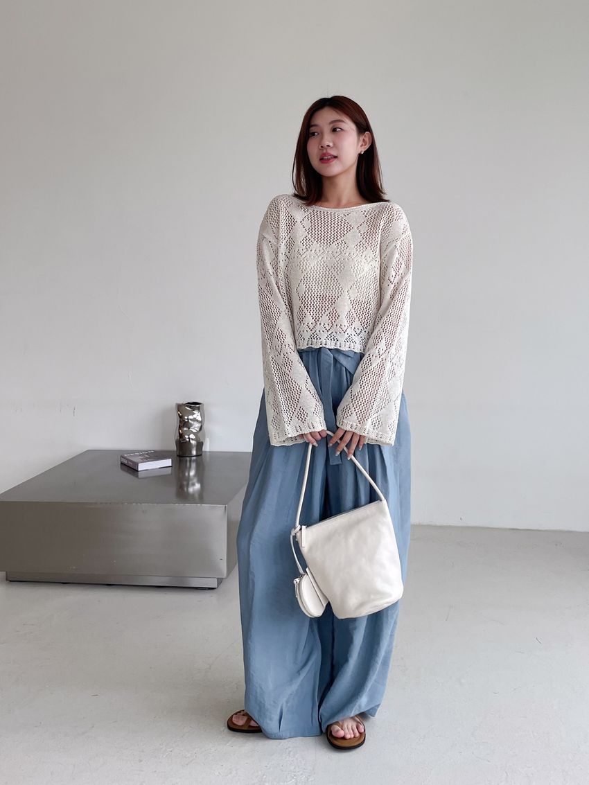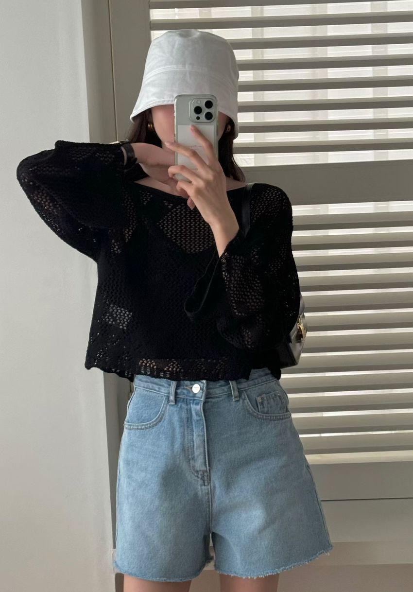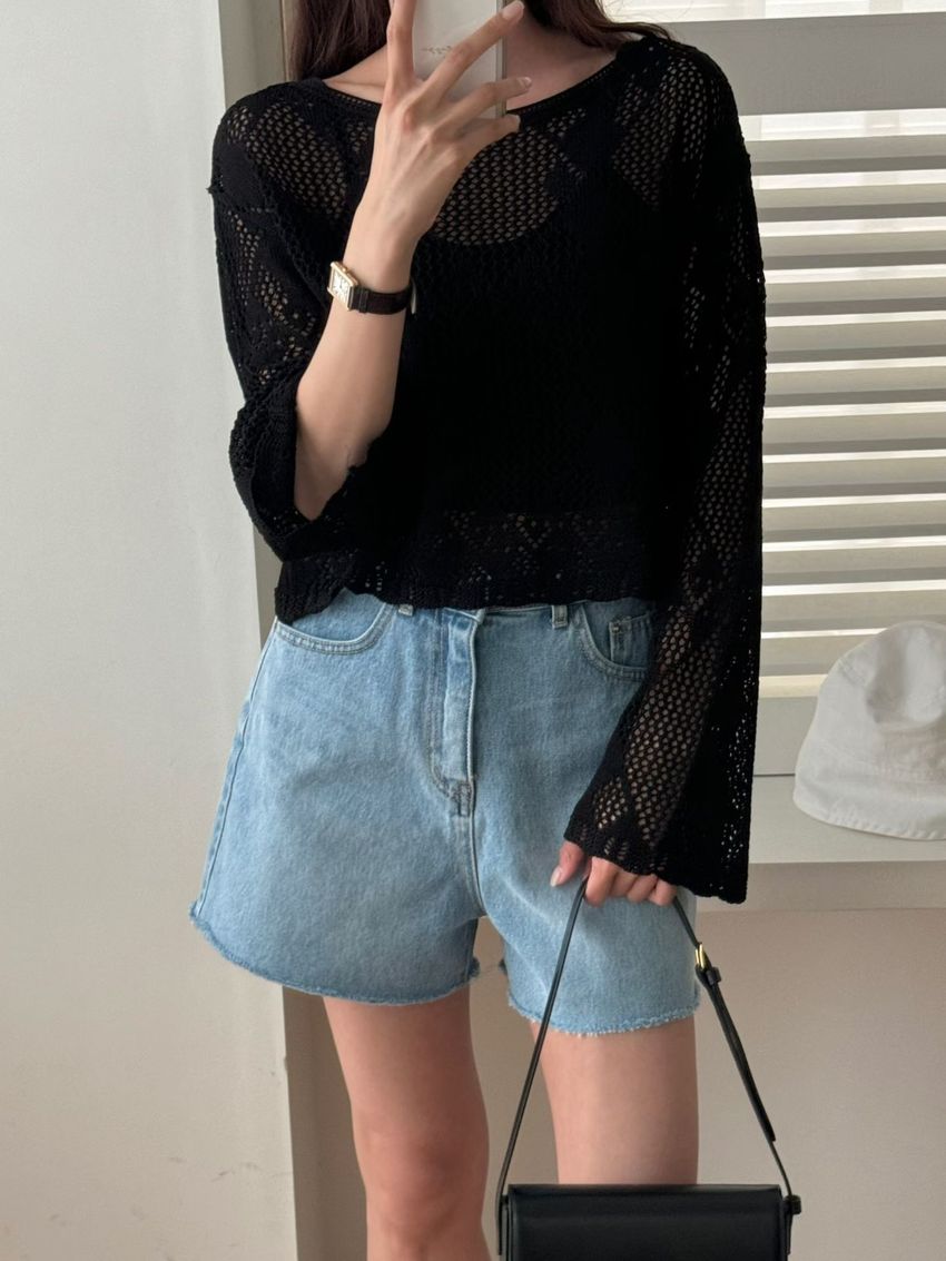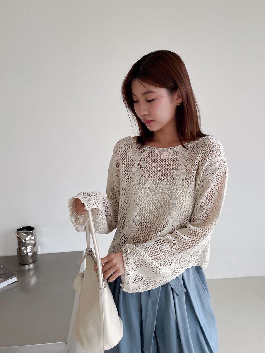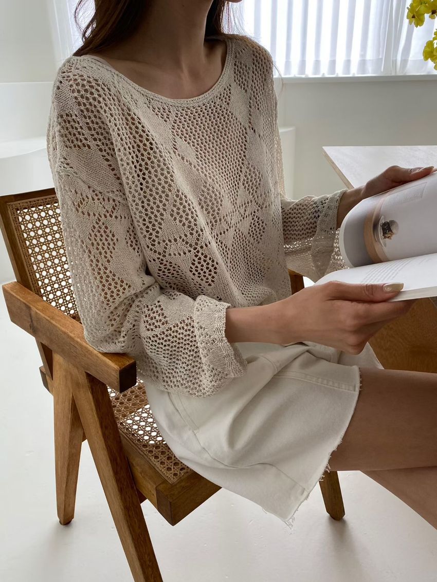 菱形鉤織透膚短罩衫(直播款)