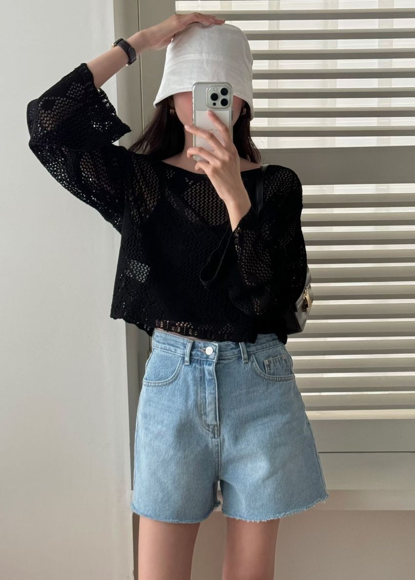 > 菱形鉤織透膚短罩衫(直播款)