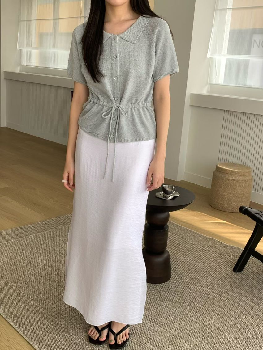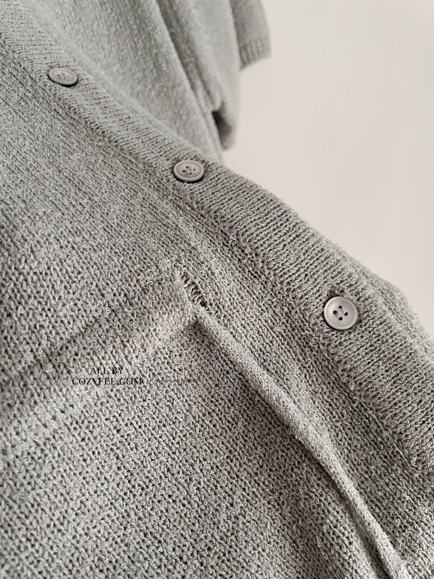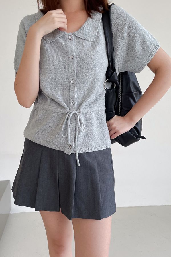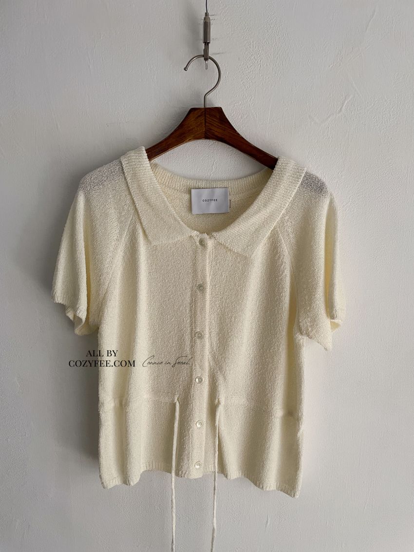 > 翻領腰抽繩開襟針織衫