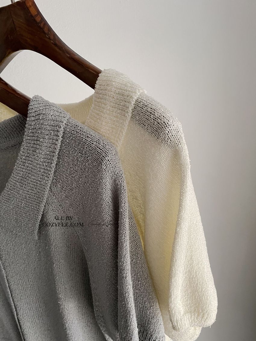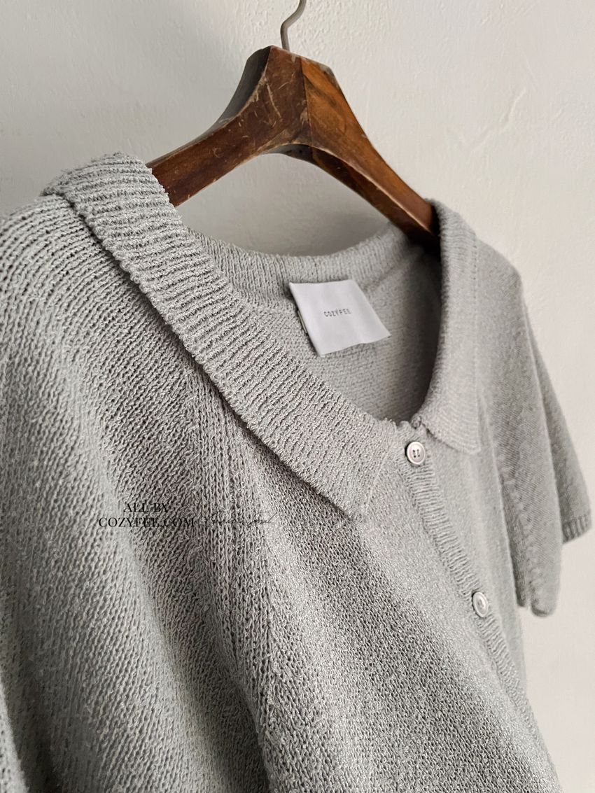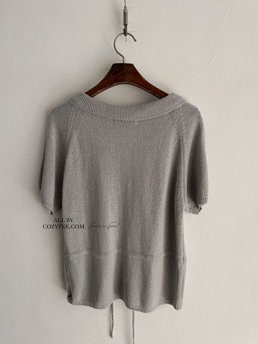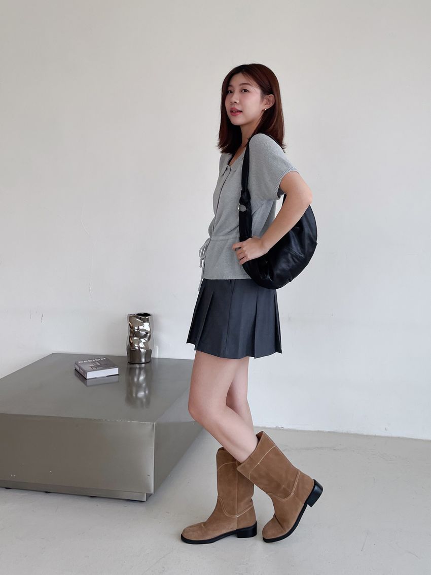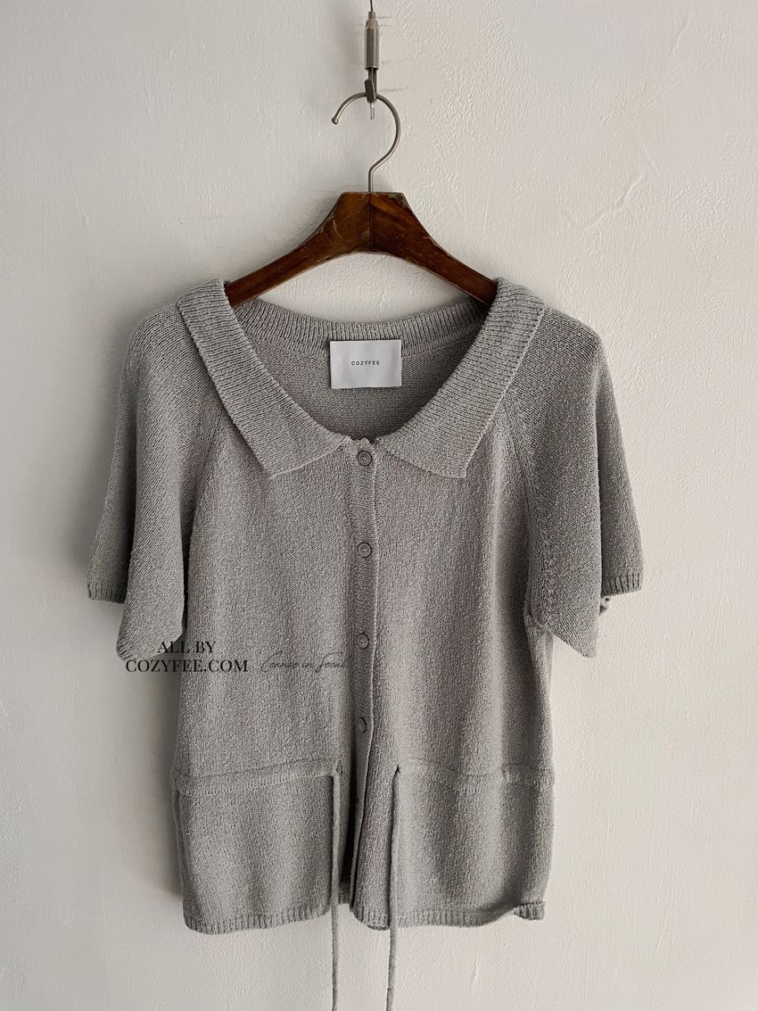 > 翻領腰抽繩開襟針織衫