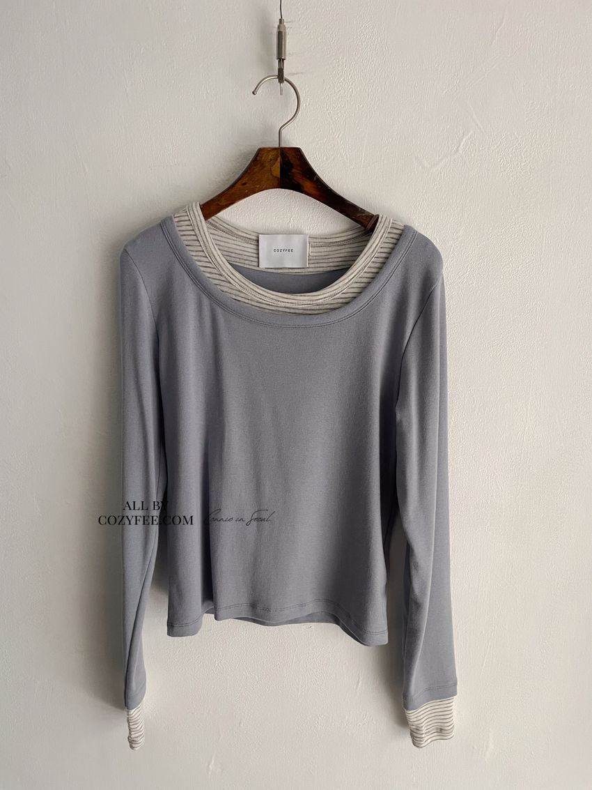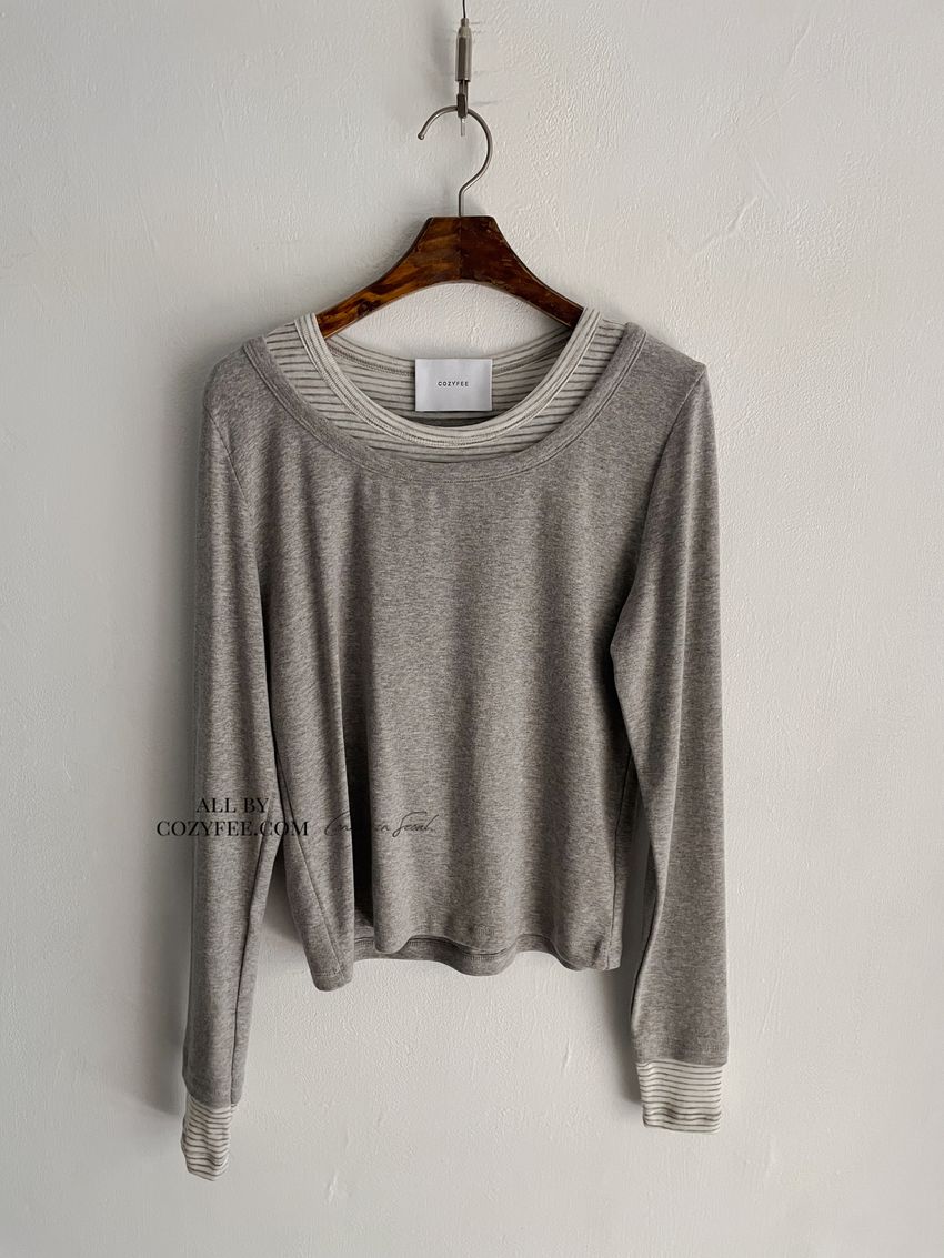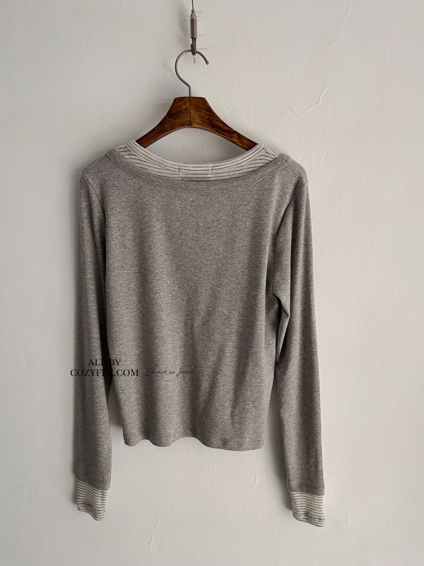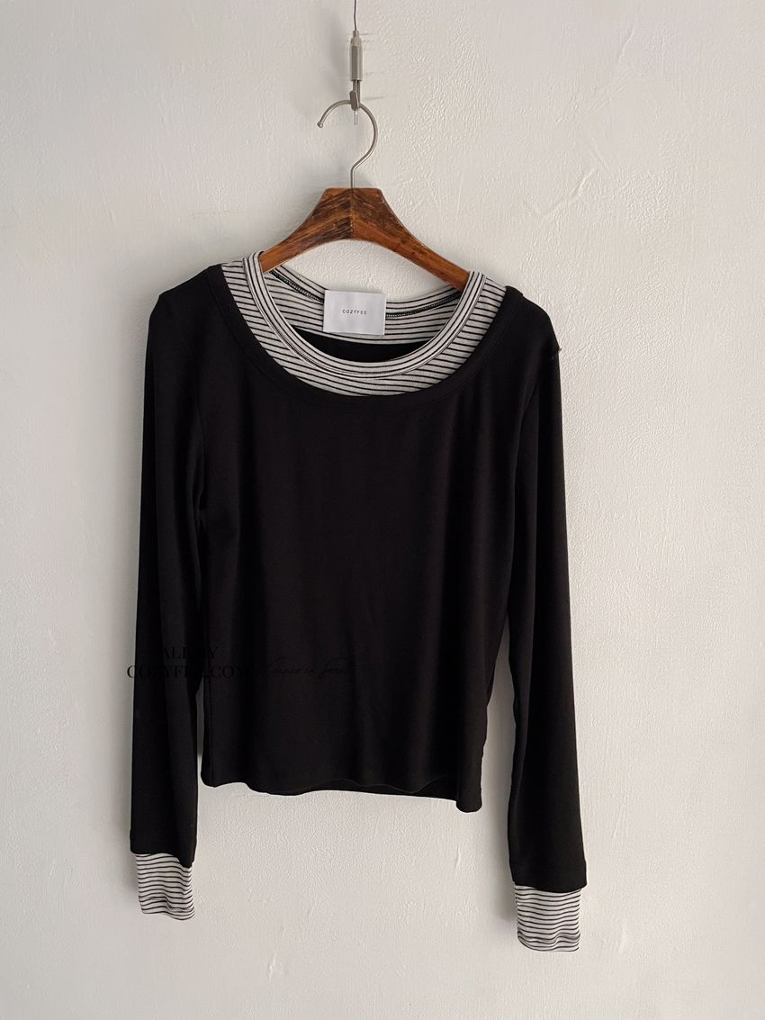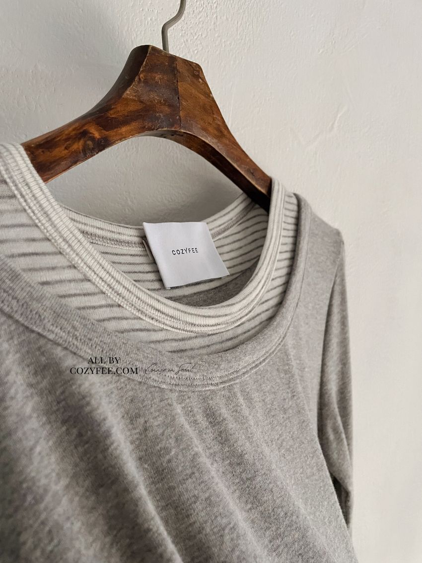 > 條紋領假兩件長T
