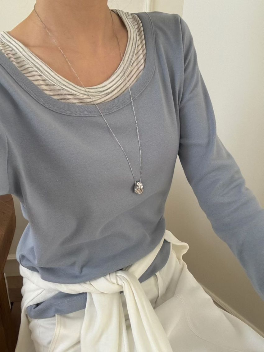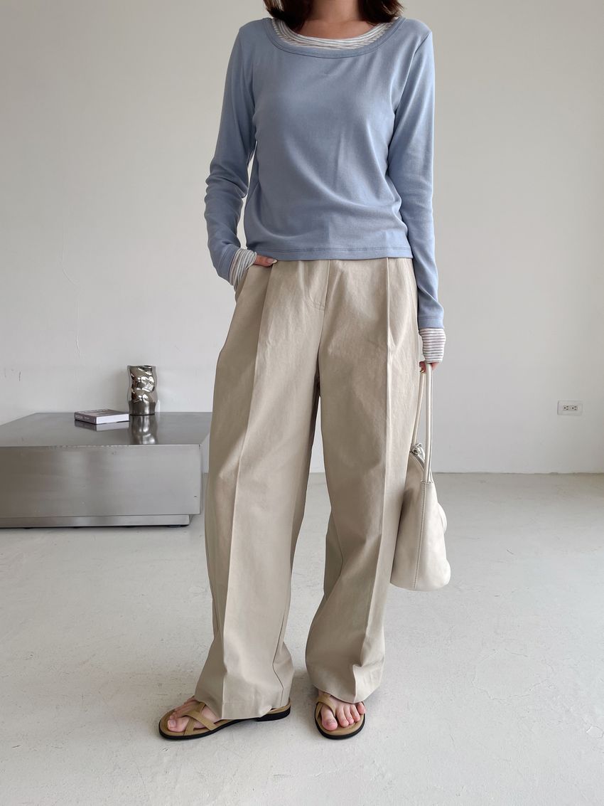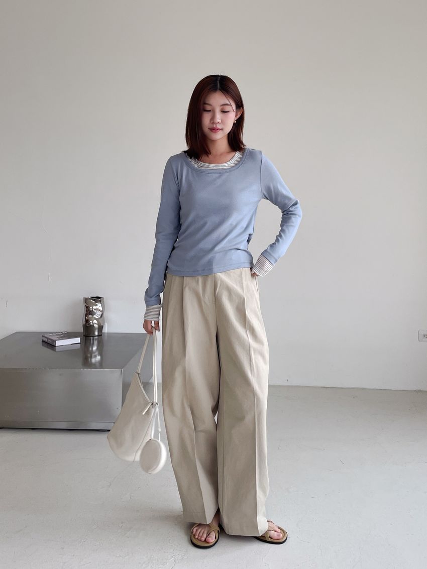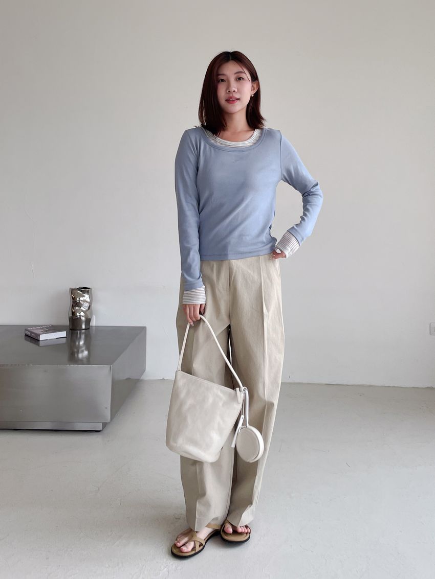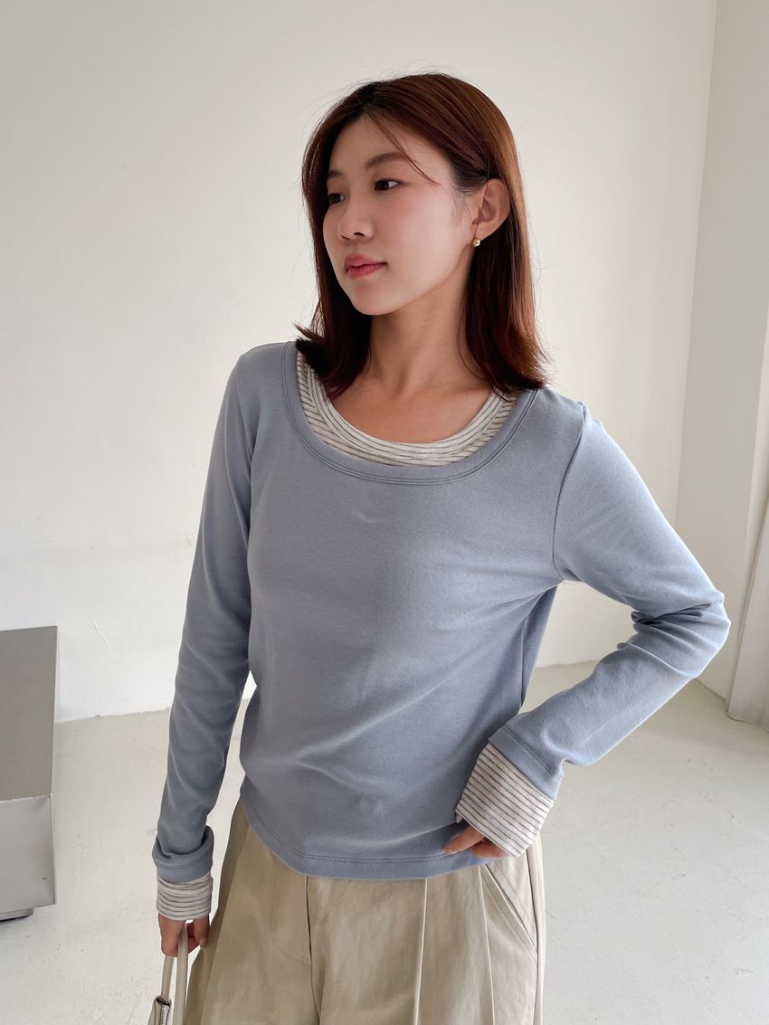 > 條紋領假兩件長T