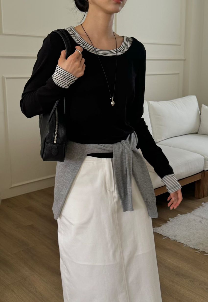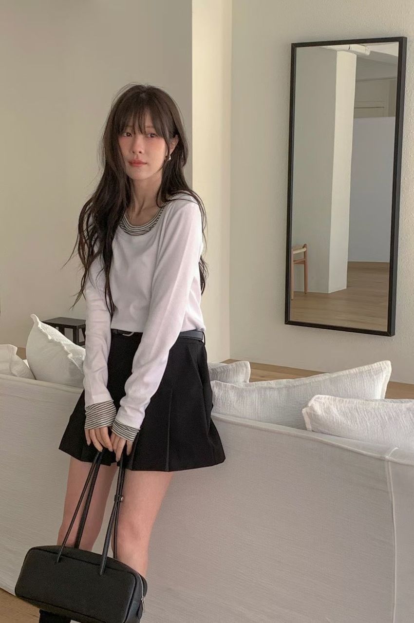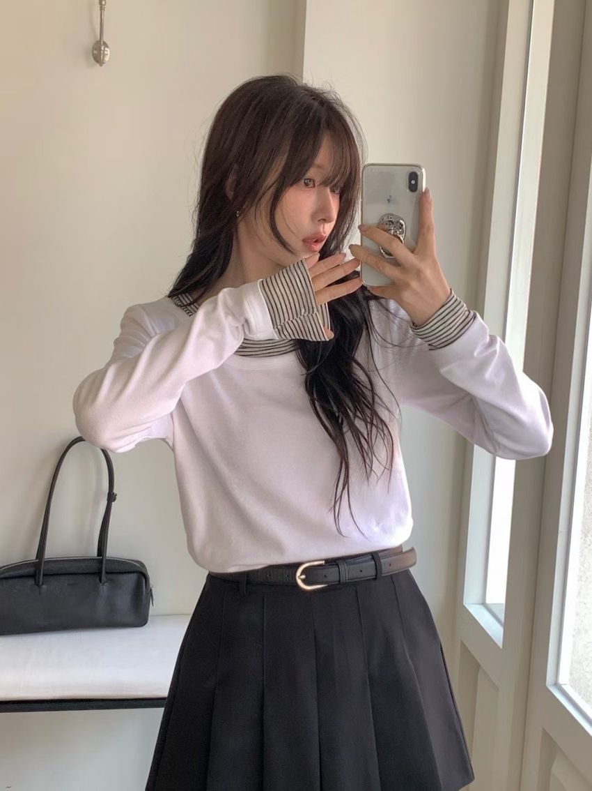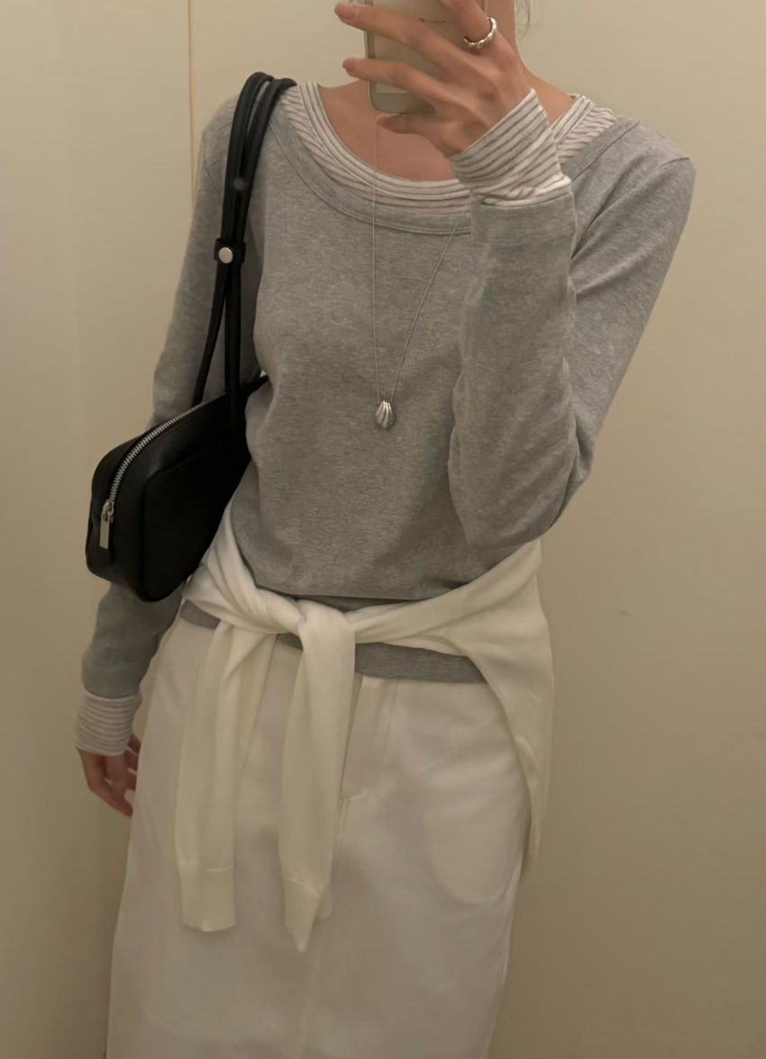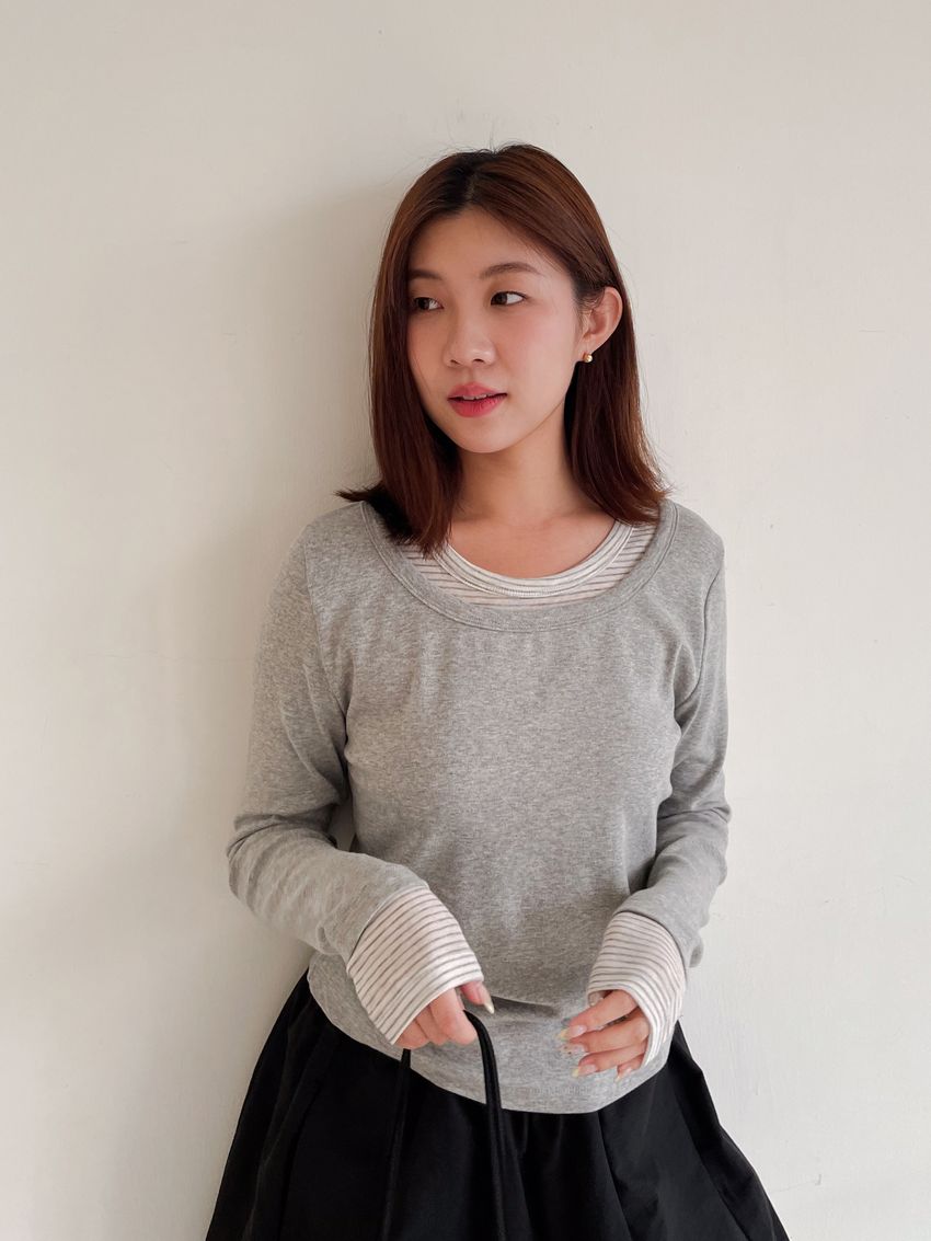 條紋領假兩件長T