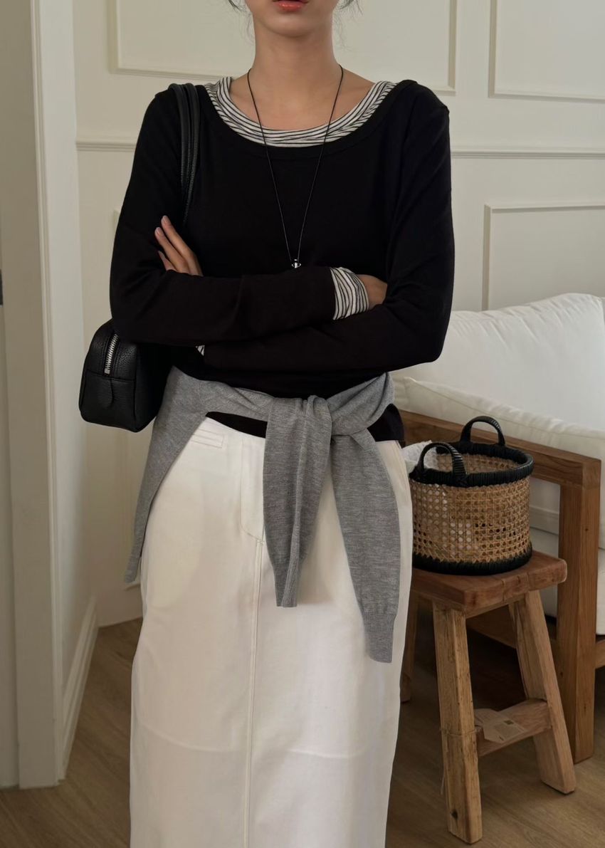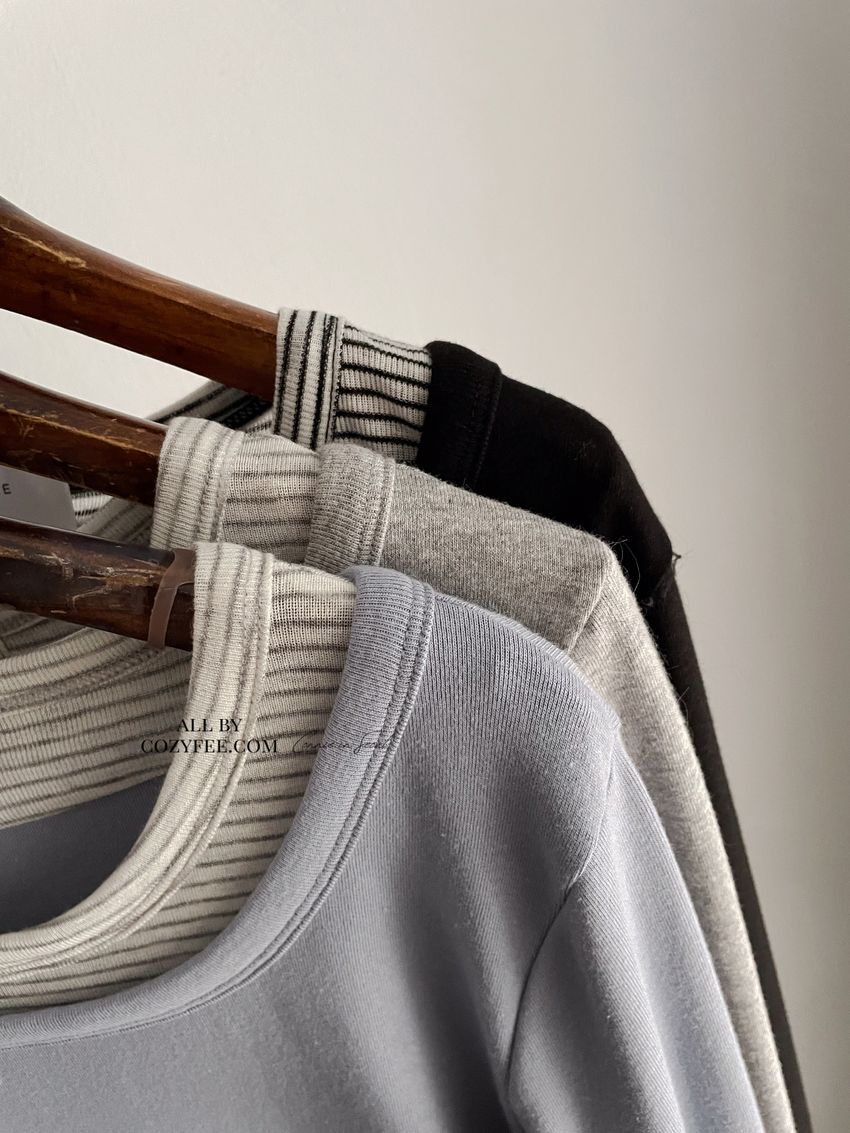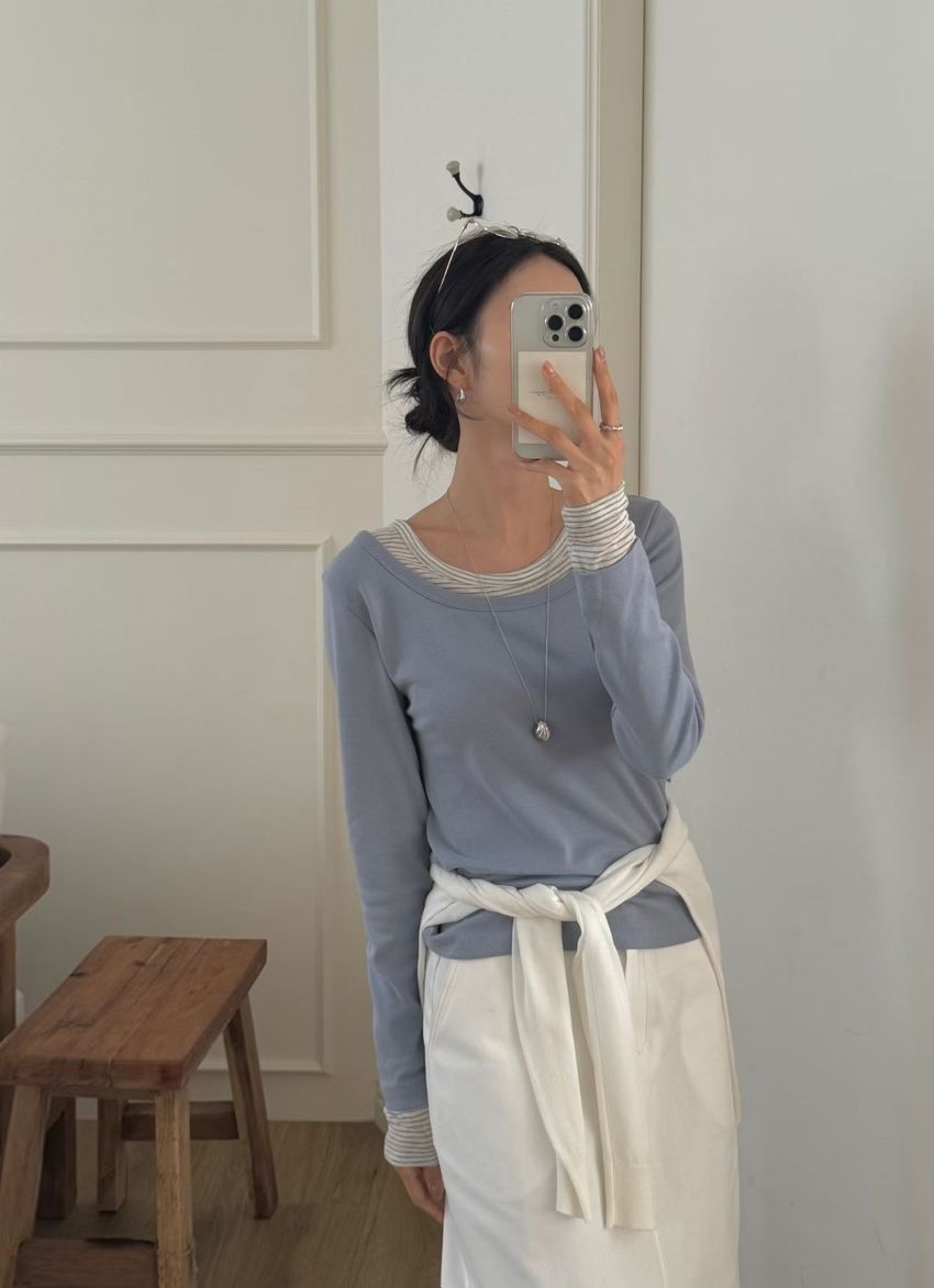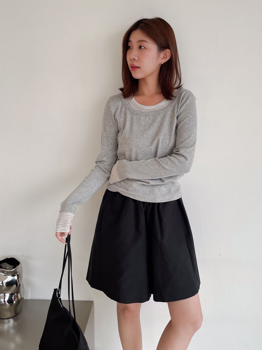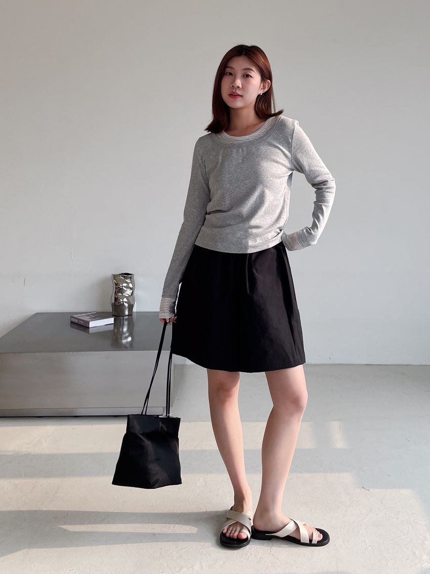 條紋領假兩件長T