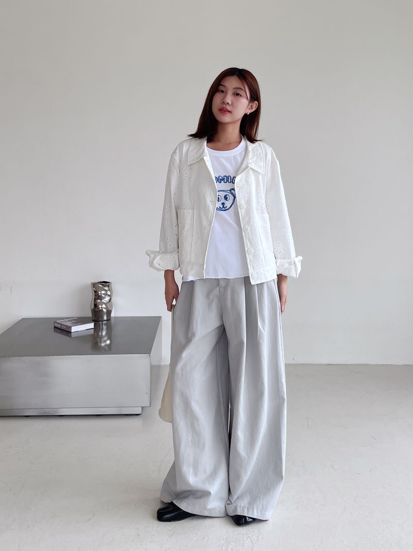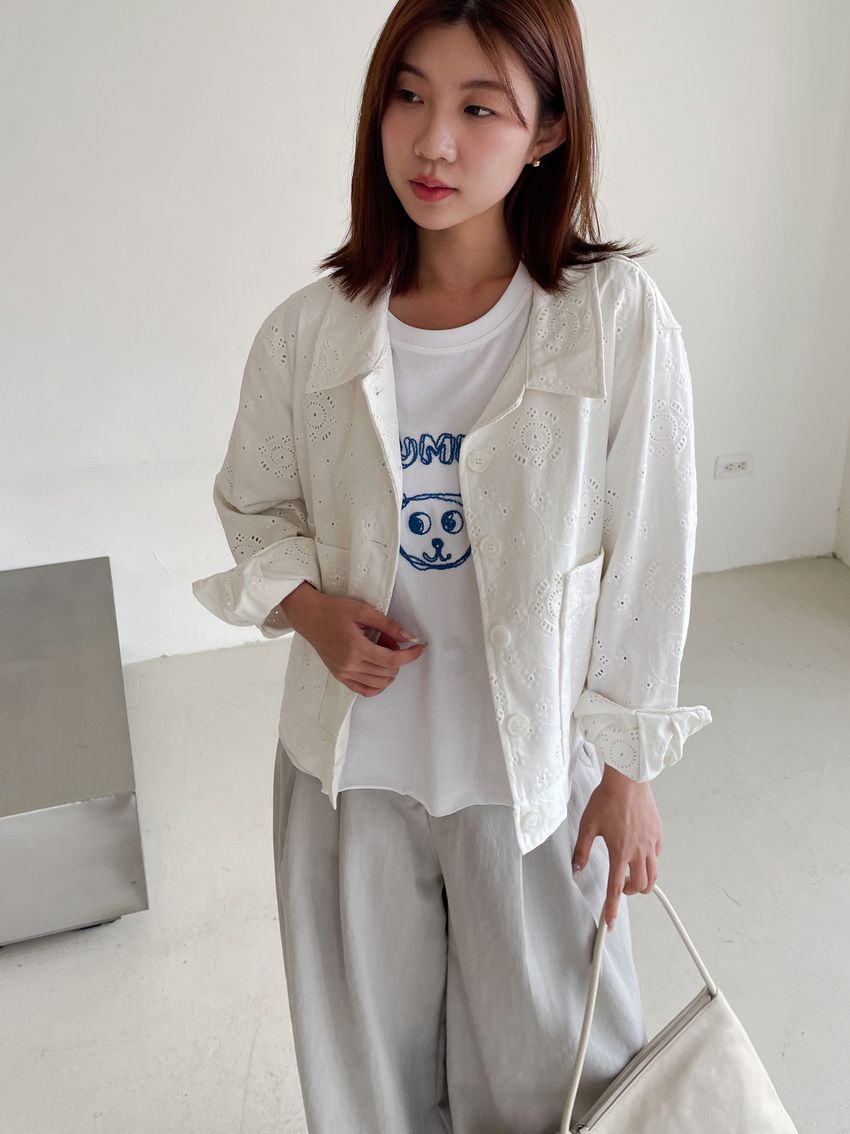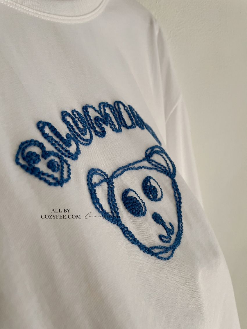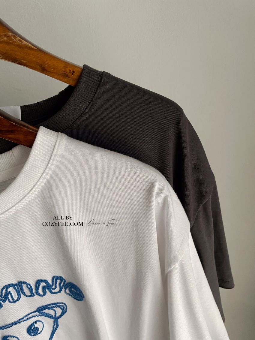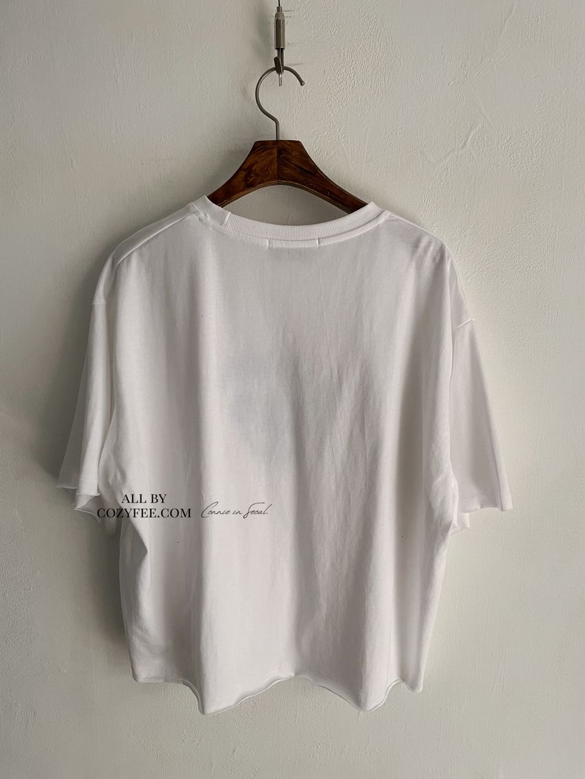 > 小熊刺繡不收邊短T