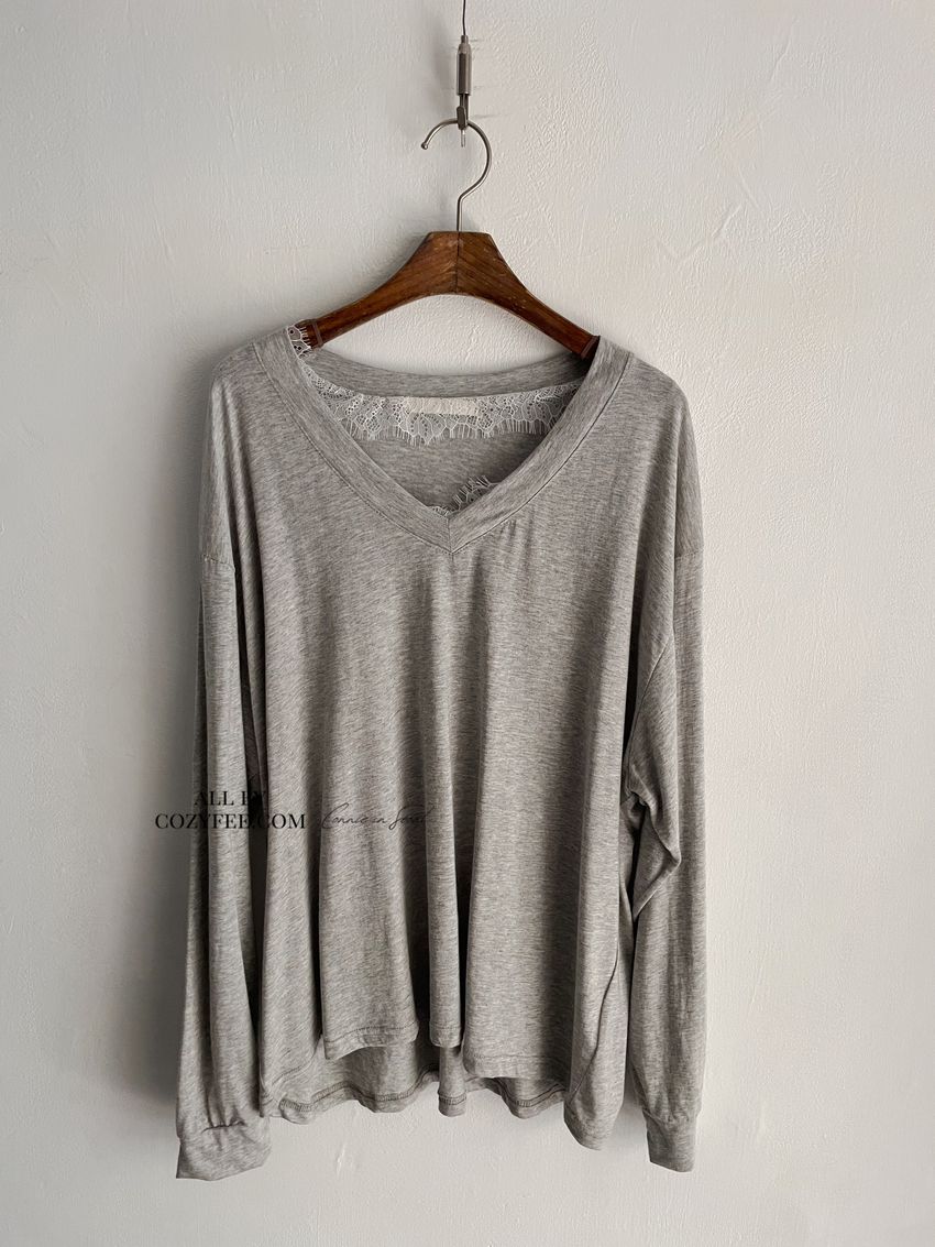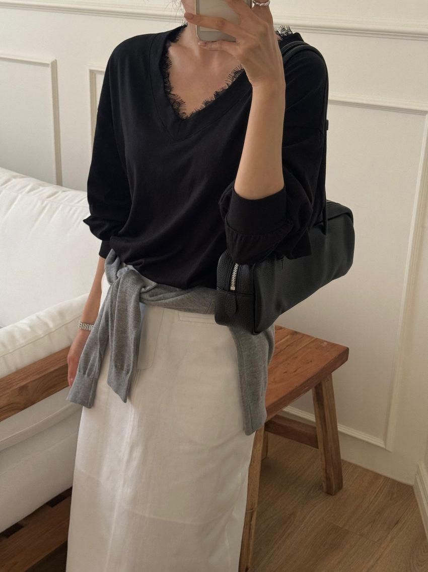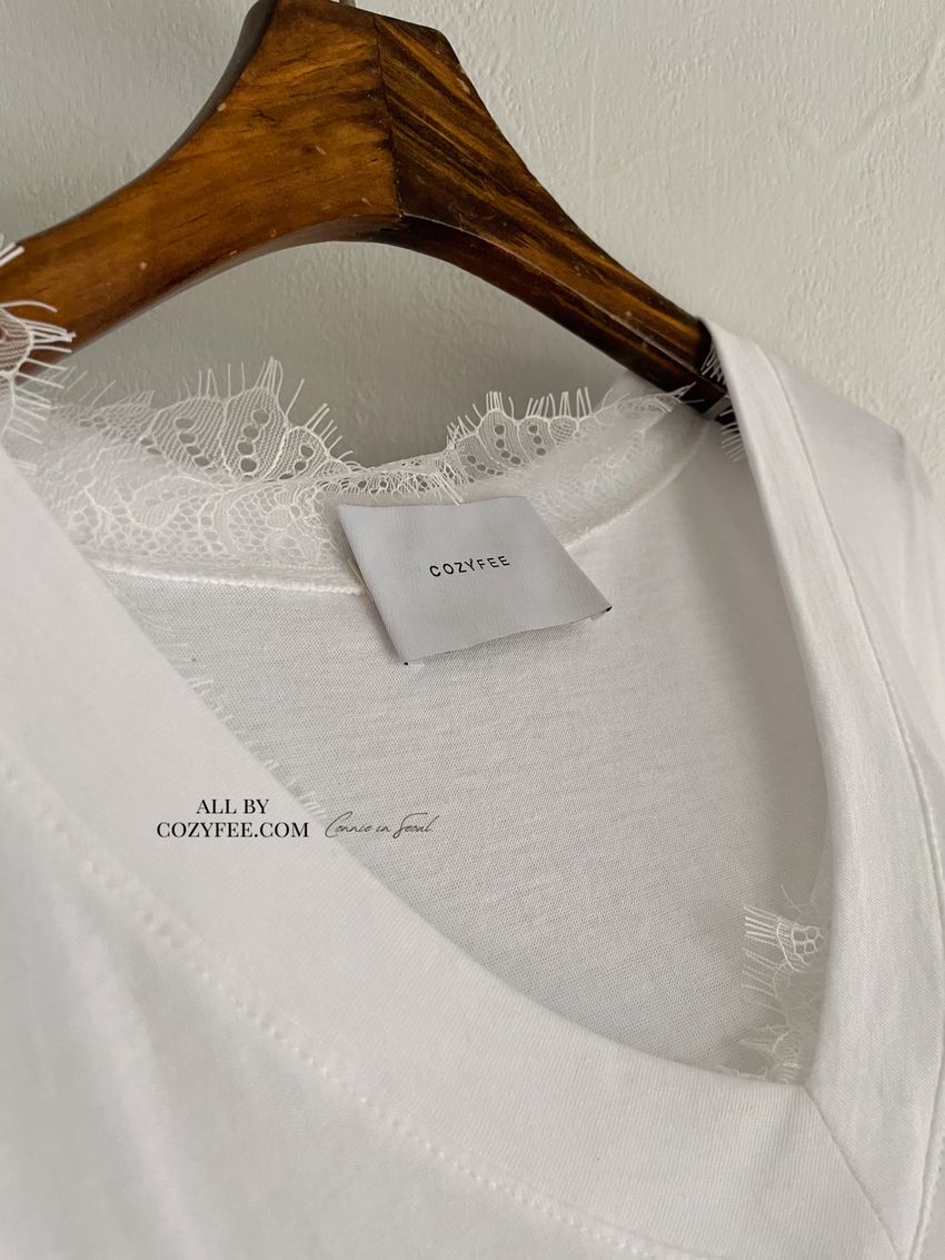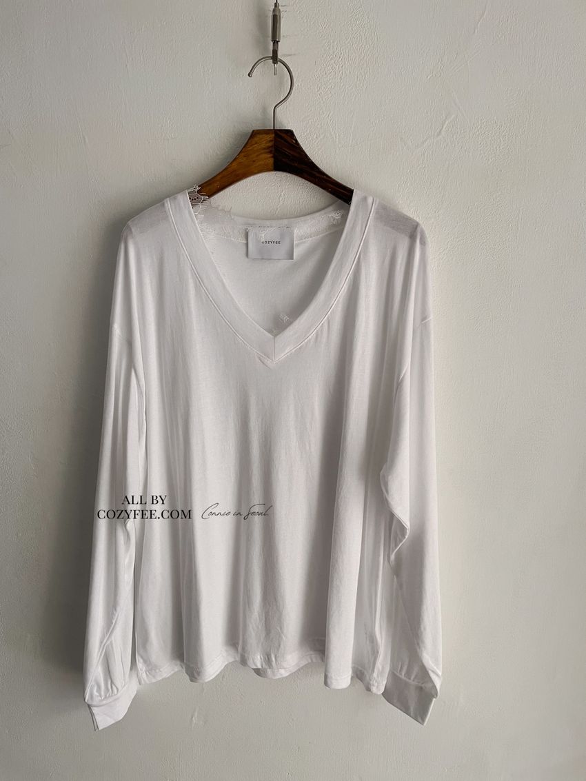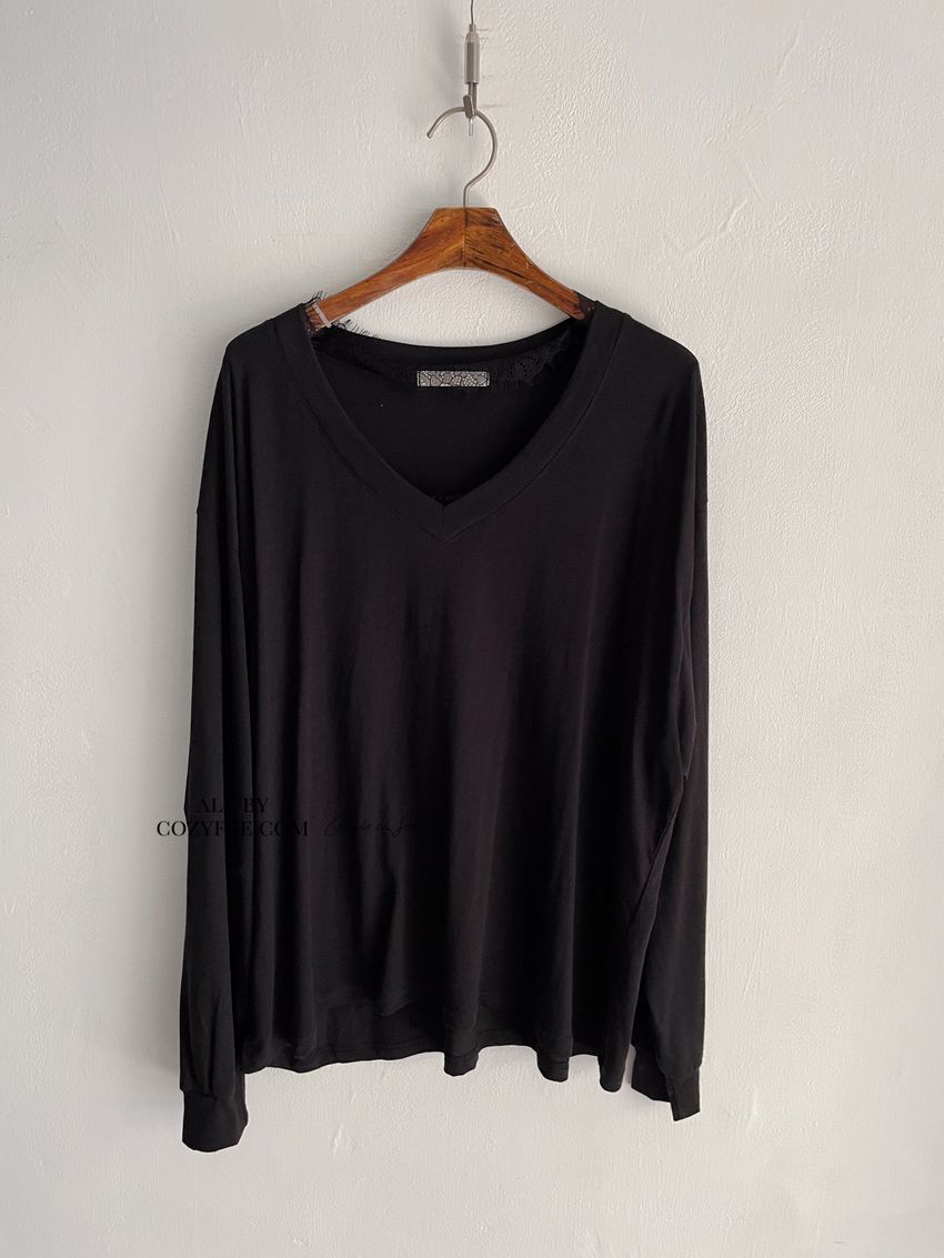 > Connie推薦款!蕾絲V領輕薄長T(直播款)