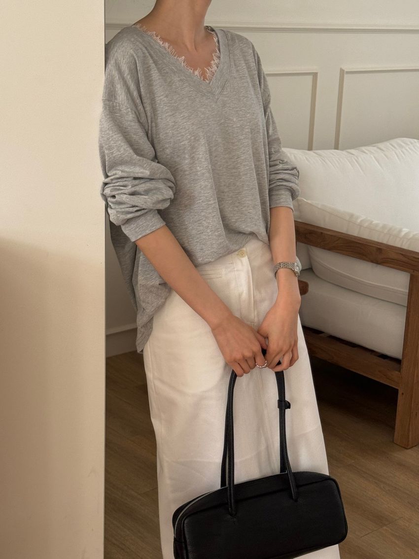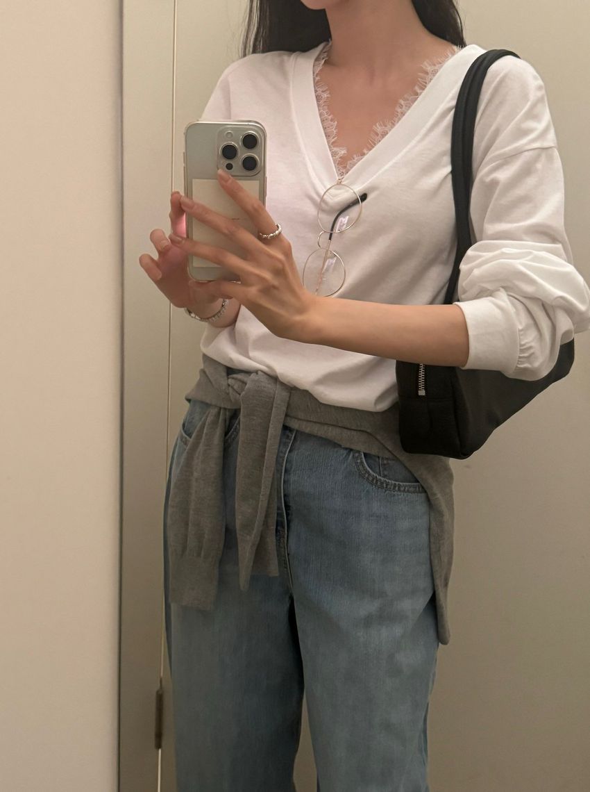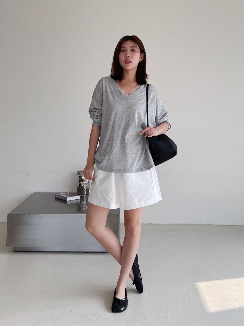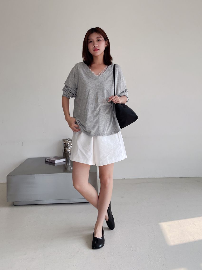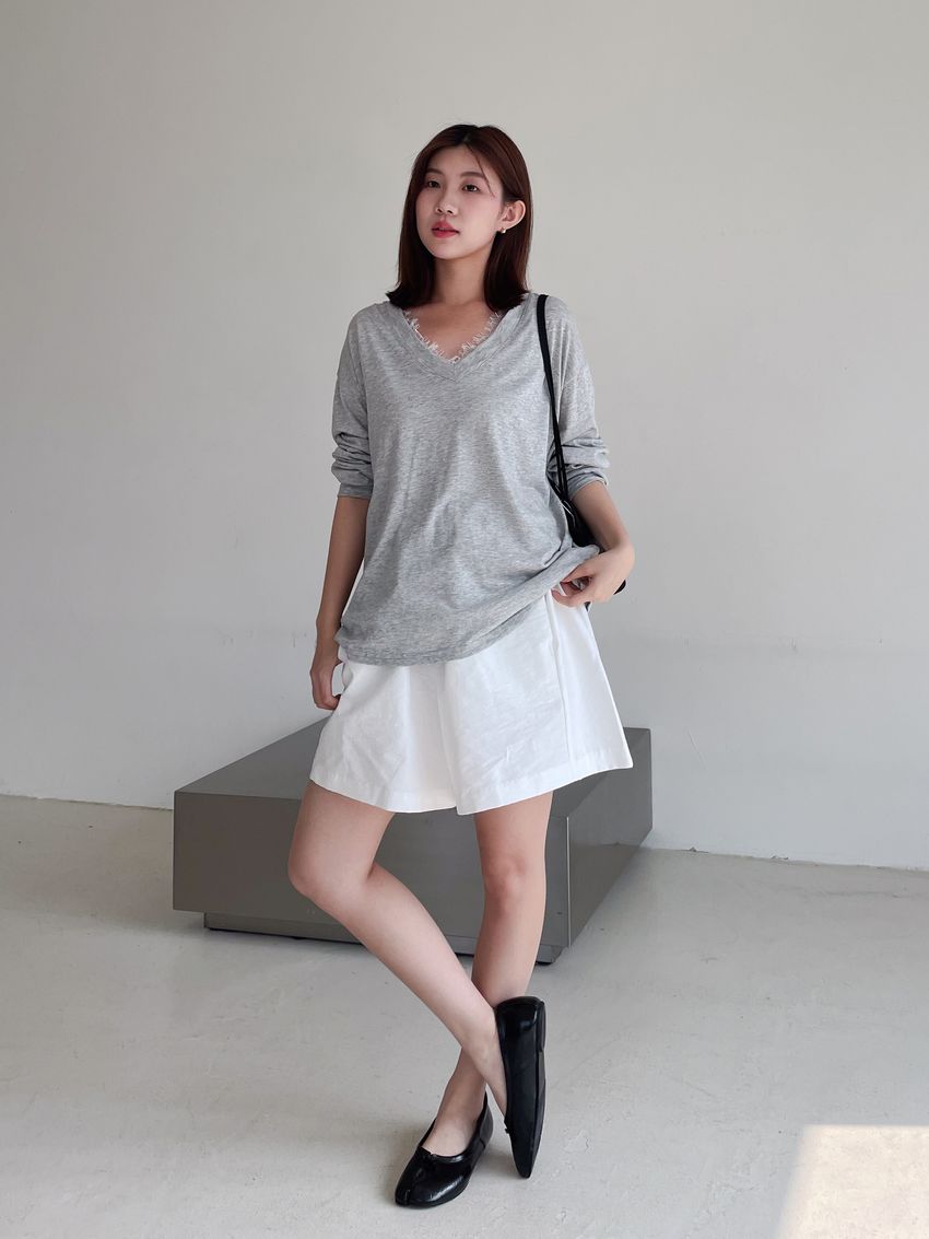 Connie推薦款!蕾絲V領輕薄長T(直播款)