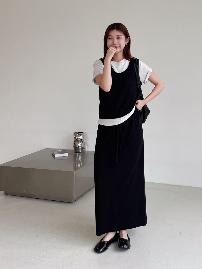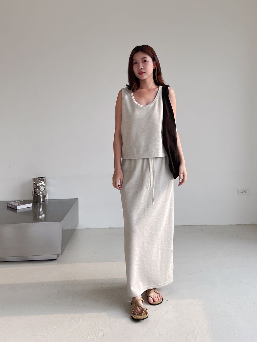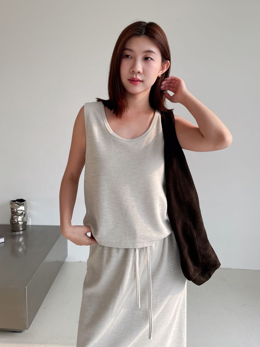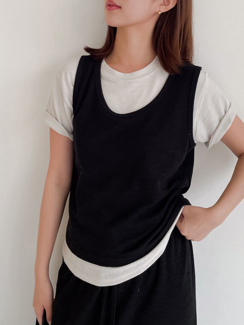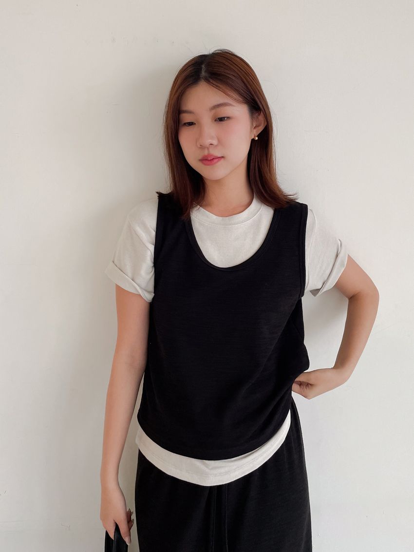 > 竹節紋U領背心(直播款)