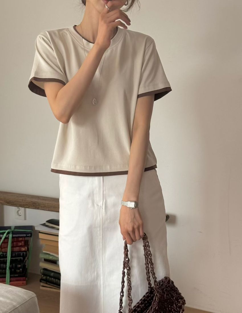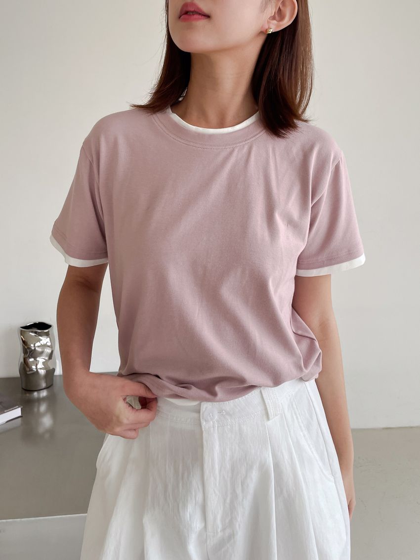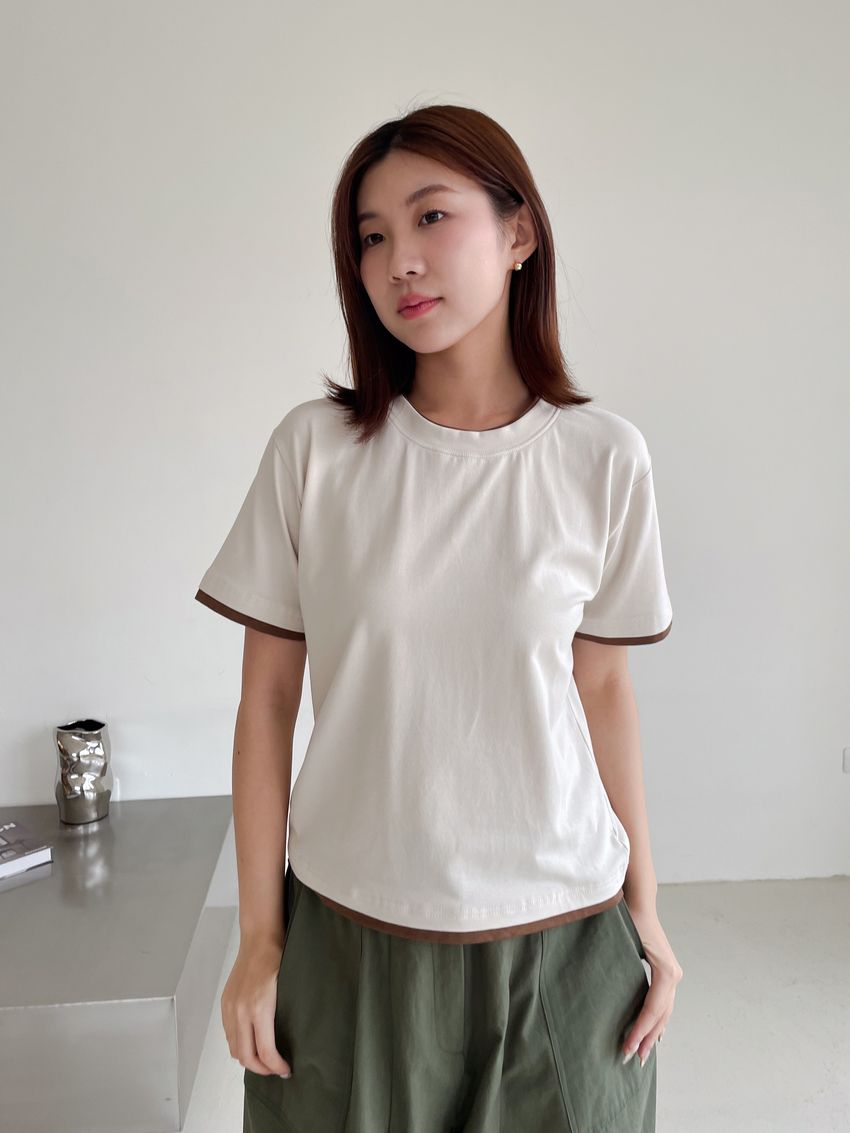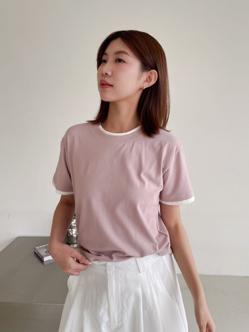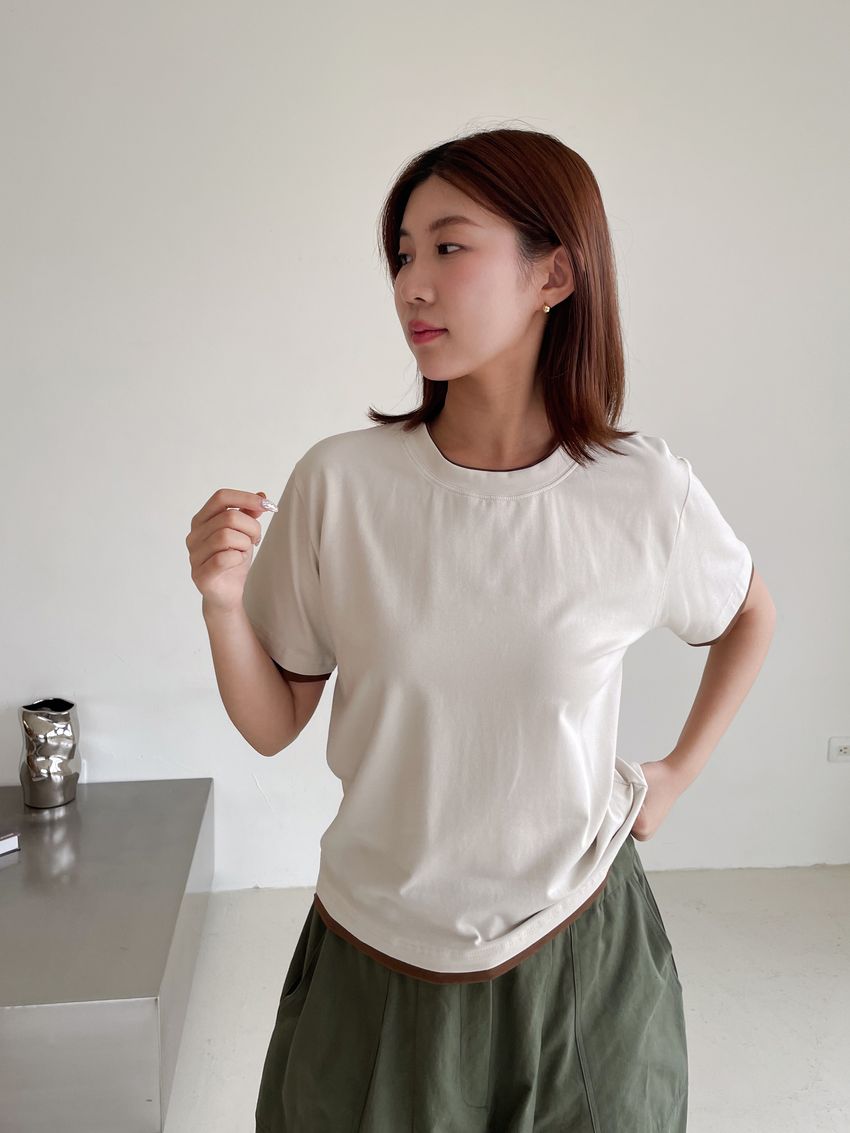 > 跳色滾邊素色短T