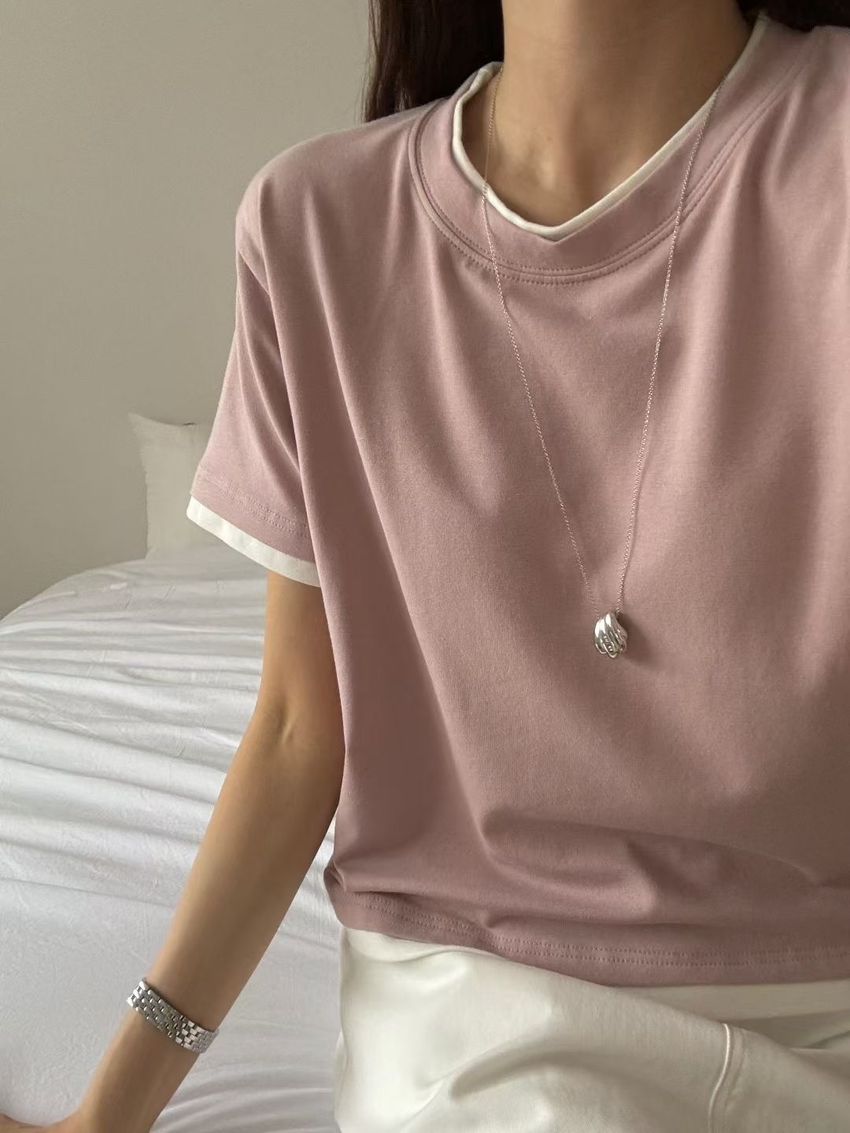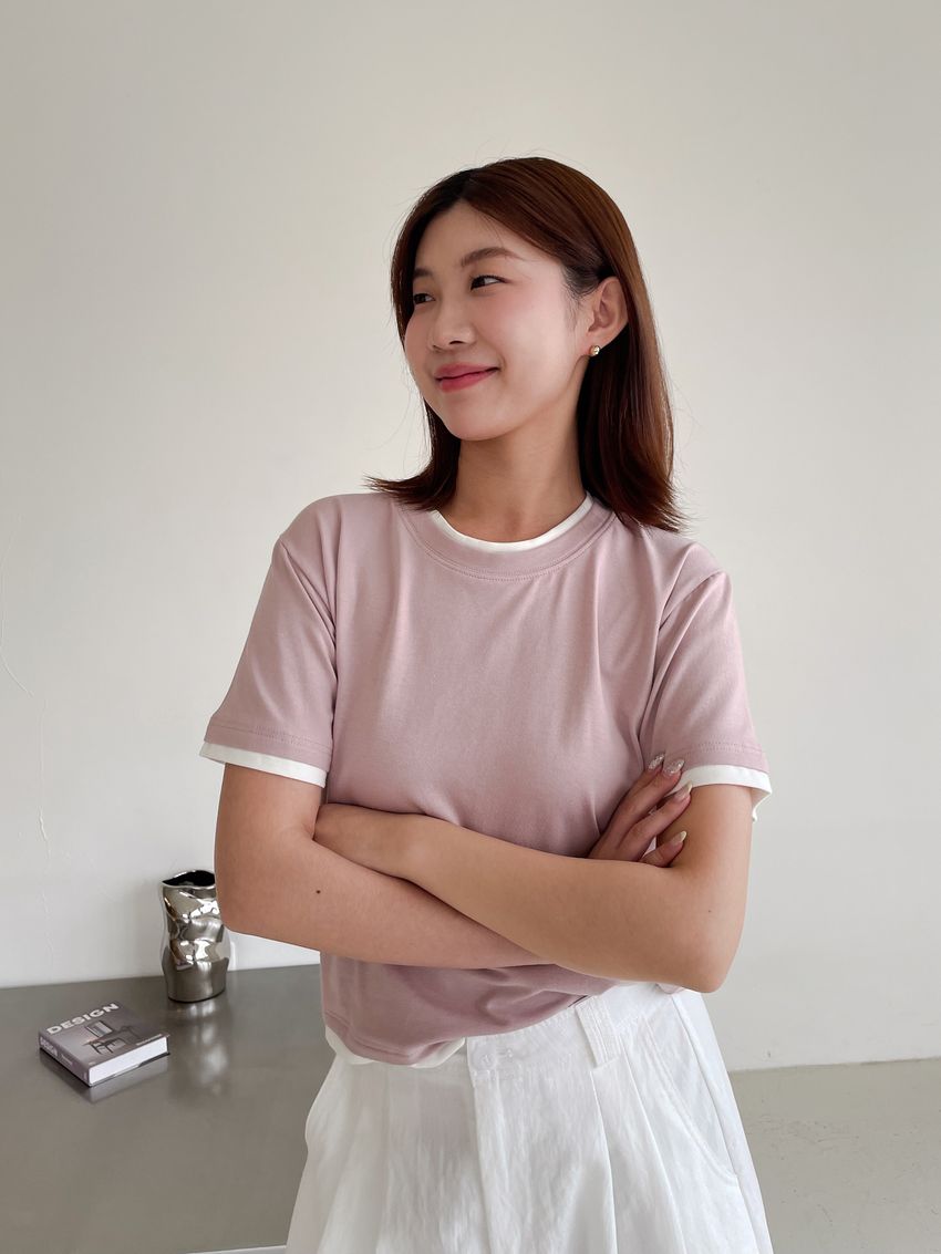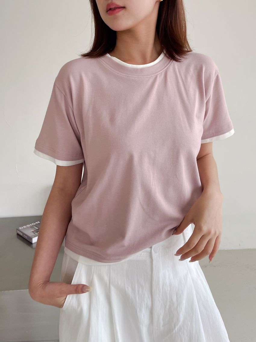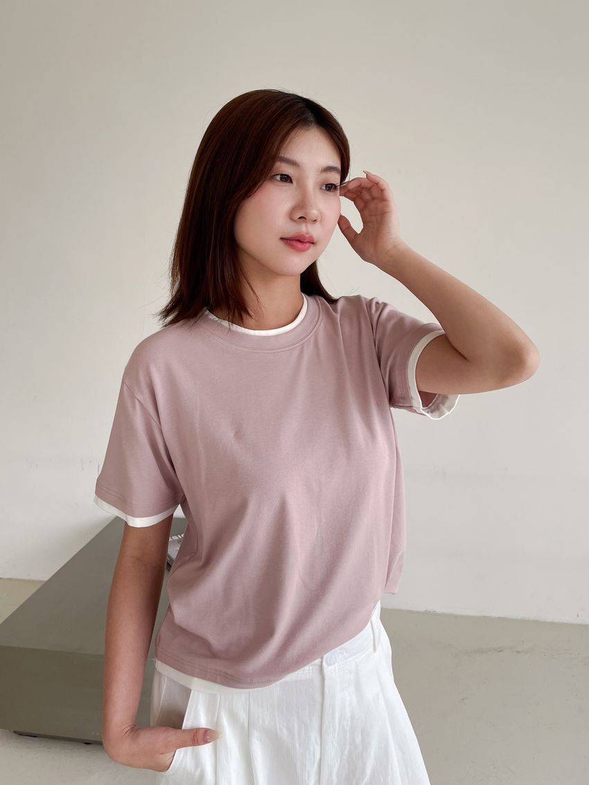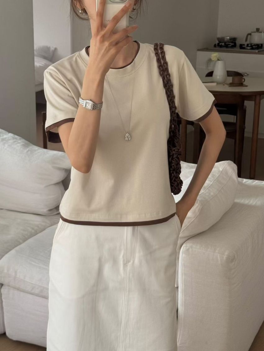 > 跳色滾邊素色短T