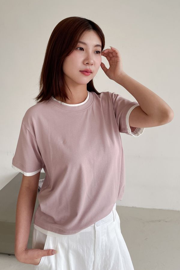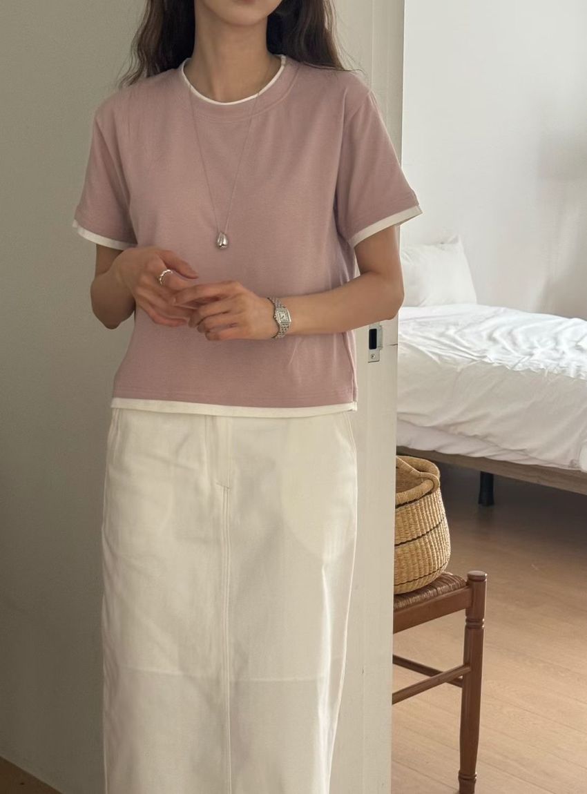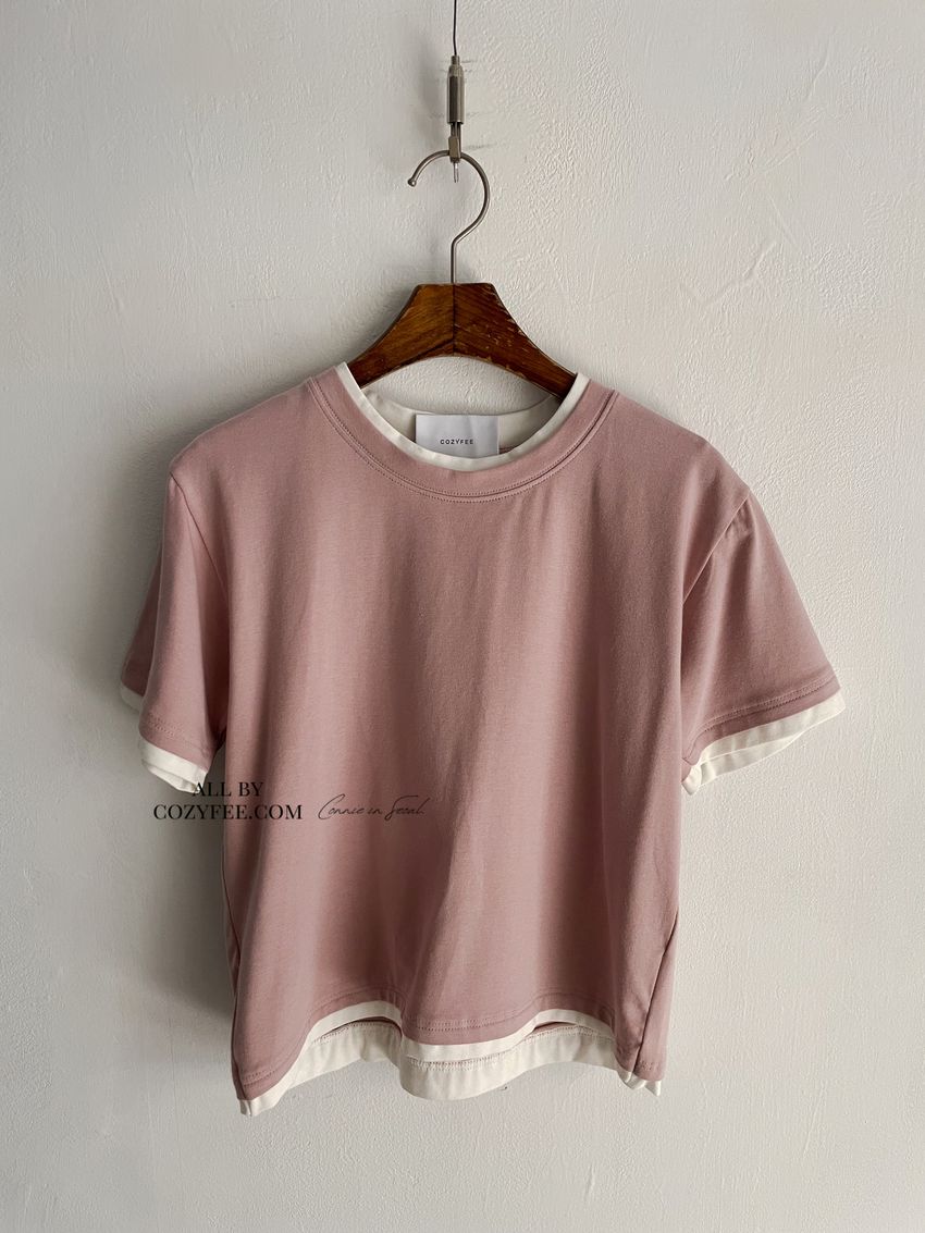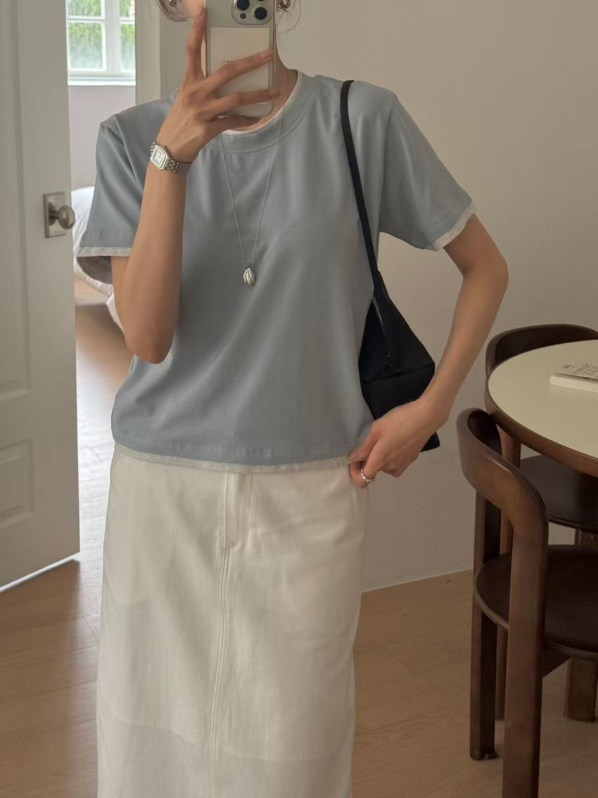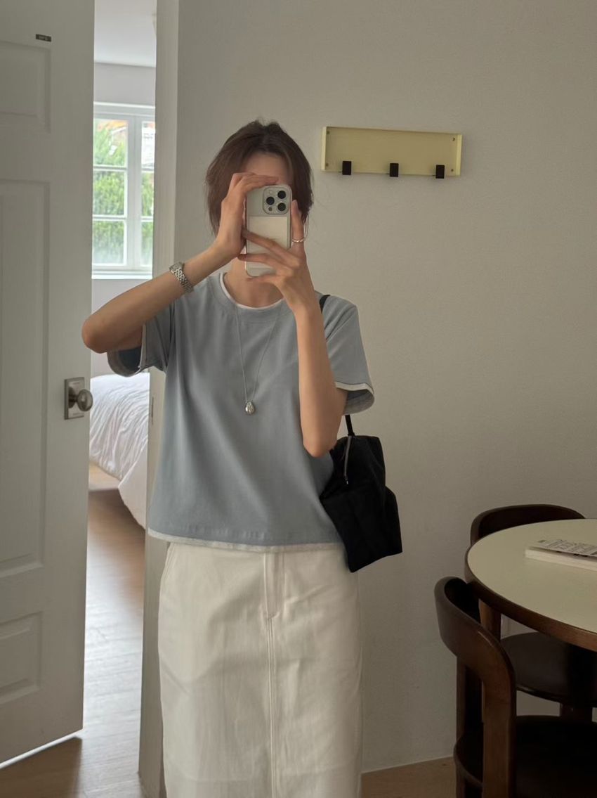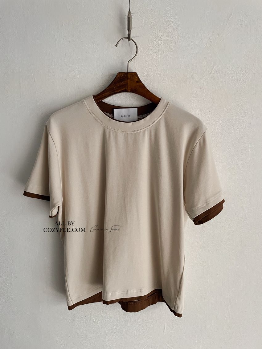 > 跳色滾邊素色短T