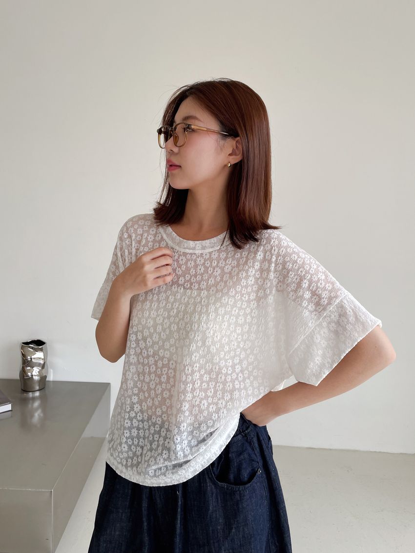 > Connie推薦款!小花朵柔軟紗料T(直播款)