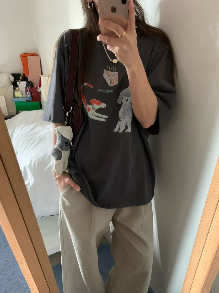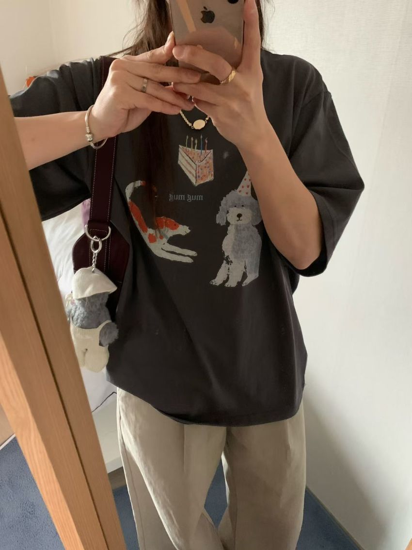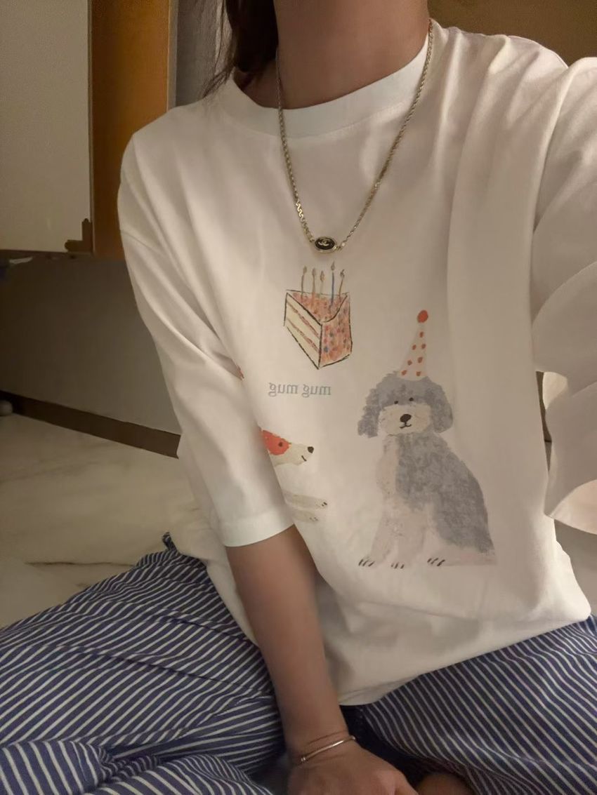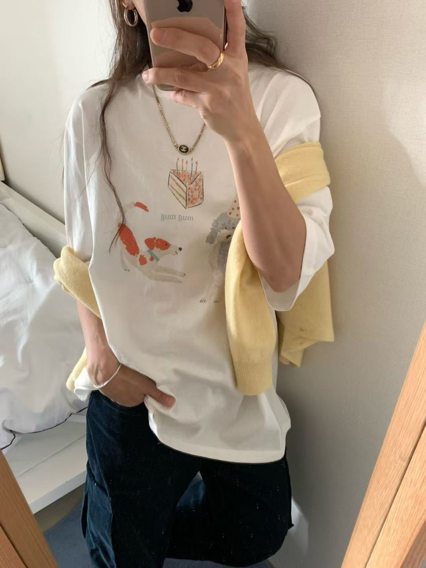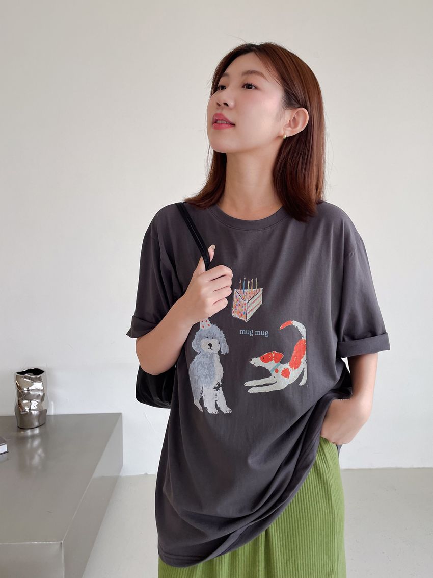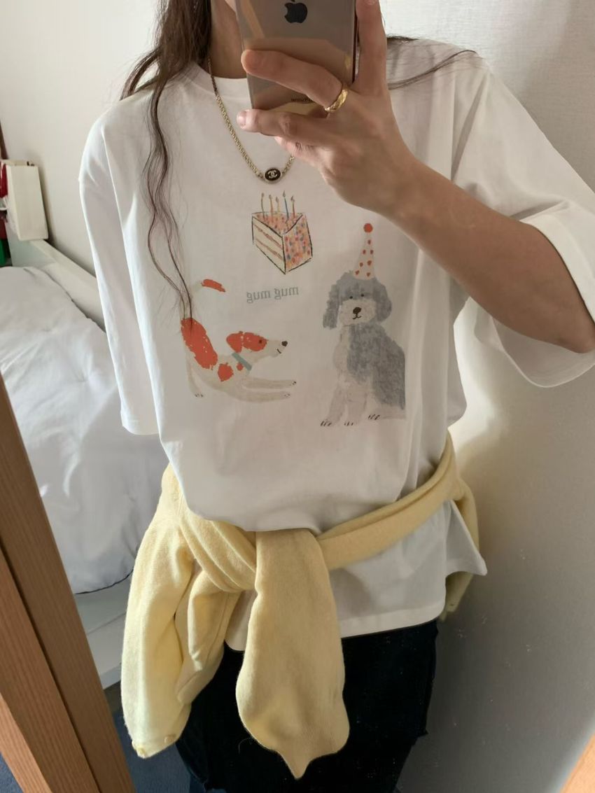 Connie推薦款!生日小狗長版短T(直播款)