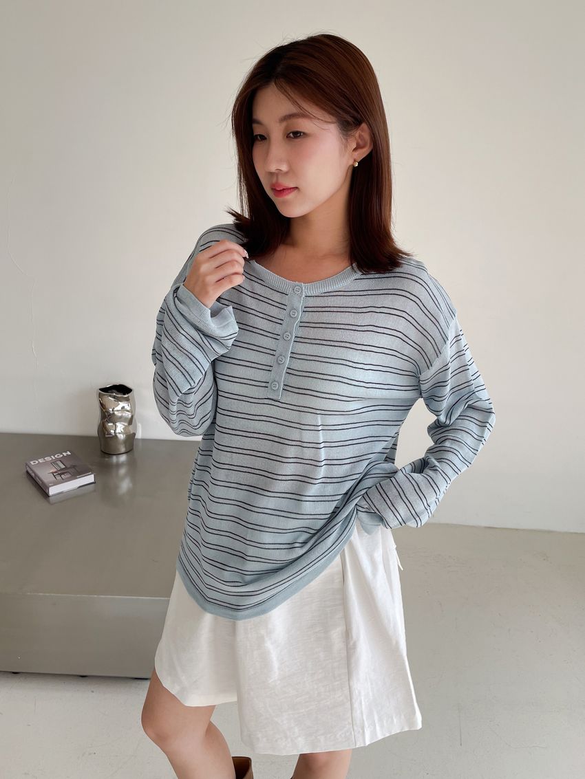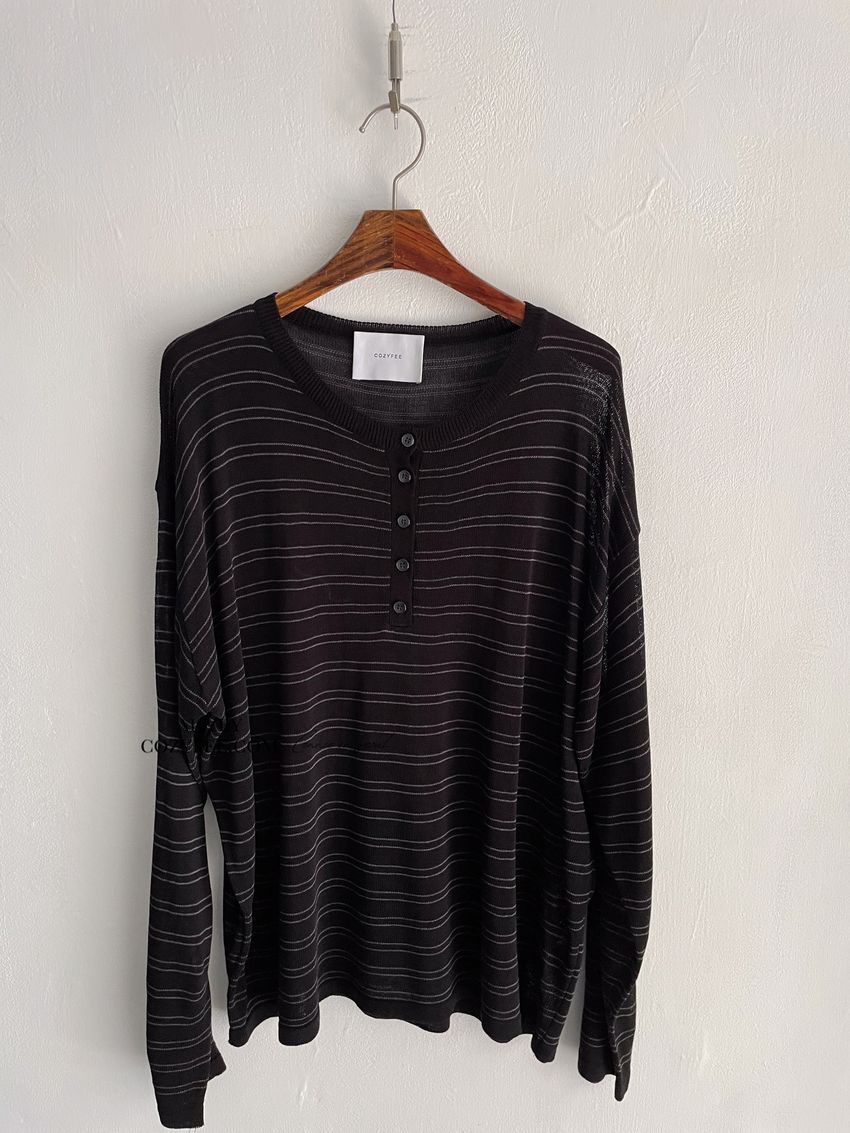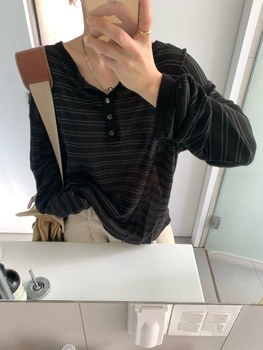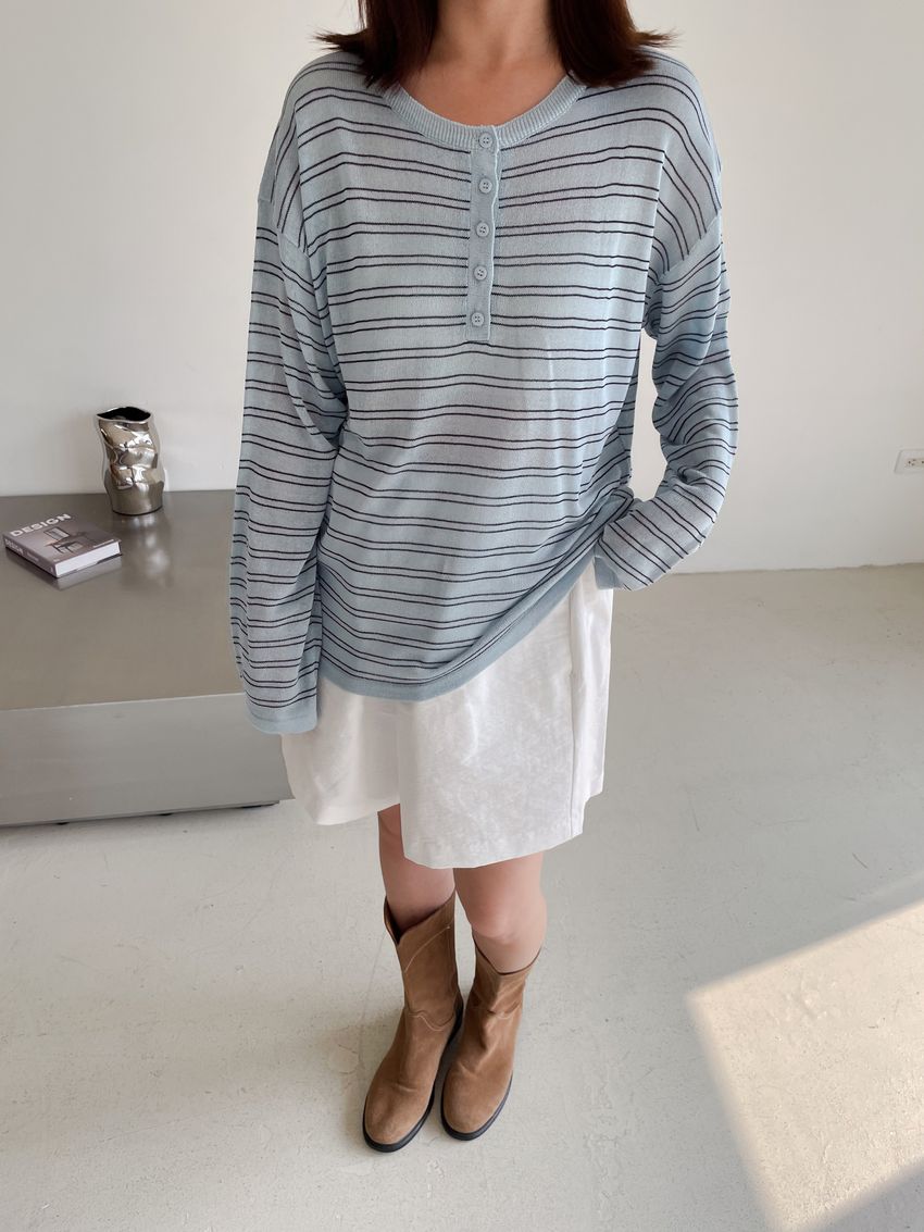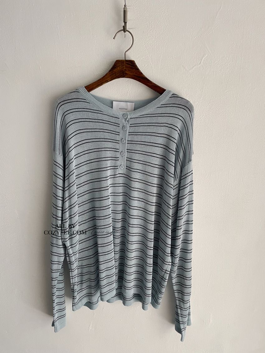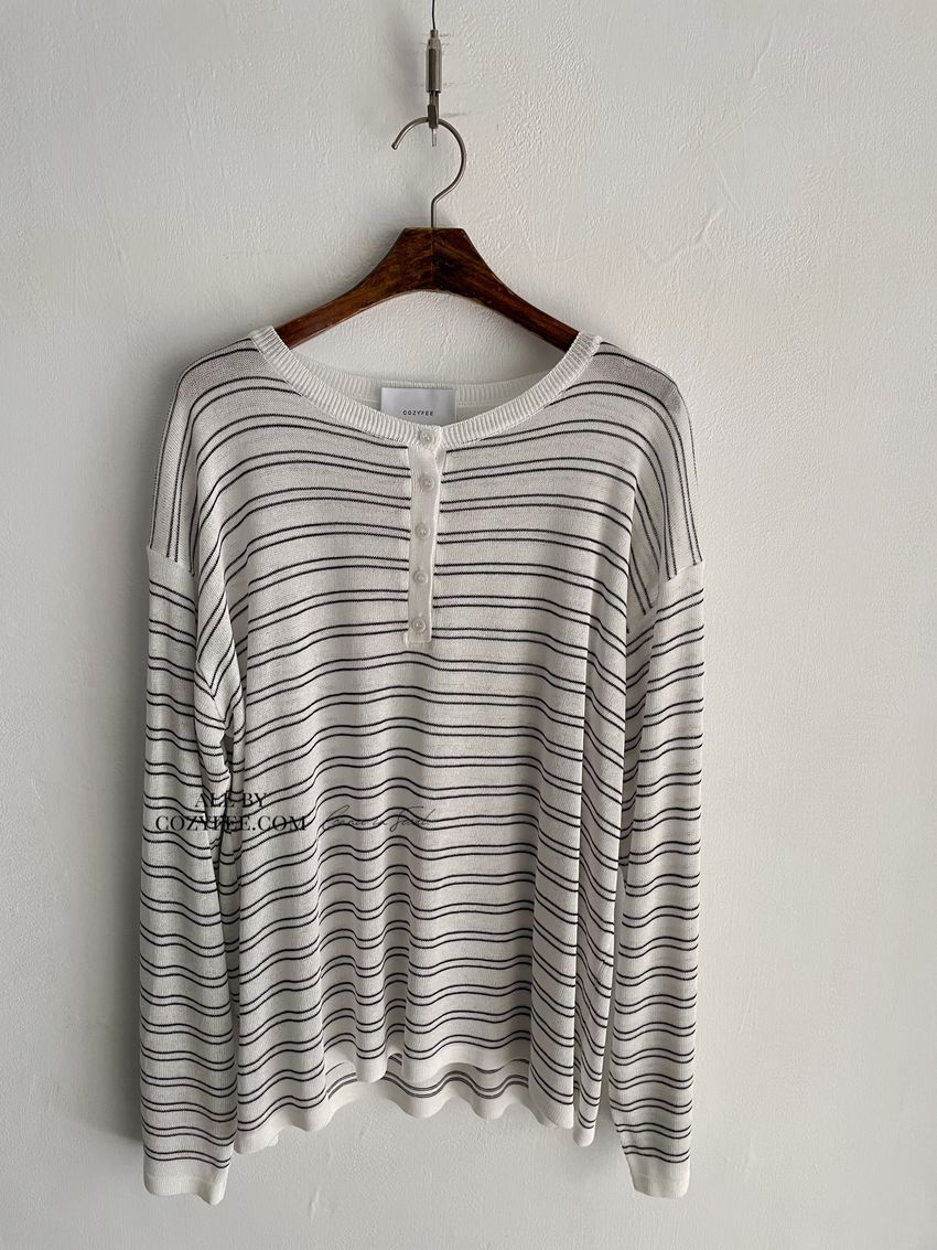 Connie推薦款!五釦條紋針織衫(直播款)