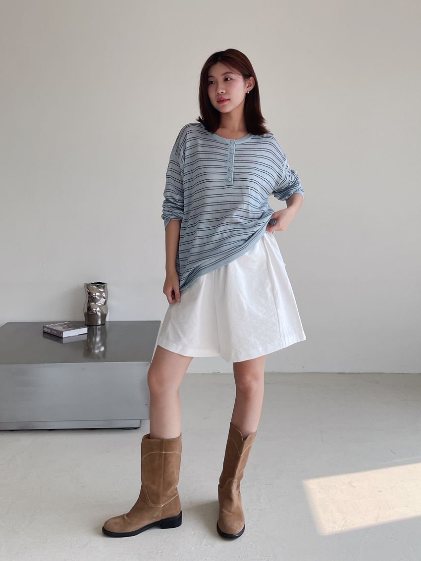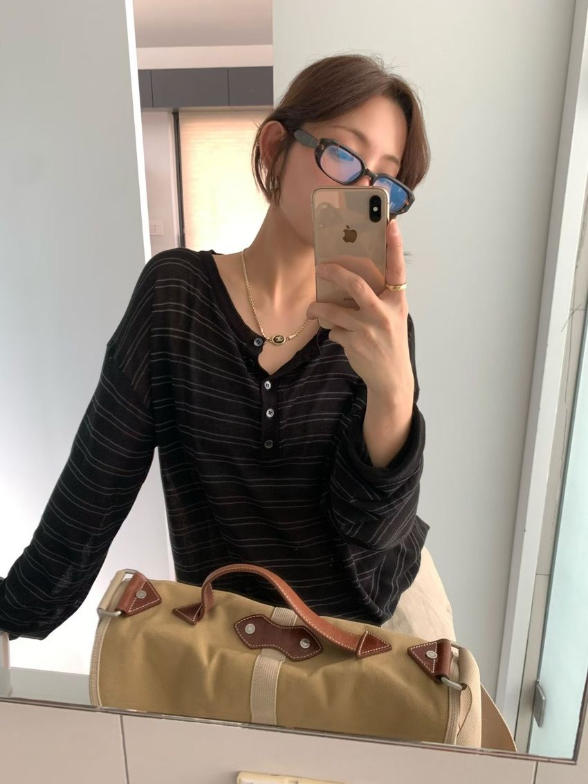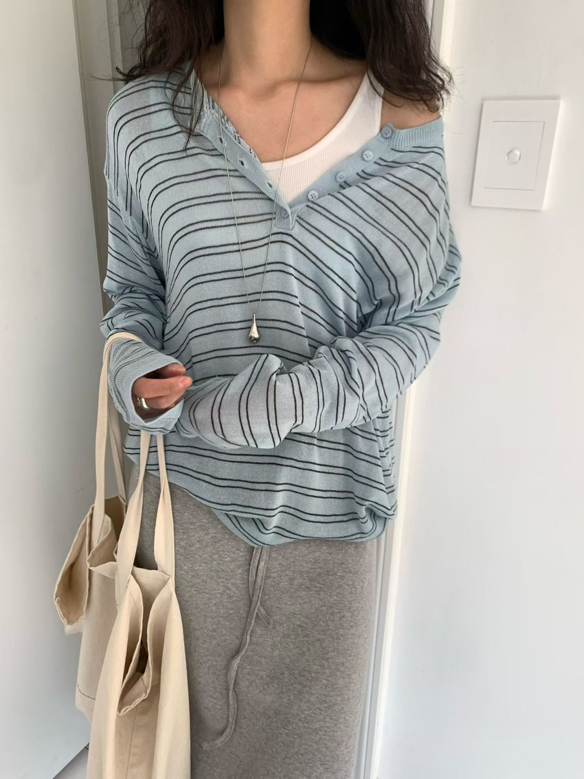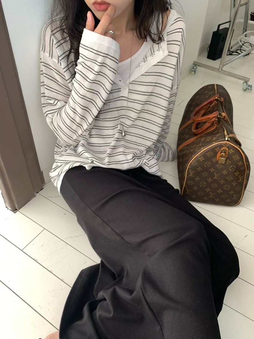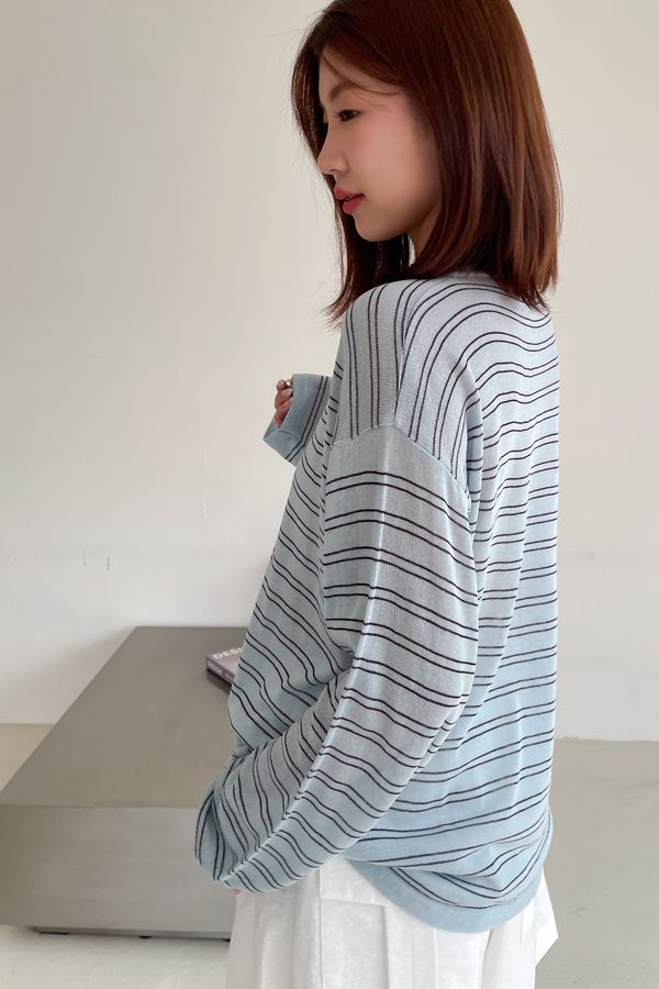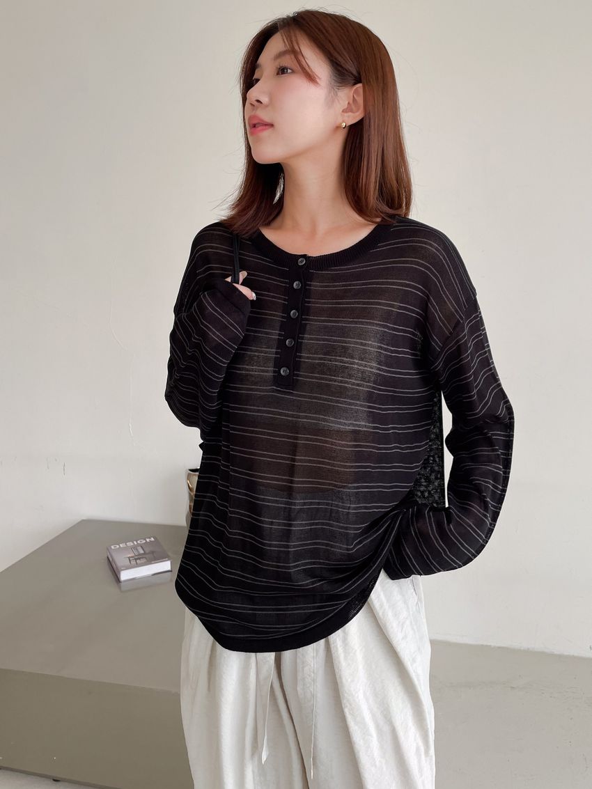Connie推薦款!五釦條紋針織衫(直播款)