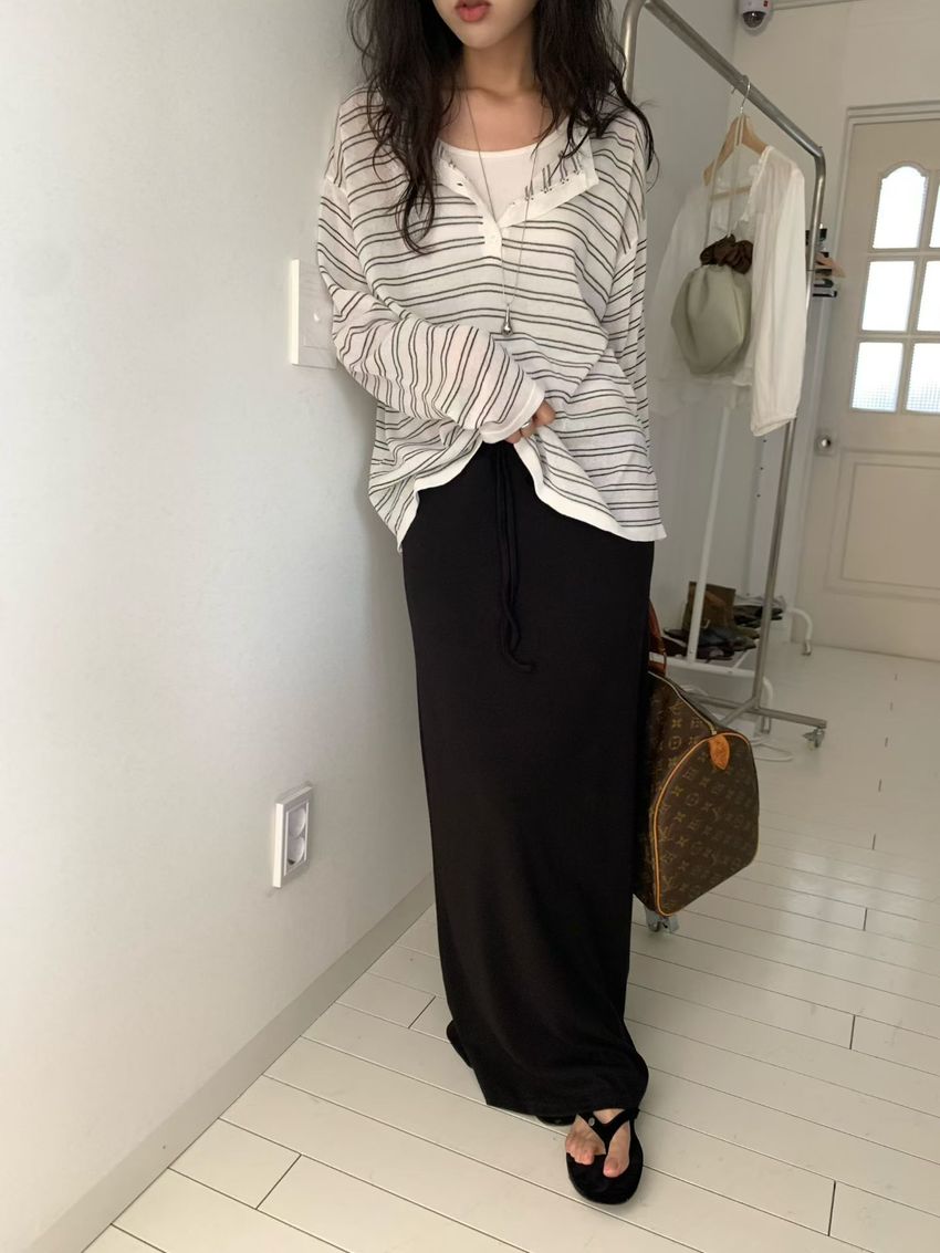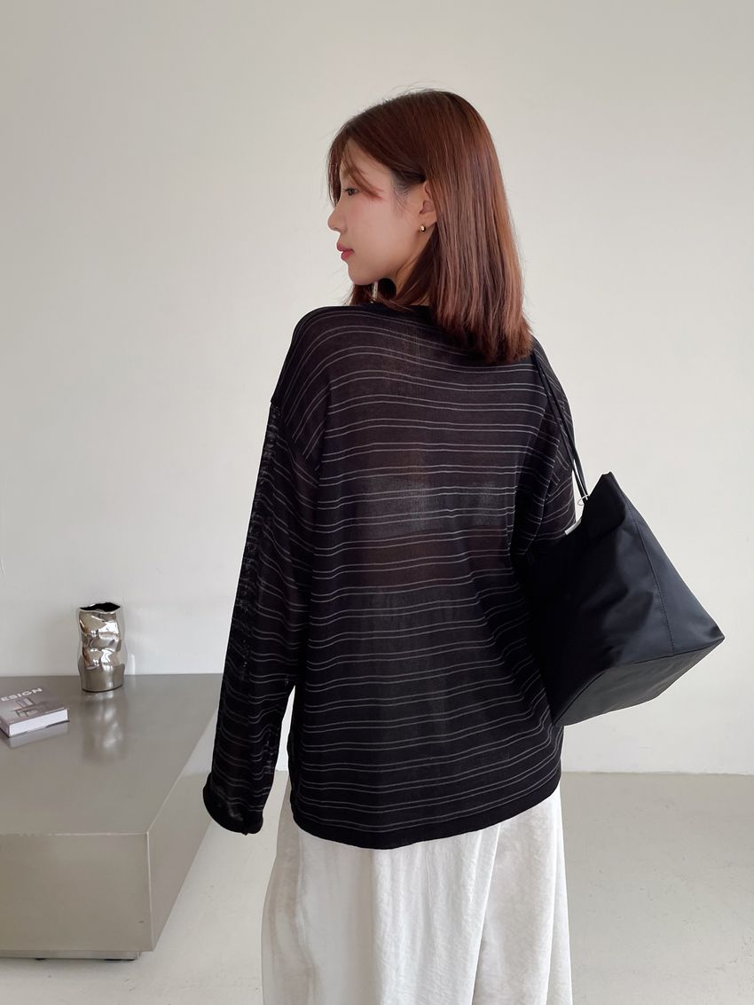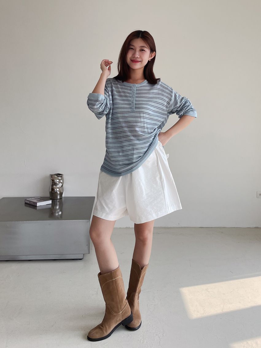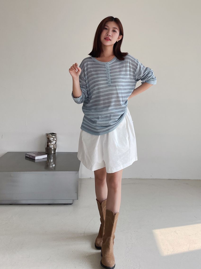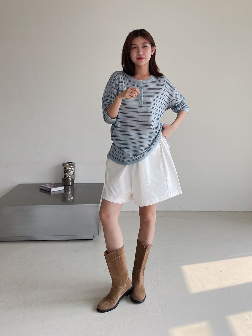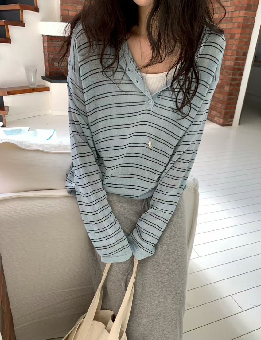 Connie推薦款!五釦條紋針織衫(直播款)