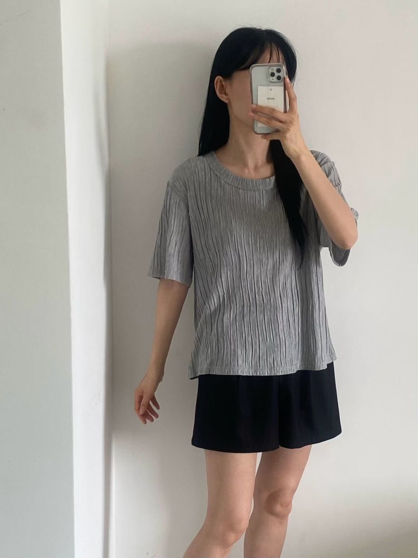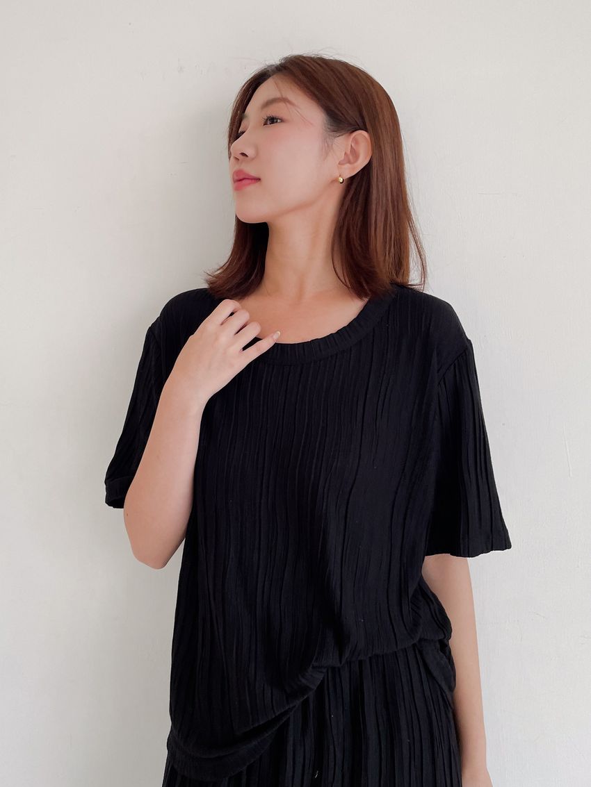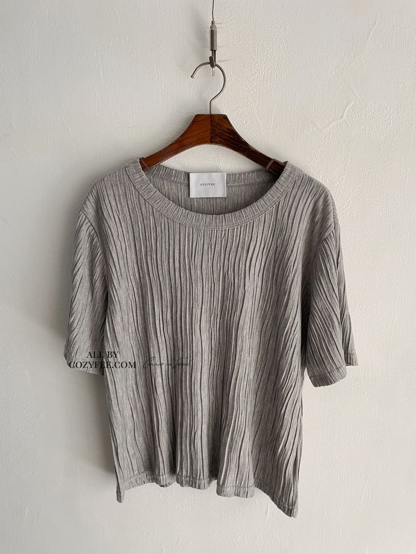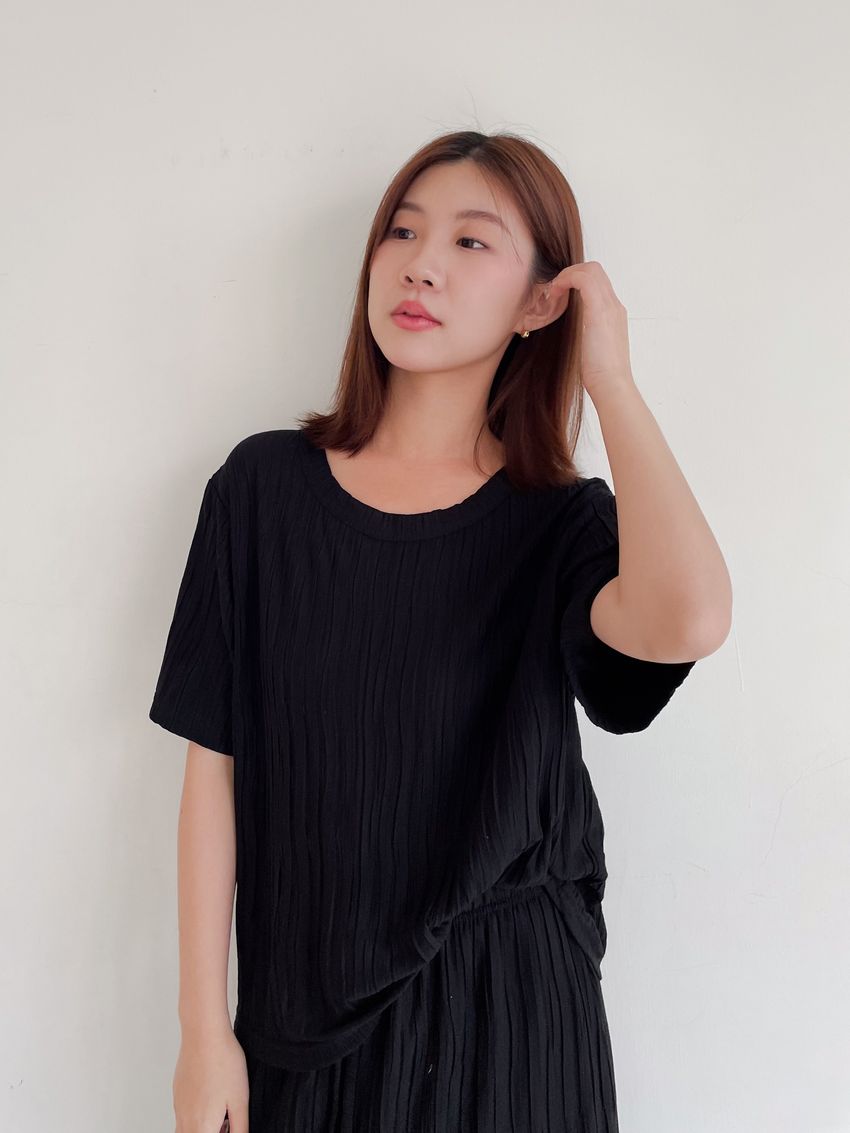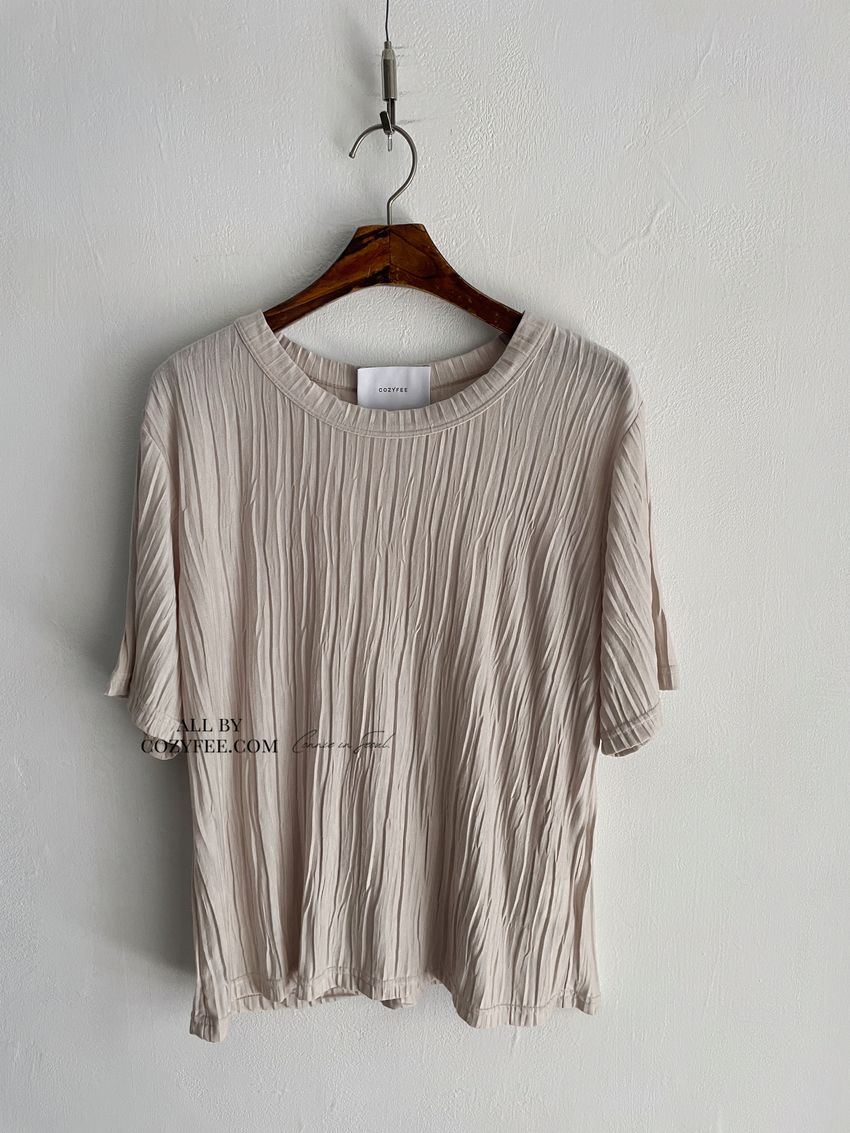 > Connie推薦款!柔軟揉皺壓摺短T(直播款)