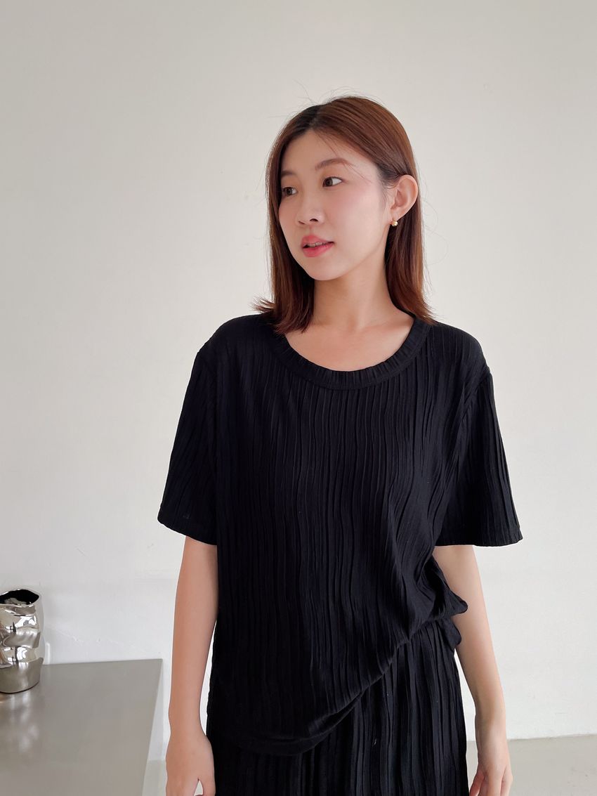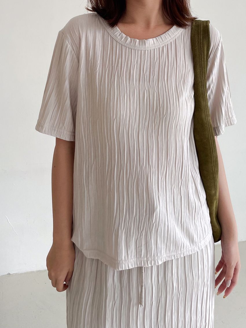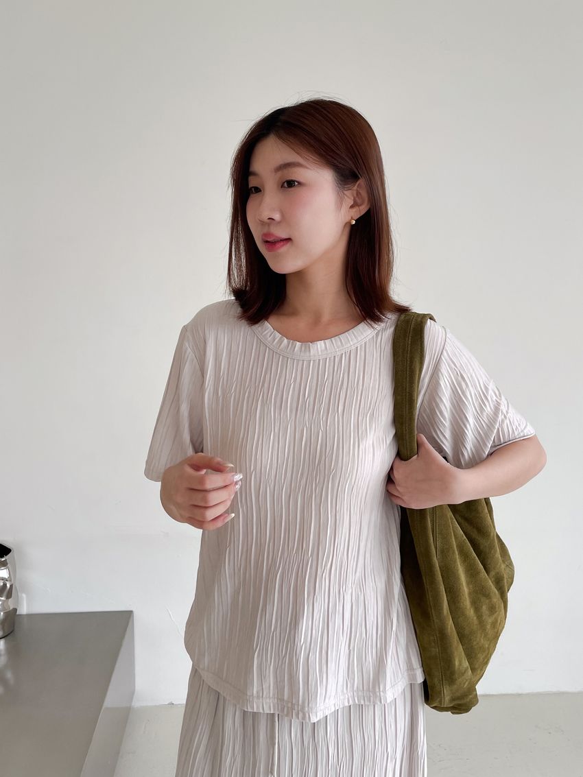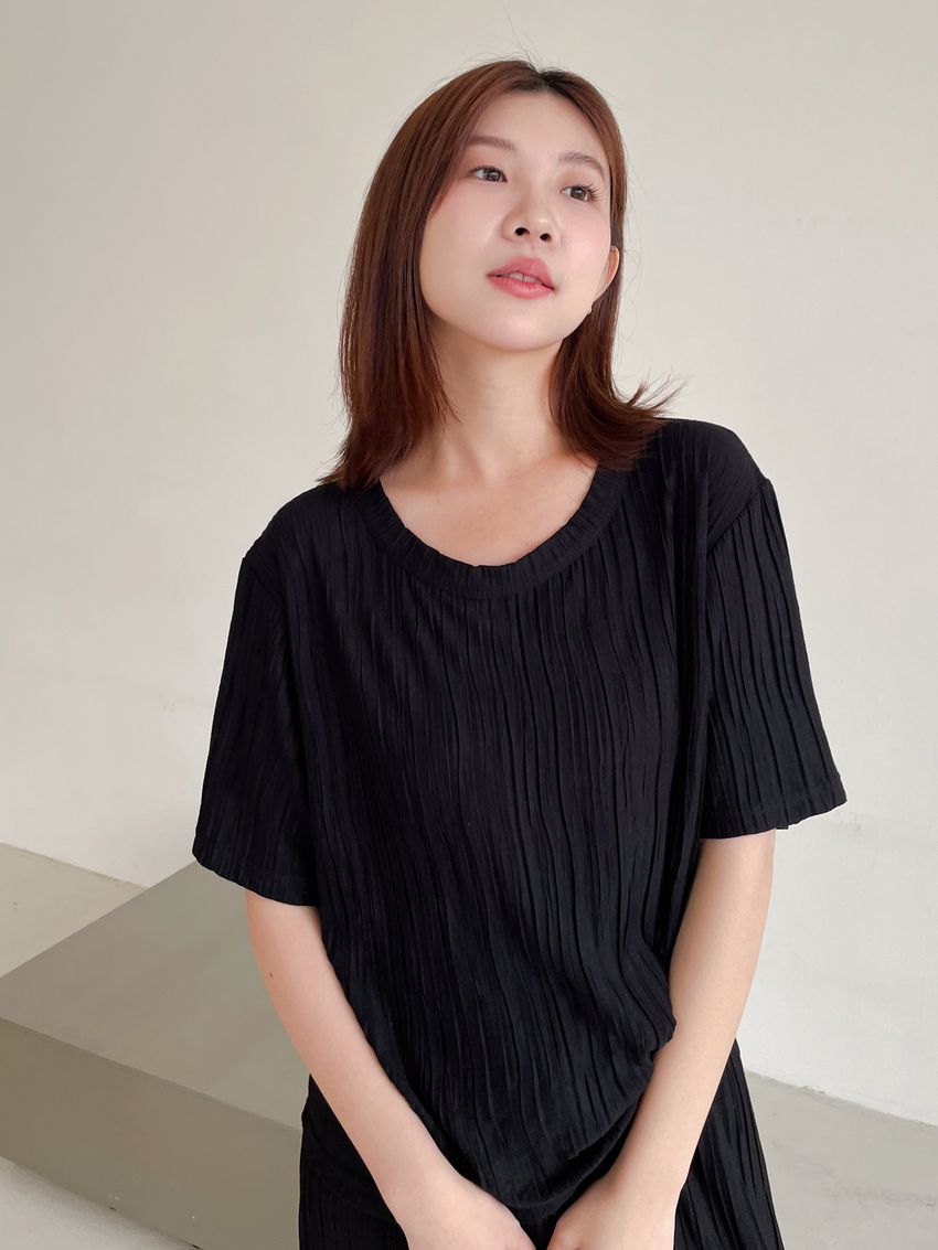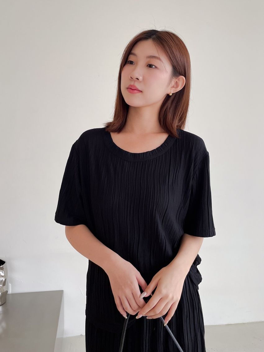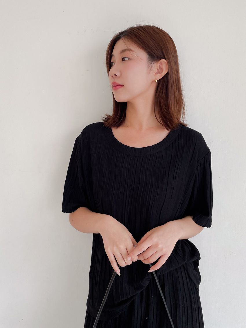 > Connie推薦款!柔軟揉皺壓摺短T(直播款)